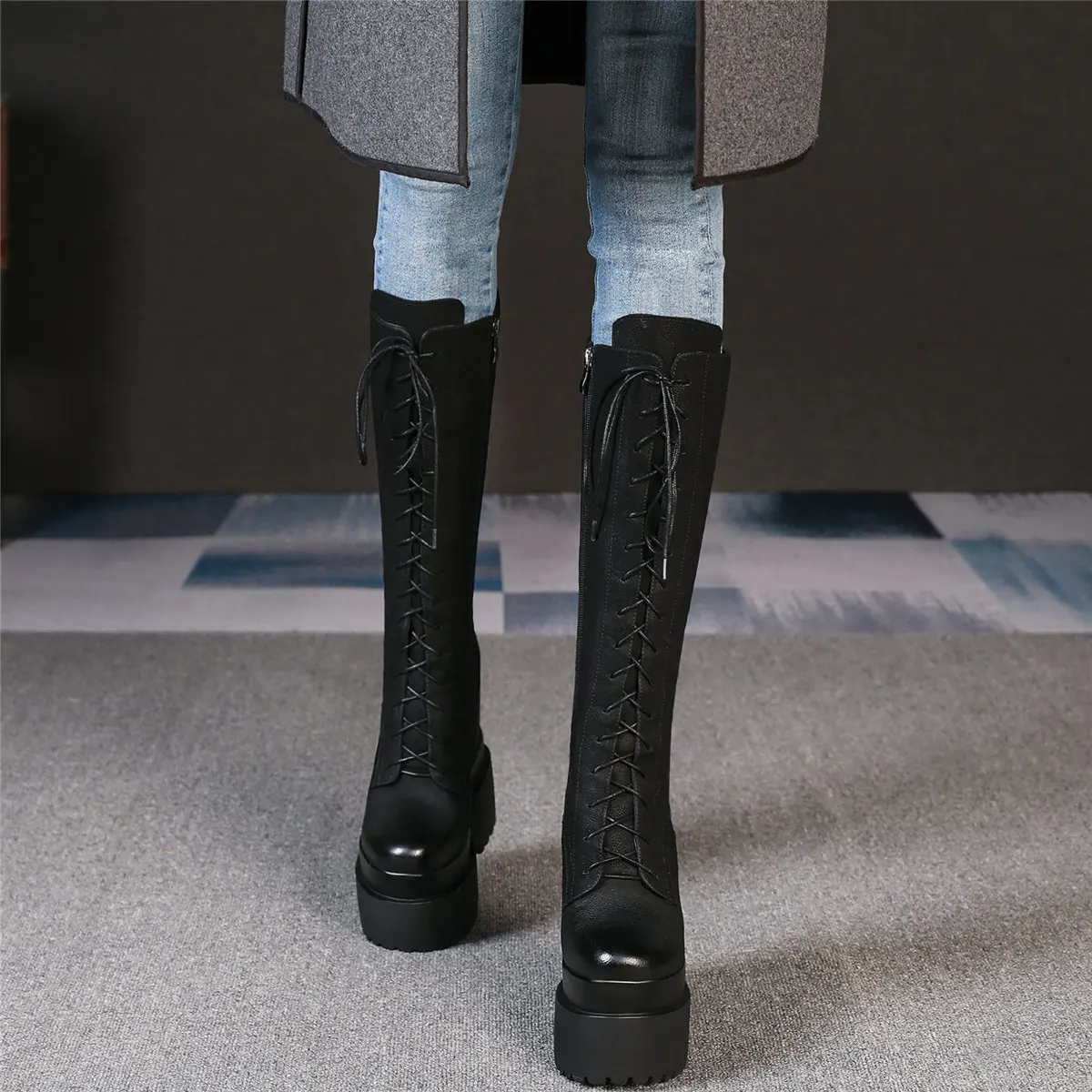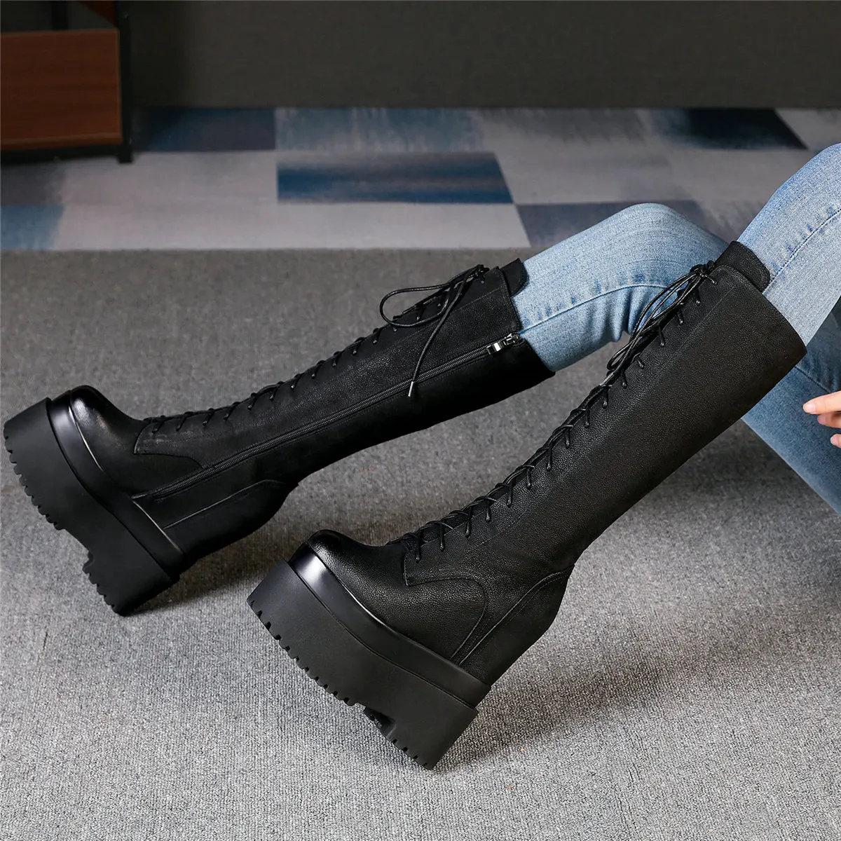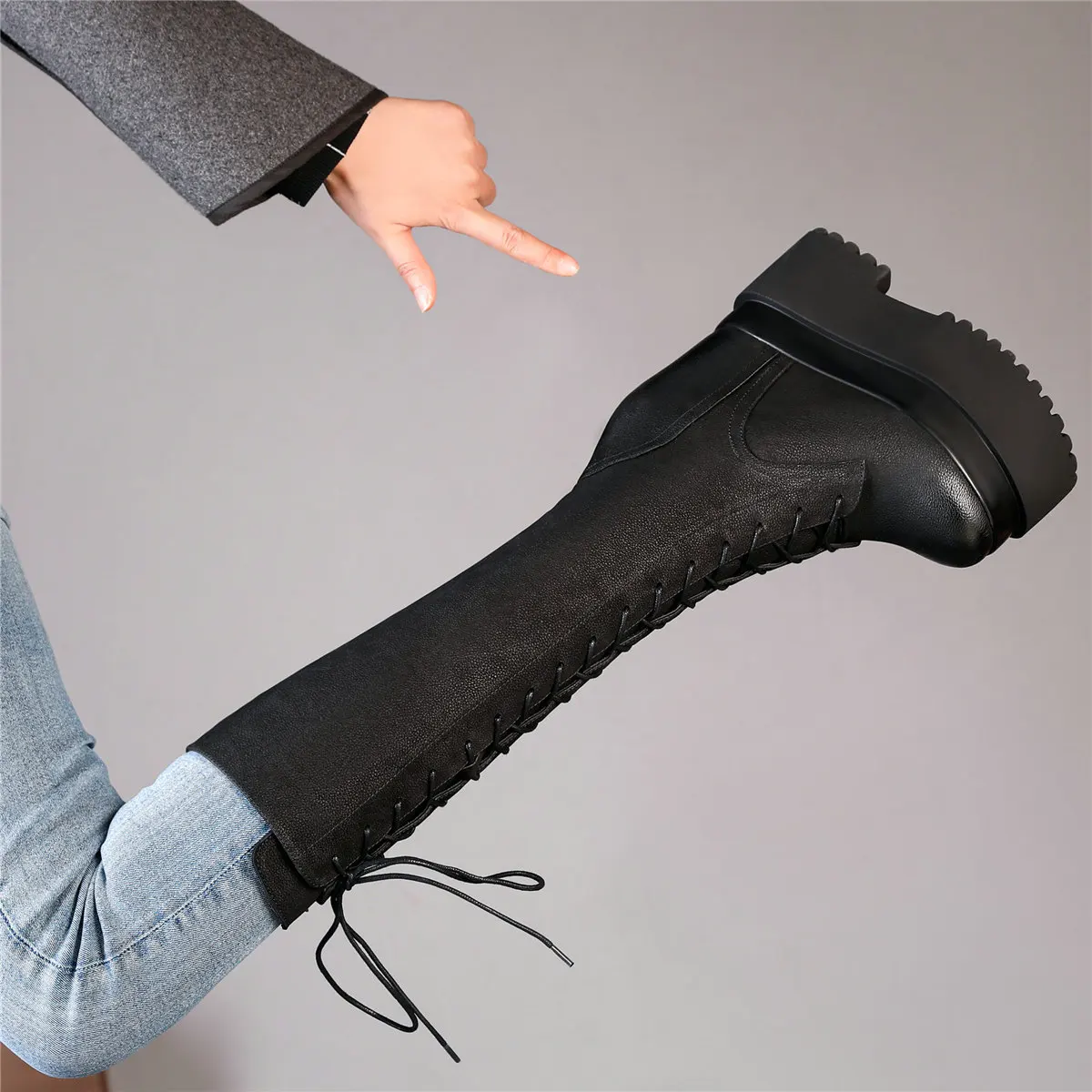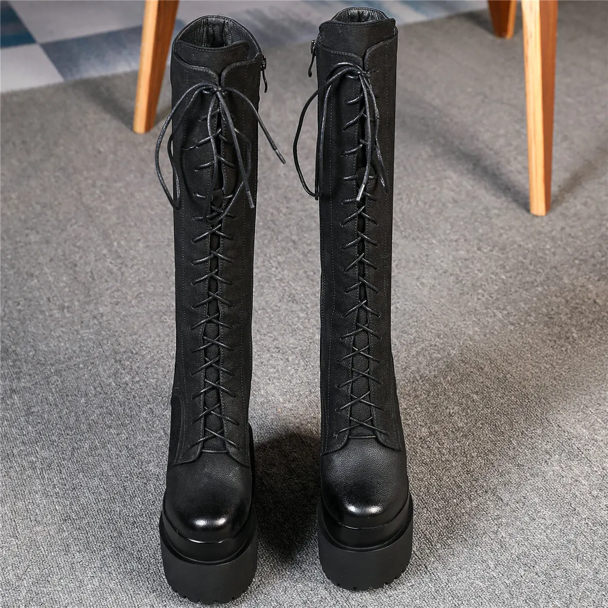 Winter Platform Pumps Shoes Women Lace Up Genuine Leather High Heel Snow Boots Female Round Toe Fashion Sneakers Casual Shoes