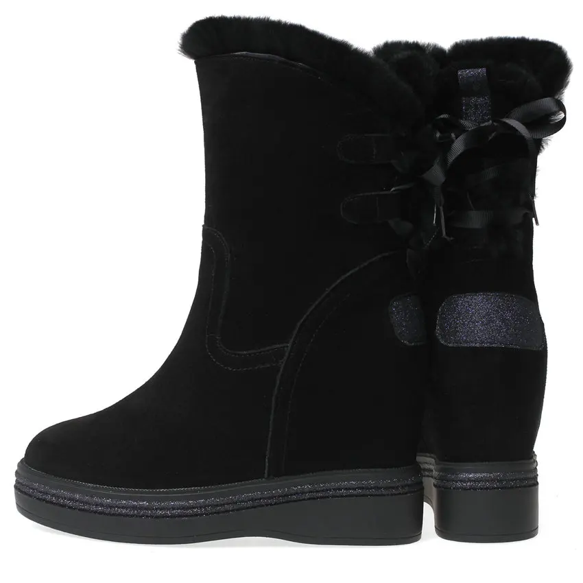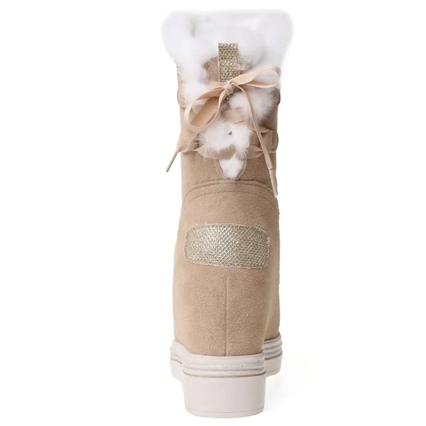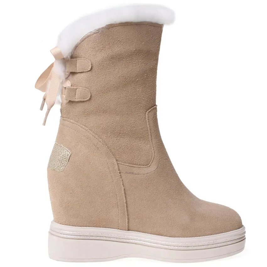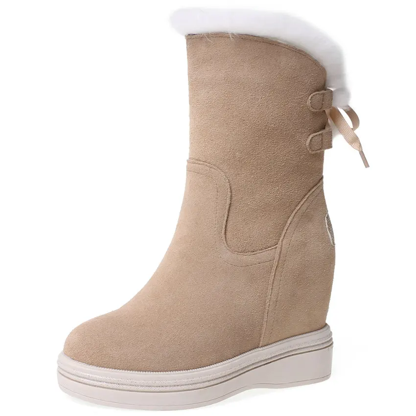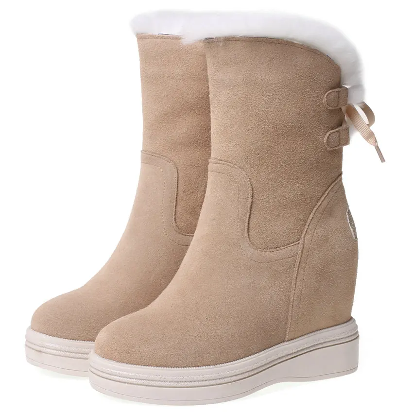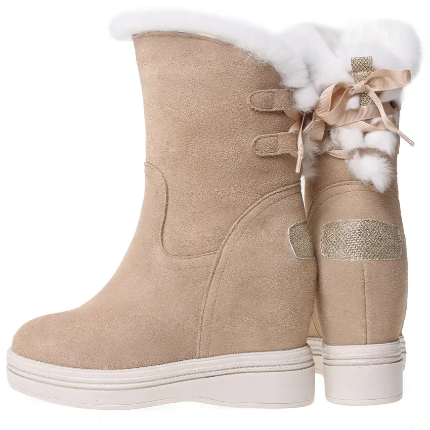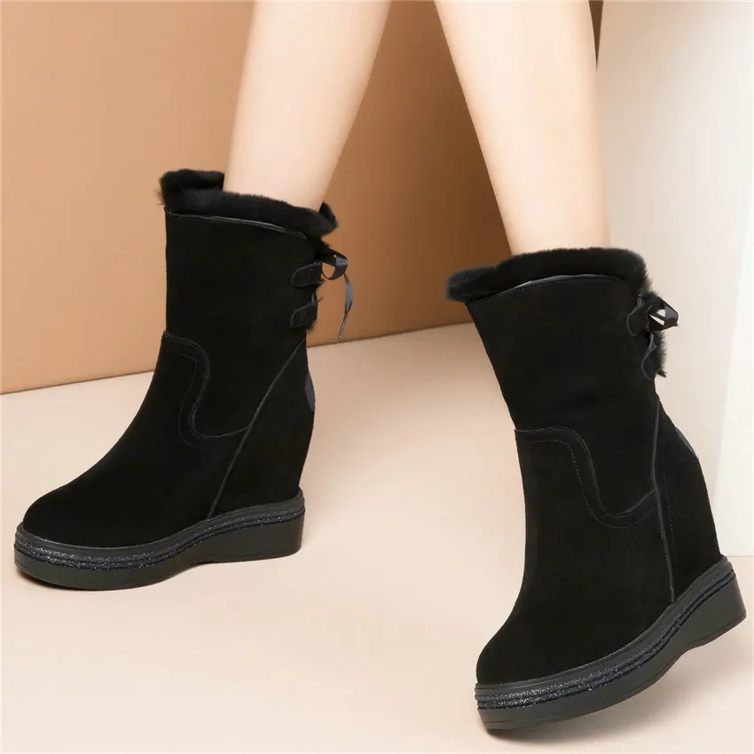 Winter Pumps Shoes Women Genuine Leather Wedges High Heel Ankle Boots Female High Top Round Toe Fashion Sneakers Casual Shoes