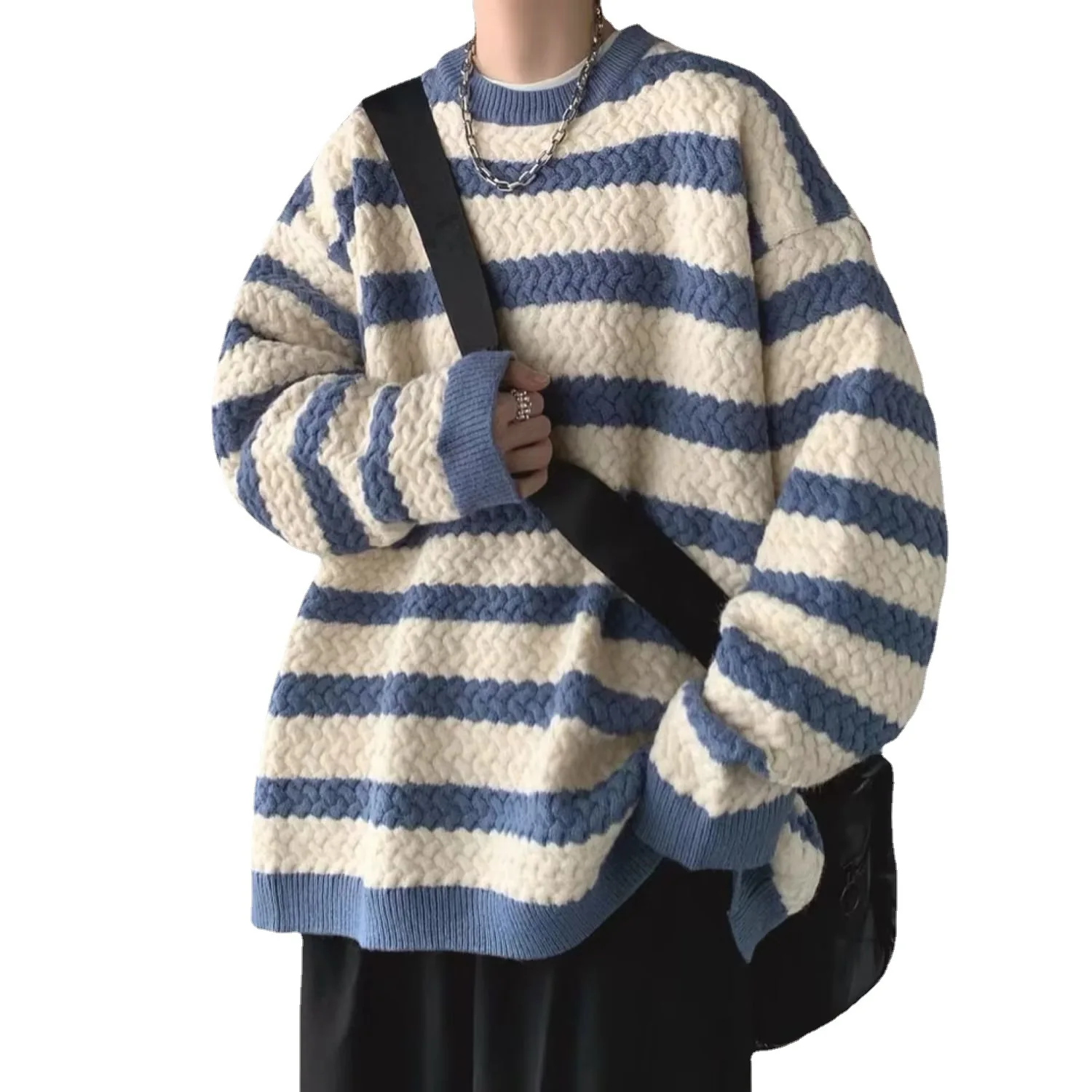 Winter Round Neck Striped Sweater Men Korean Fashion Couple Casual Long Sleeve harajuku Knitted Sweater Men Streetwear Sweaters