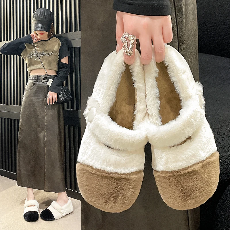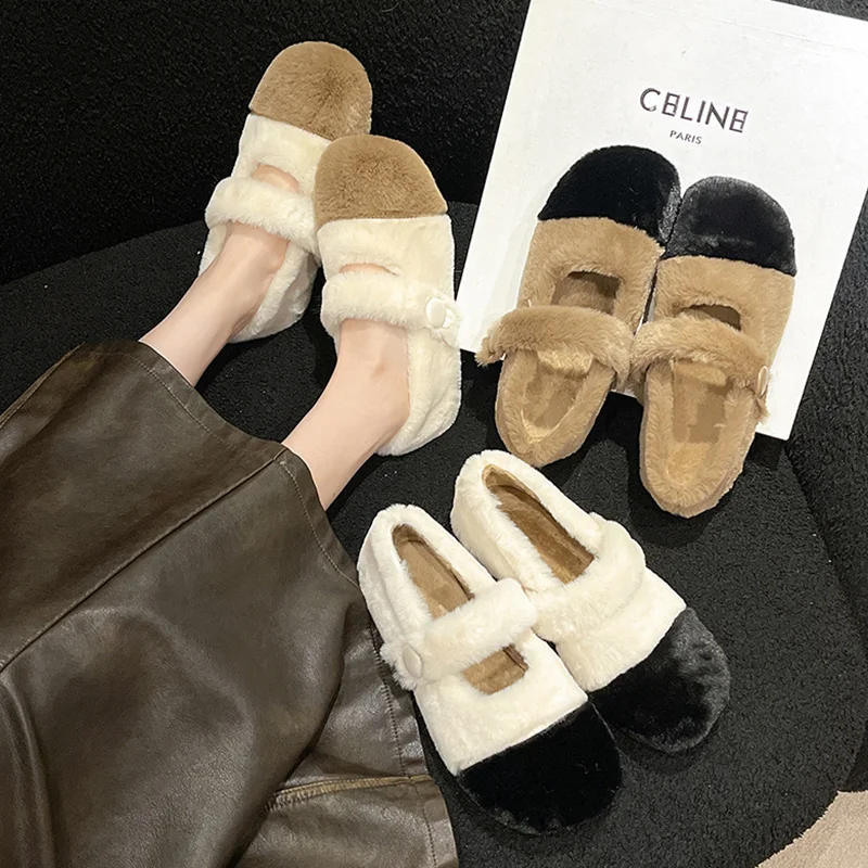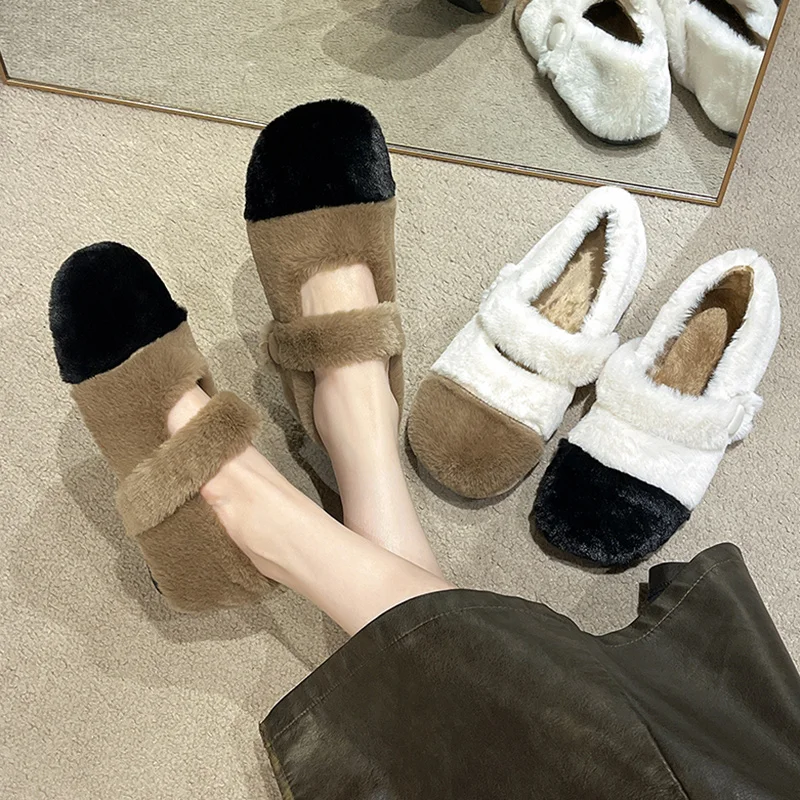Winter Shoes Women Slip-on Loafers Fur Round Toe Autumn Casual Female Sneakers Mixed Colors Slip On Moccasin Fall Boat Basic Rom