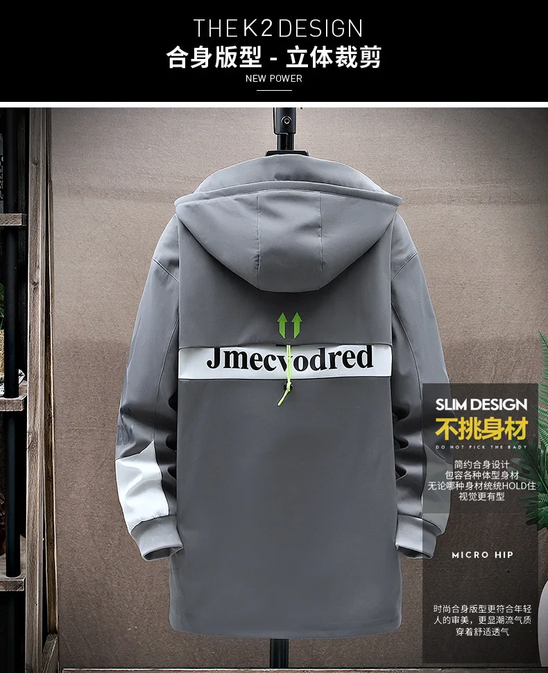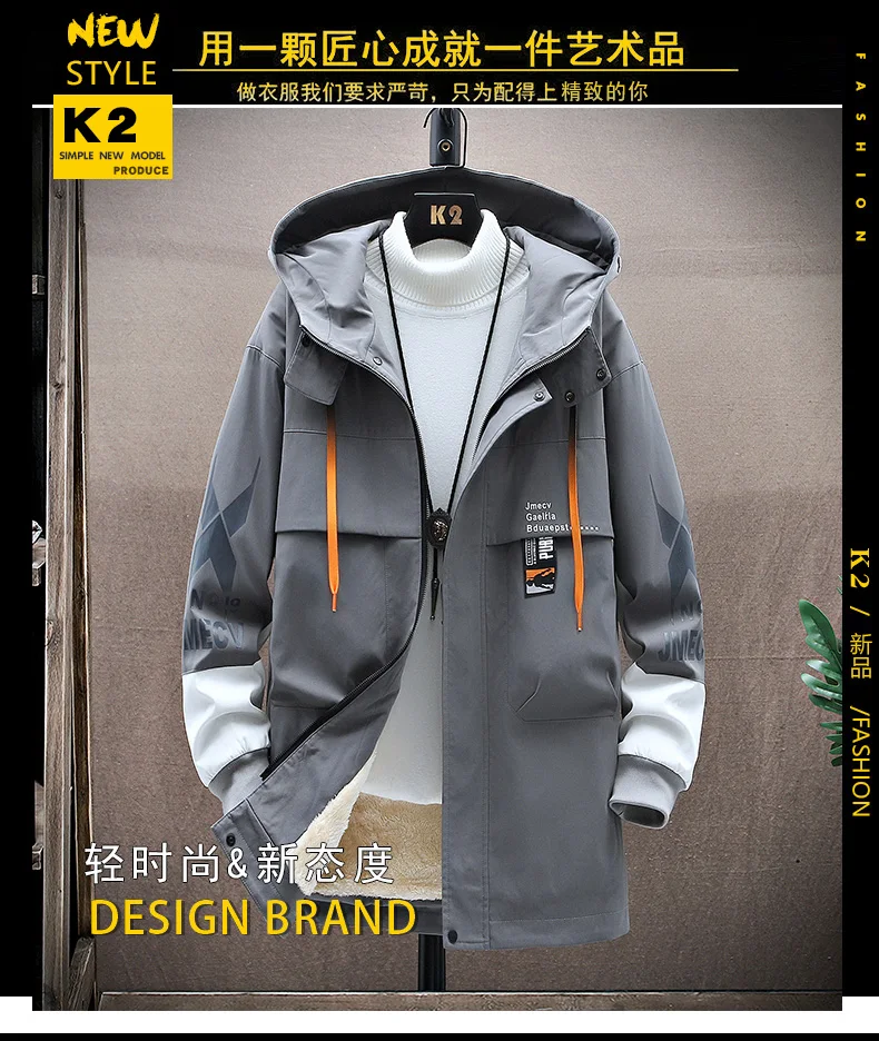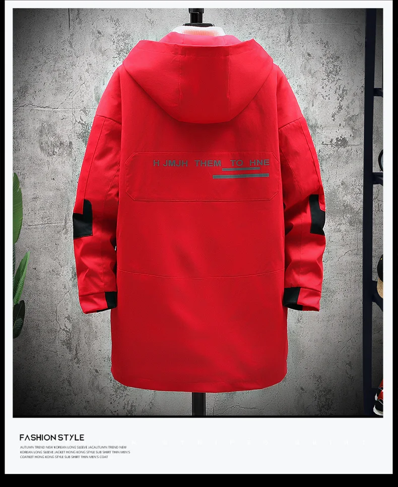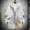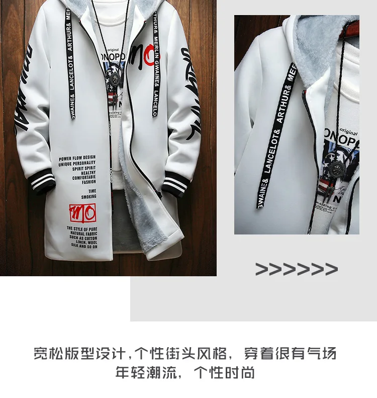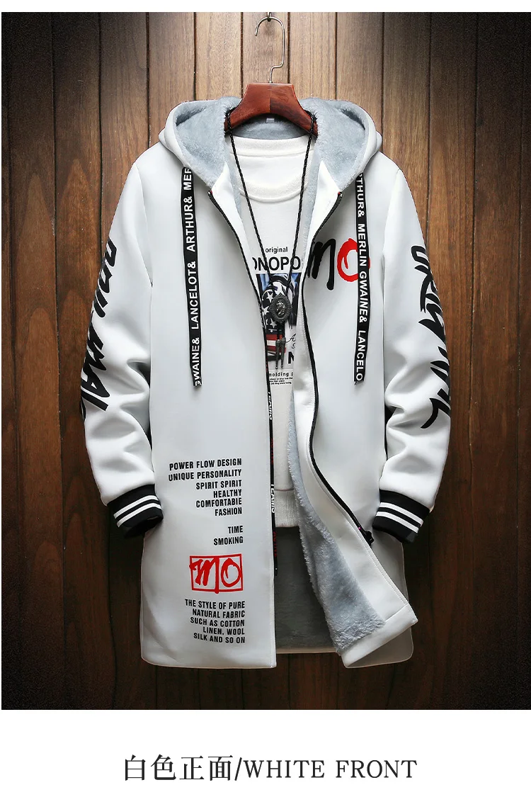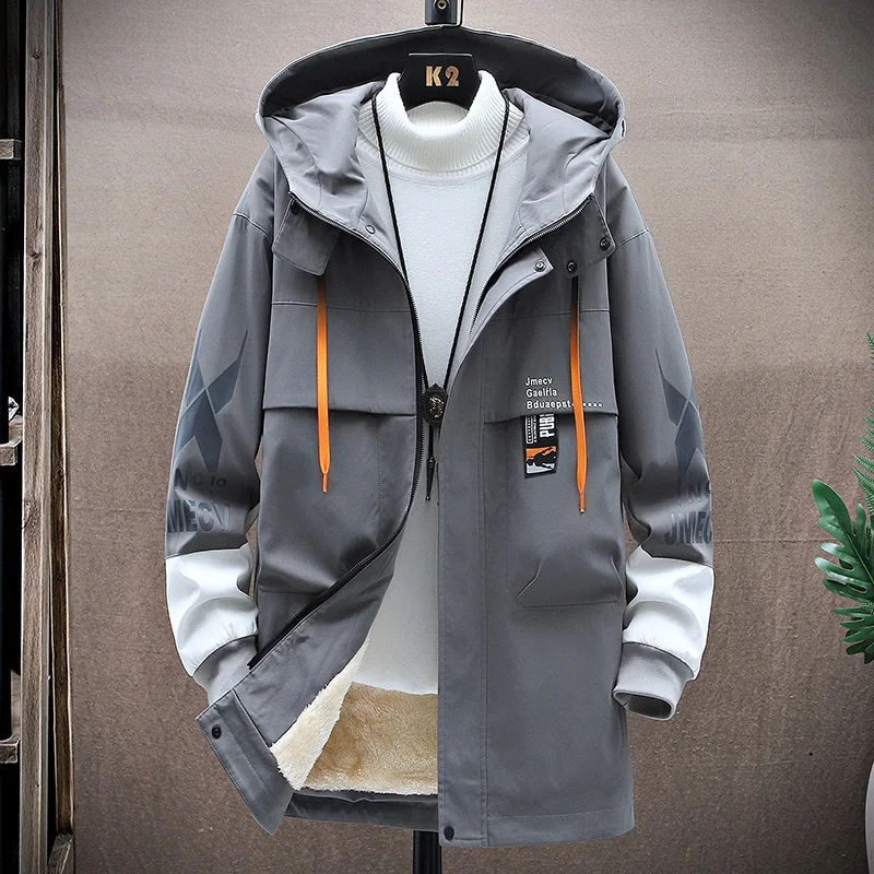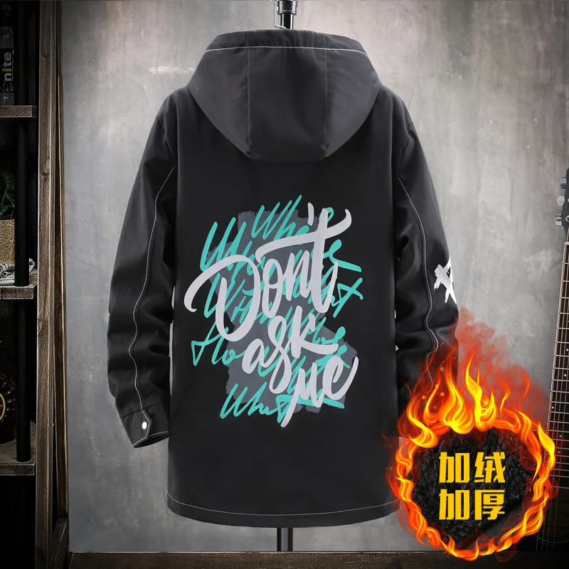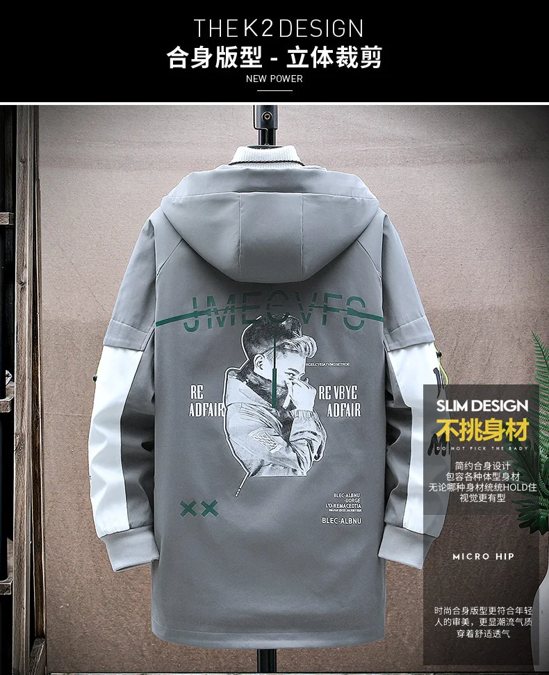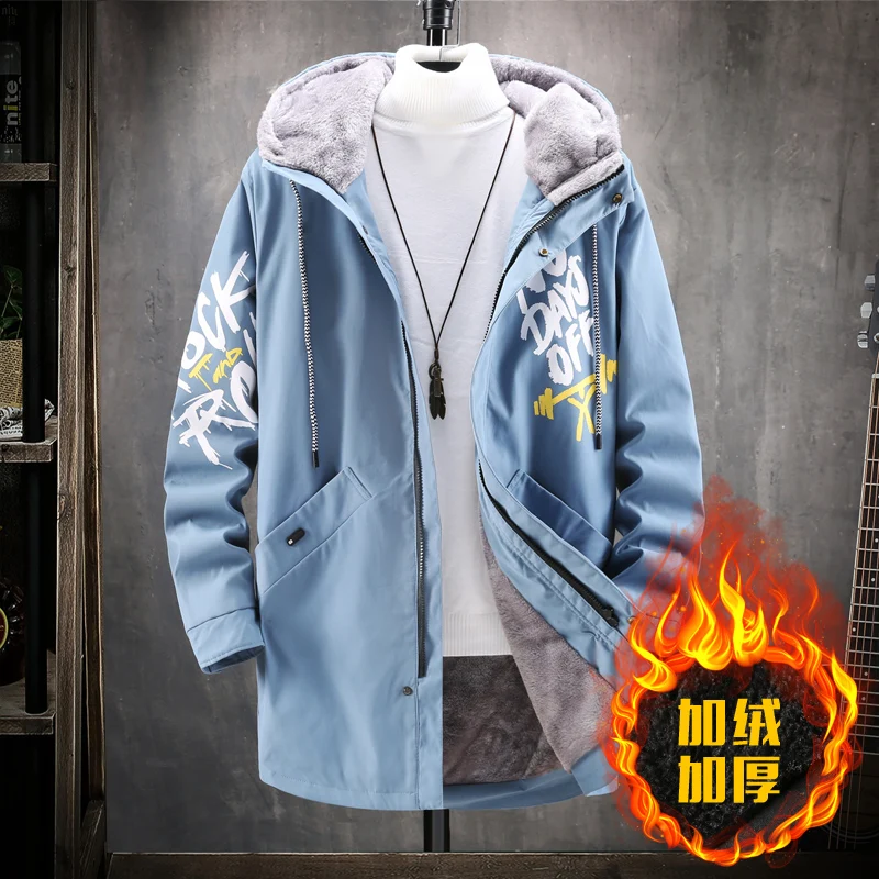 Winter Slim Long Trench Coat Men Letter Print Style Hooded Overcoat Black Hip Hop Streetwear Autumn Korean Mens Jacket