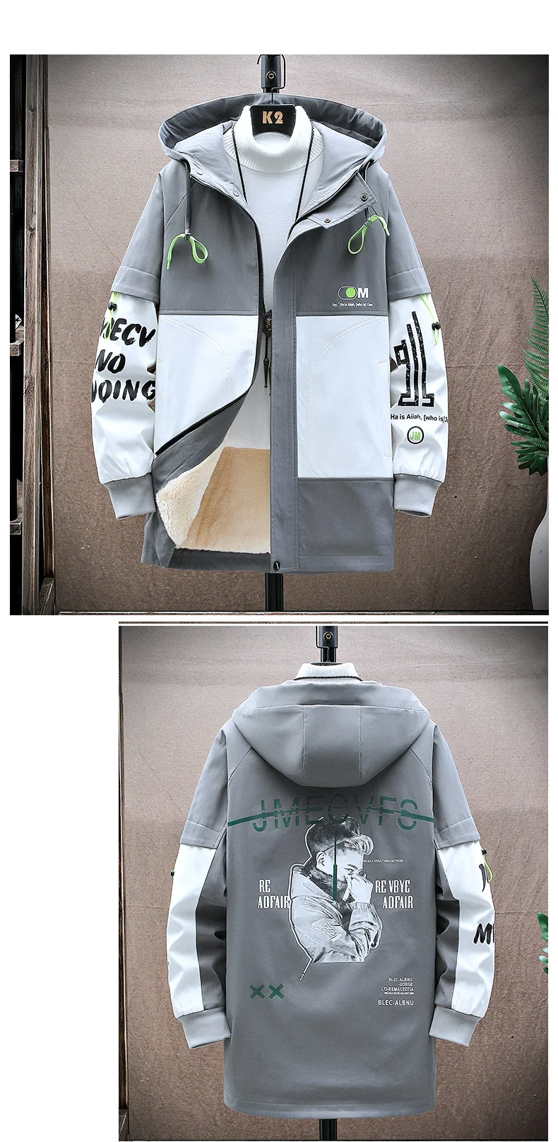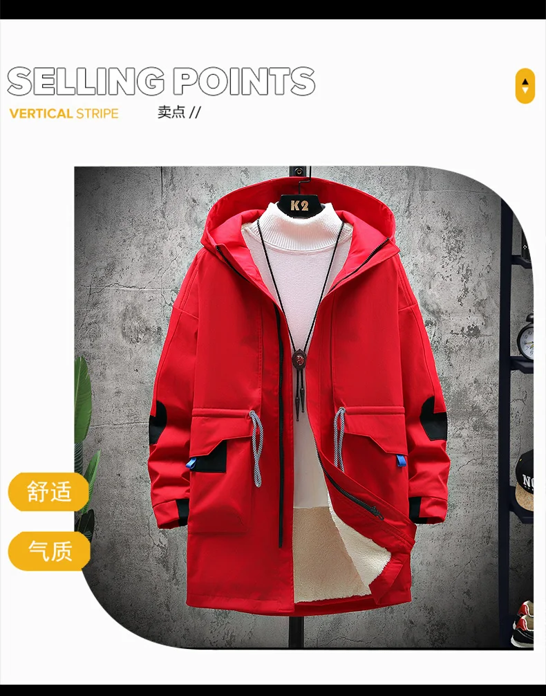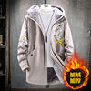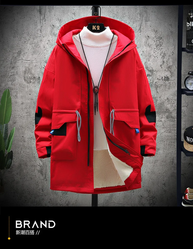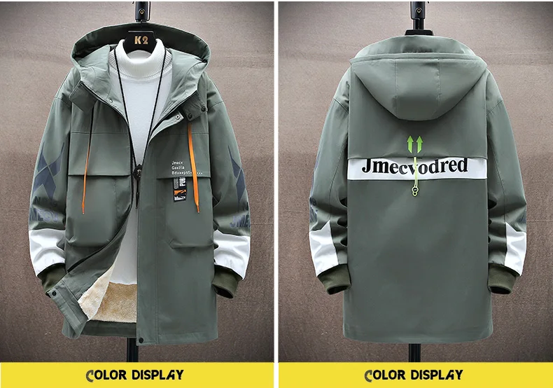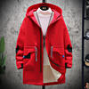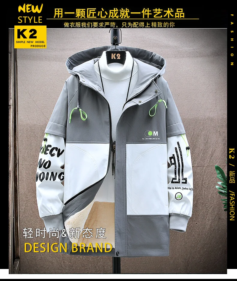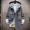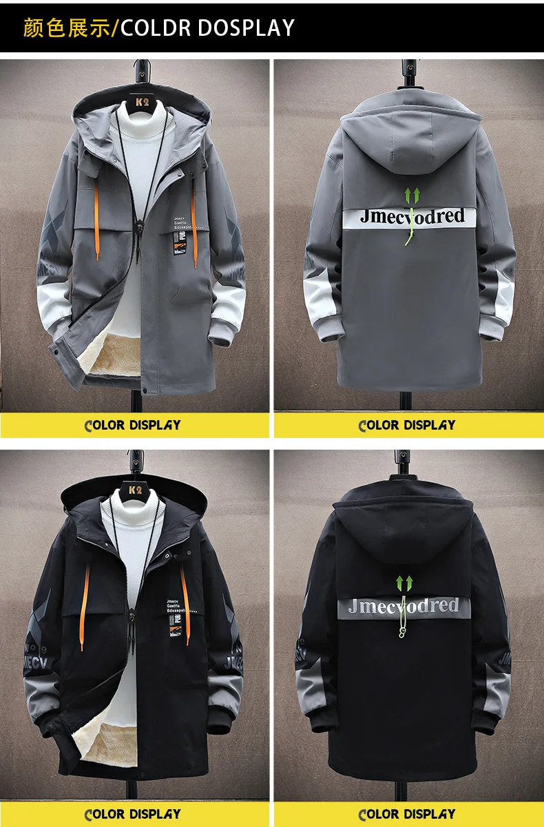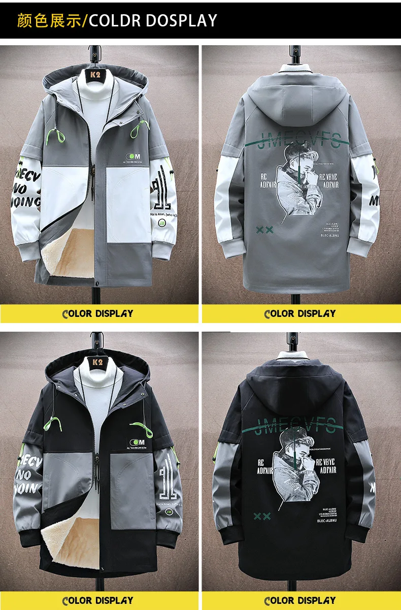 Winter Slim Long Trench Coat Men Letter Print Style Hooded Overcoat Black Hip Hop Streetwear Autumn Korean Mens Jacket