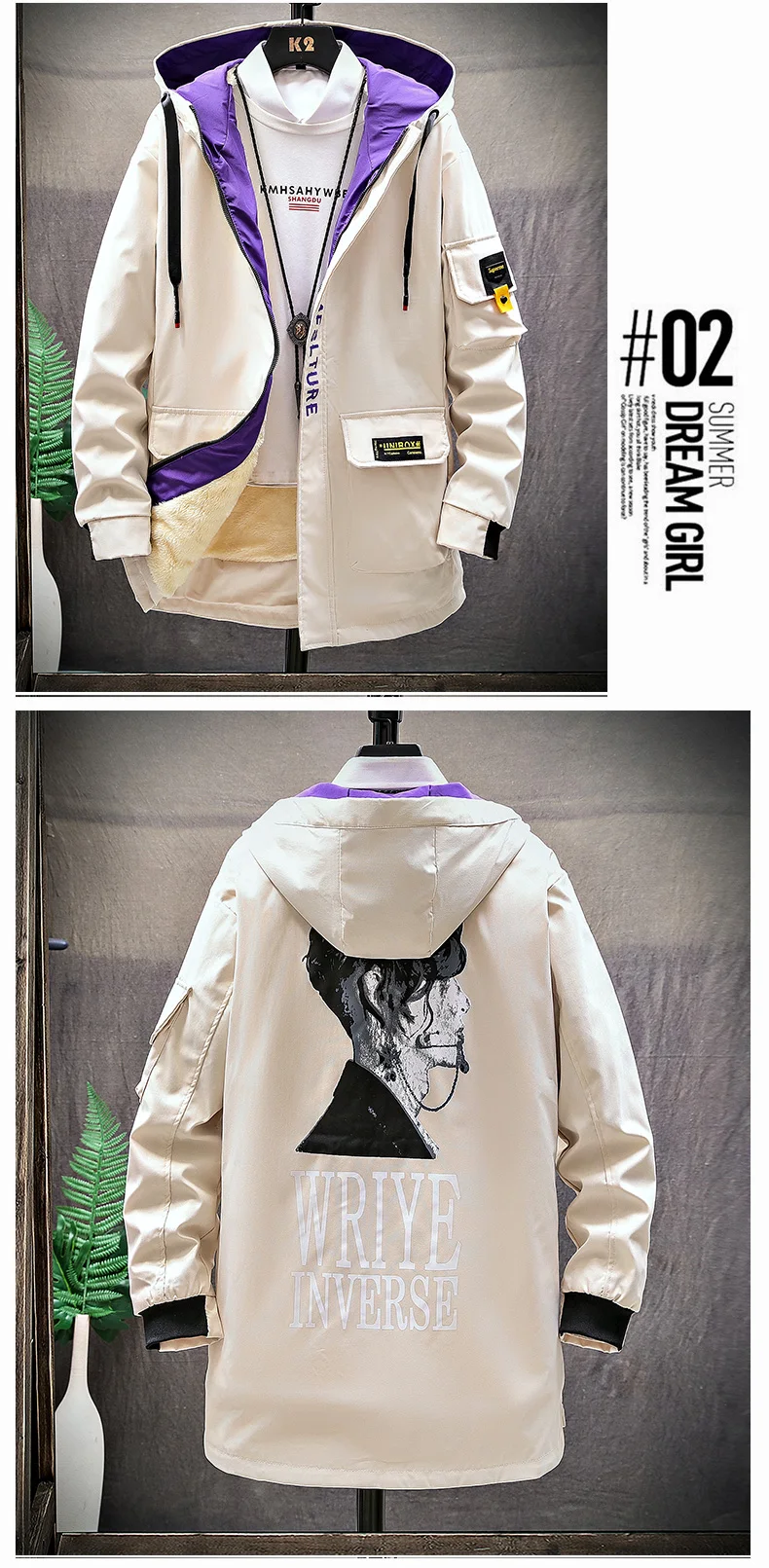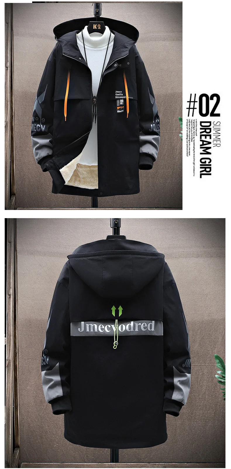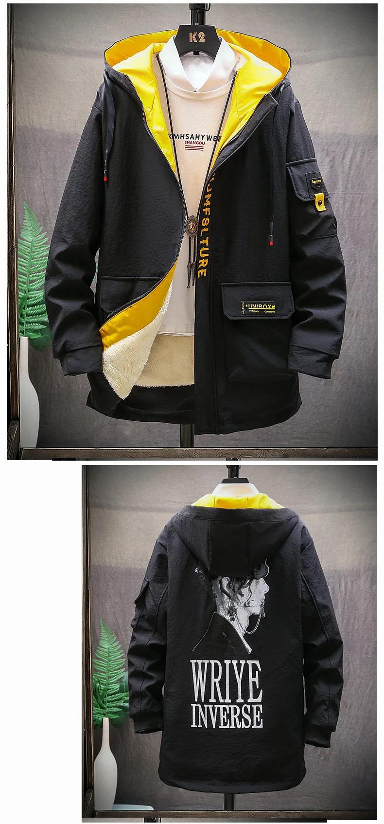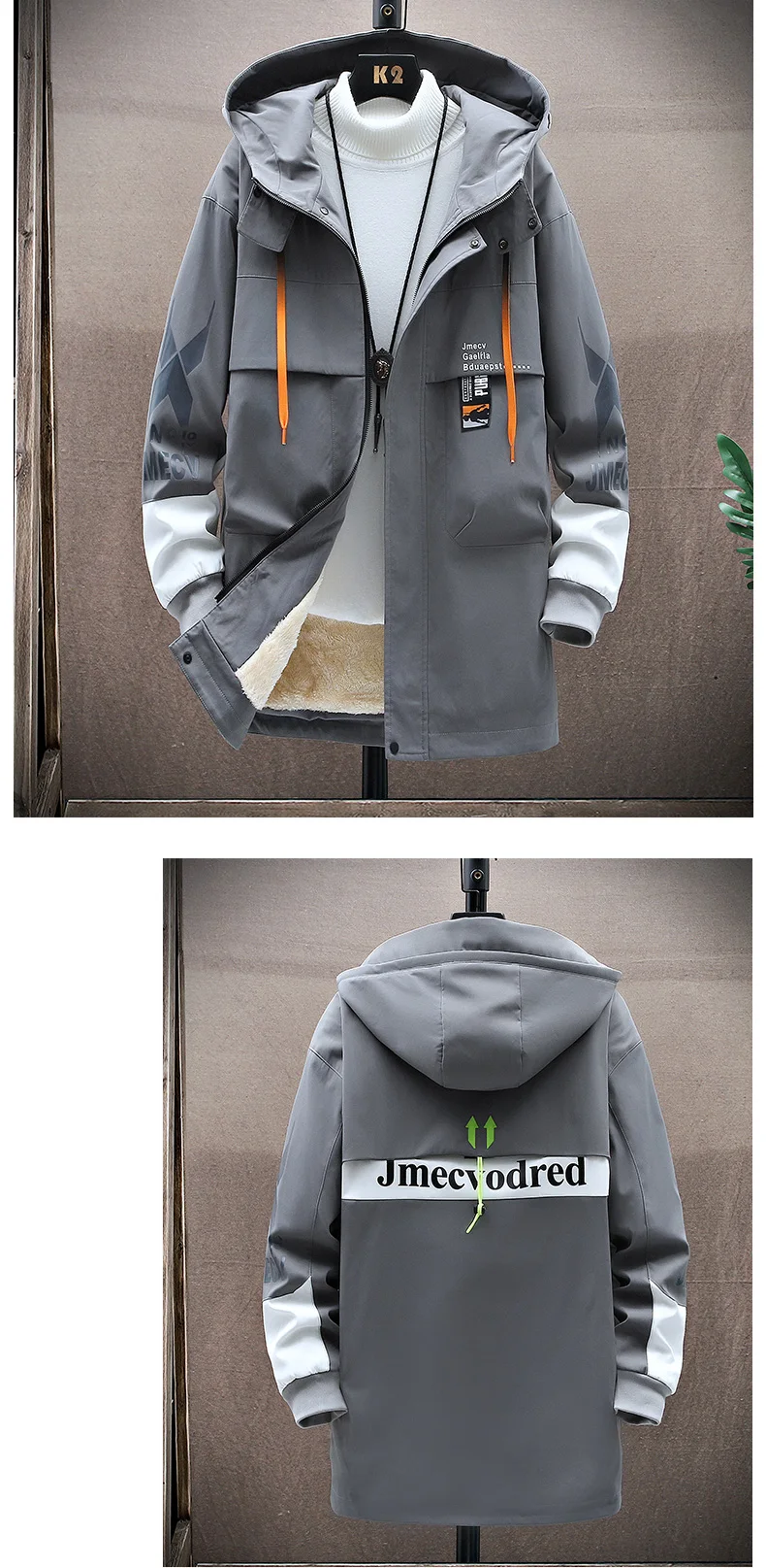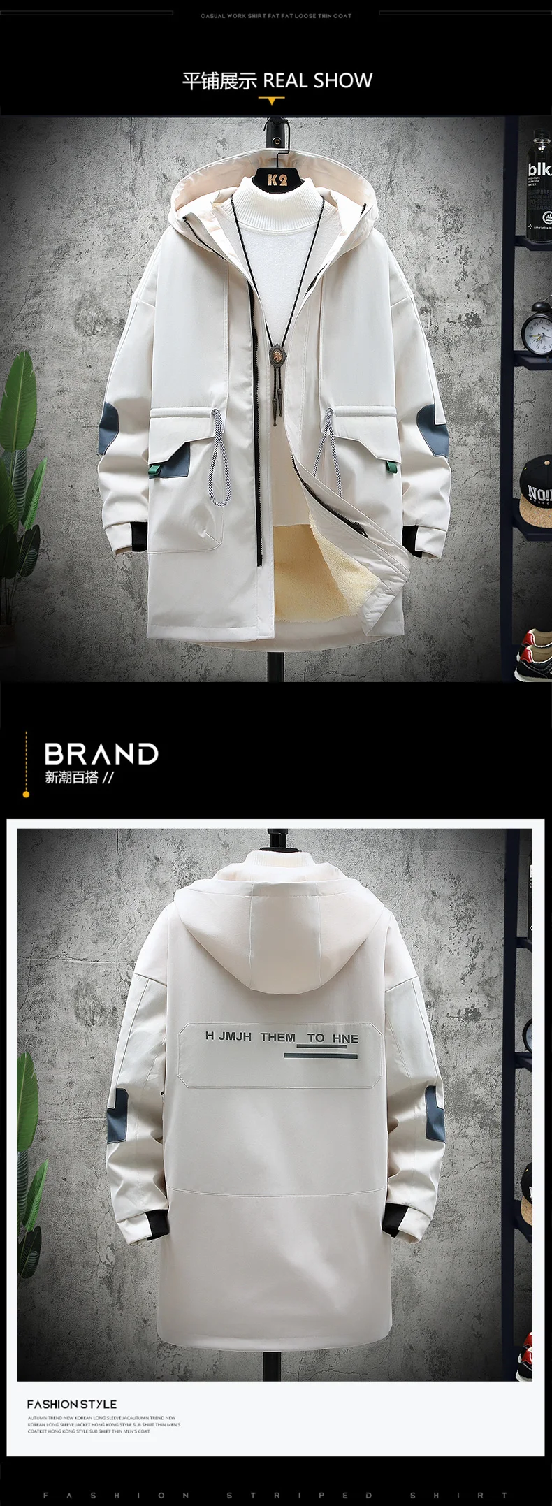 Winter Slim Long Trench Coat Men Letter Print Style Hooded Overcoat Black Hip Hop Streetwear Autumn Korean Mens Jacket