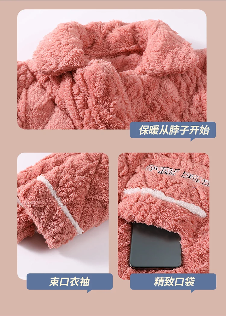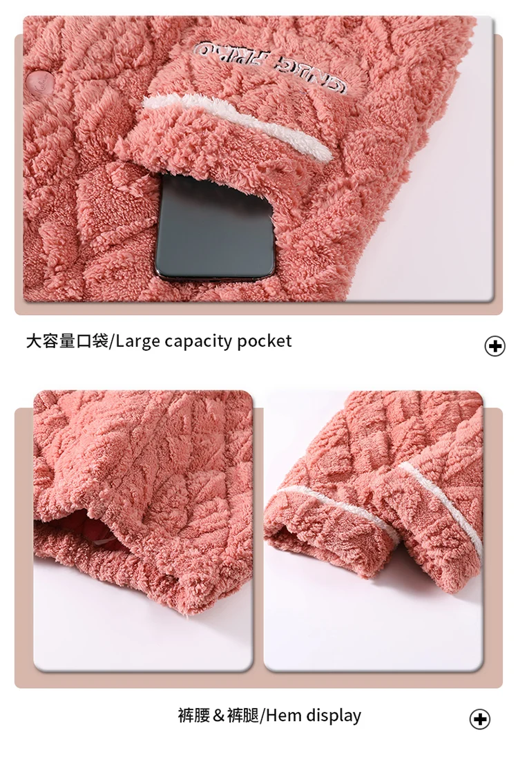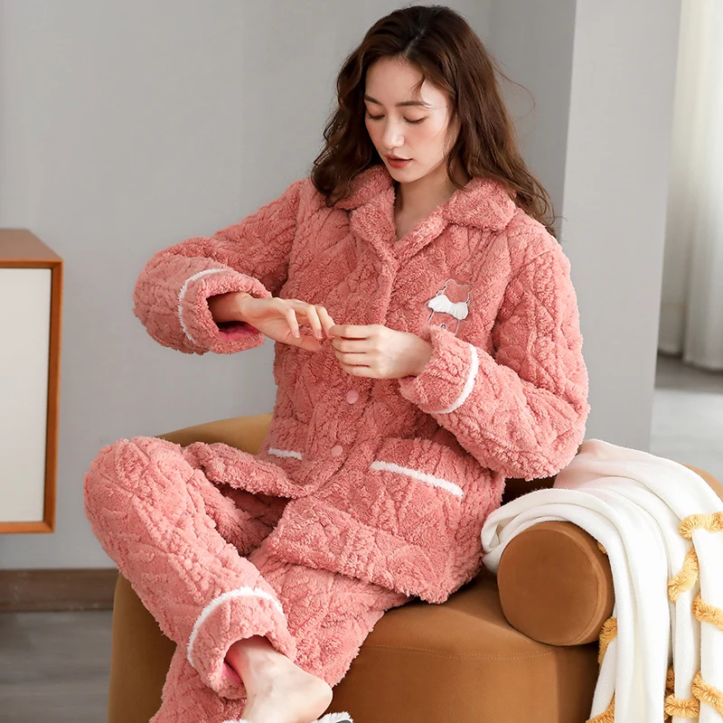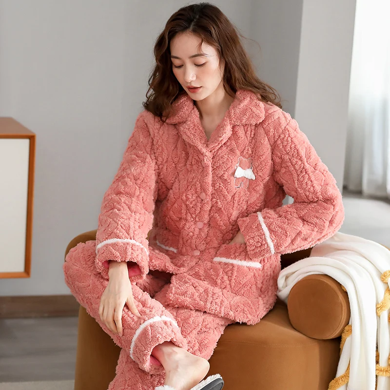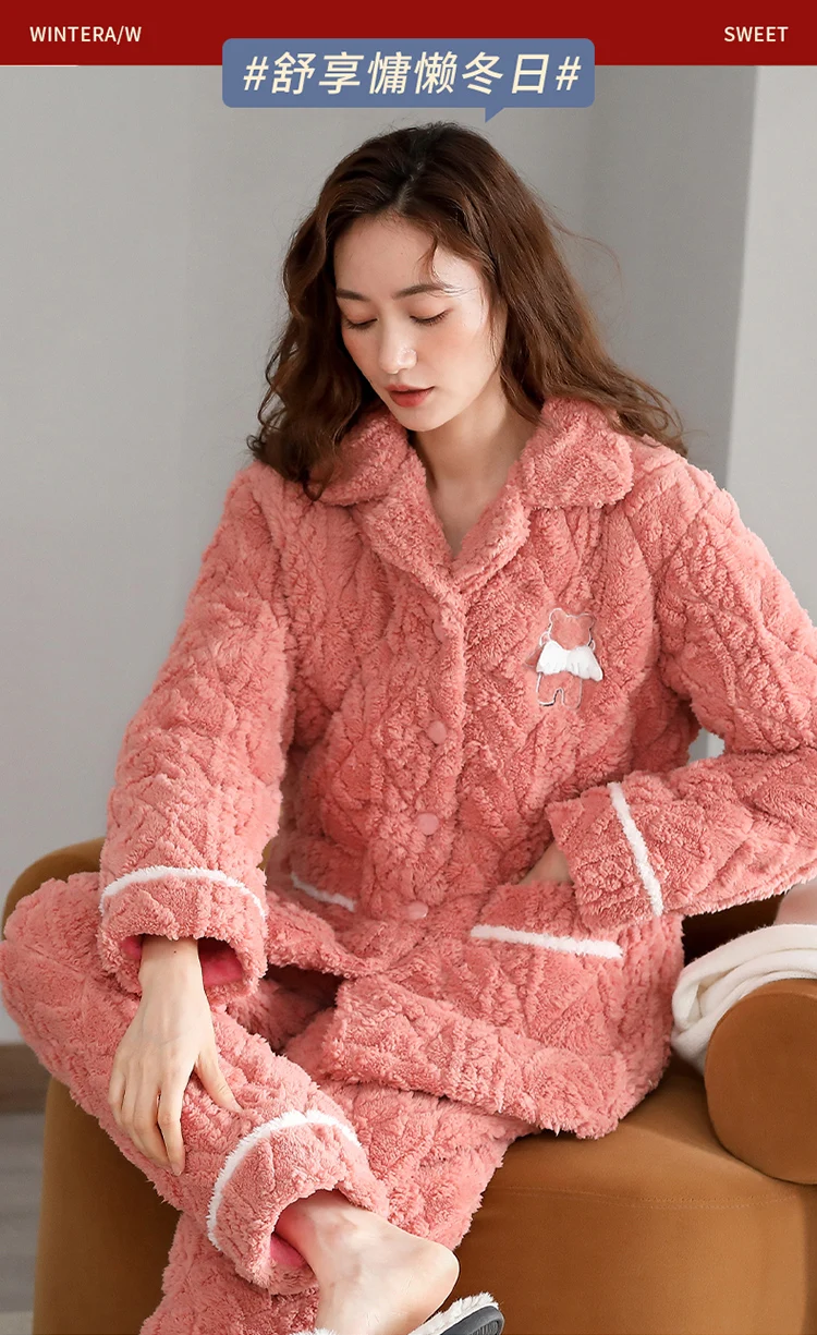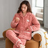 Winter Thick Coral Fleece Quilted Women Pajamas Sets Female Flannel Warm Sleepwear Home Clothing