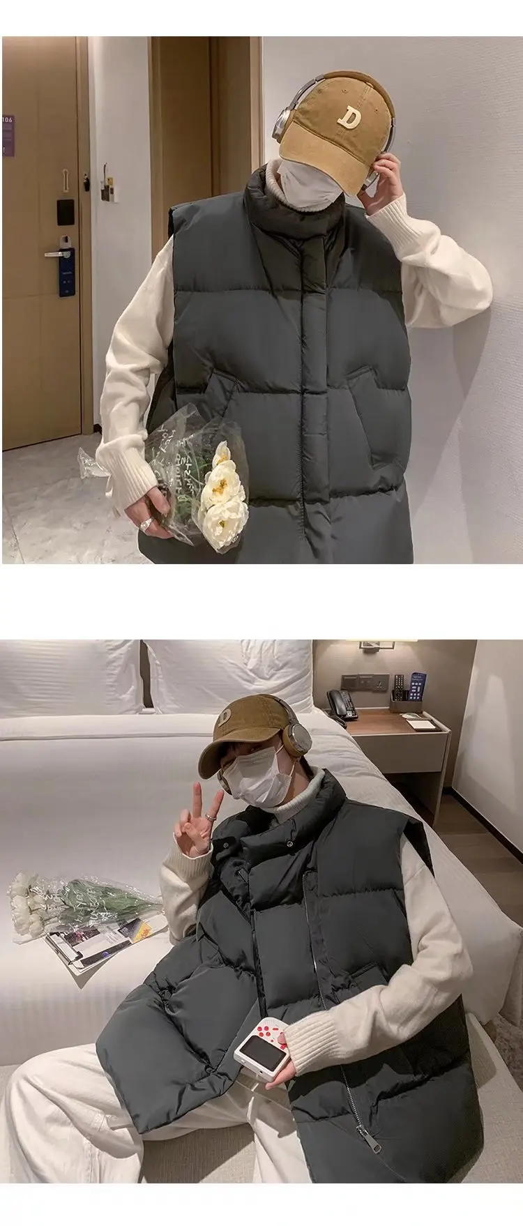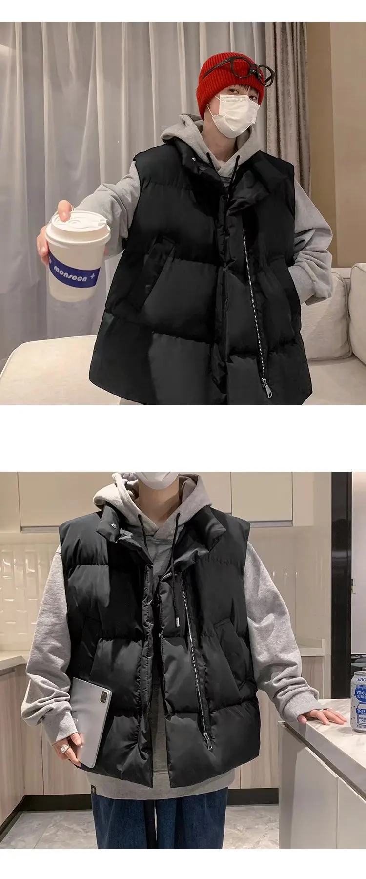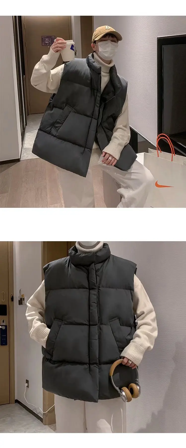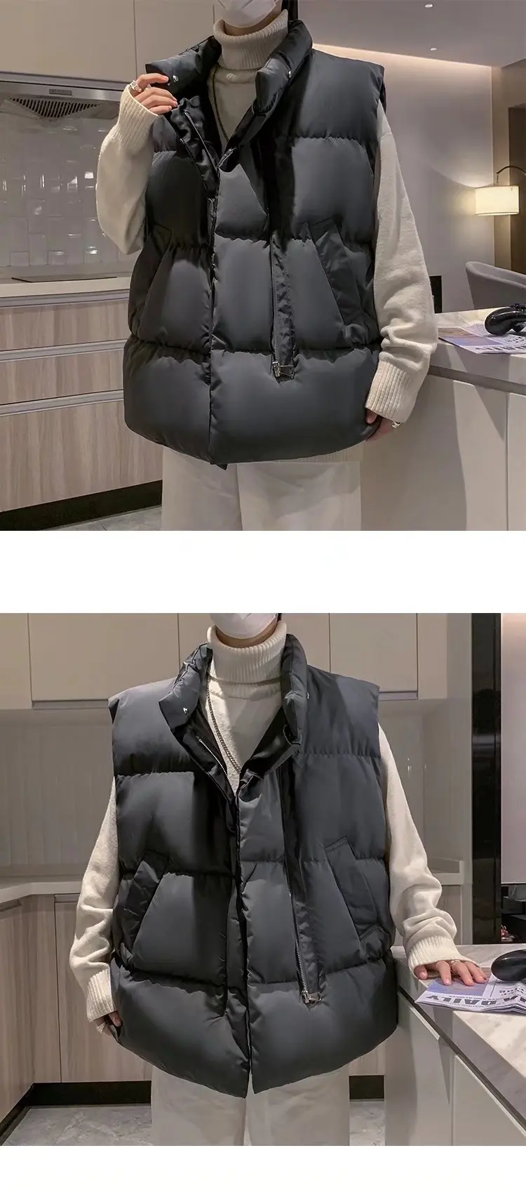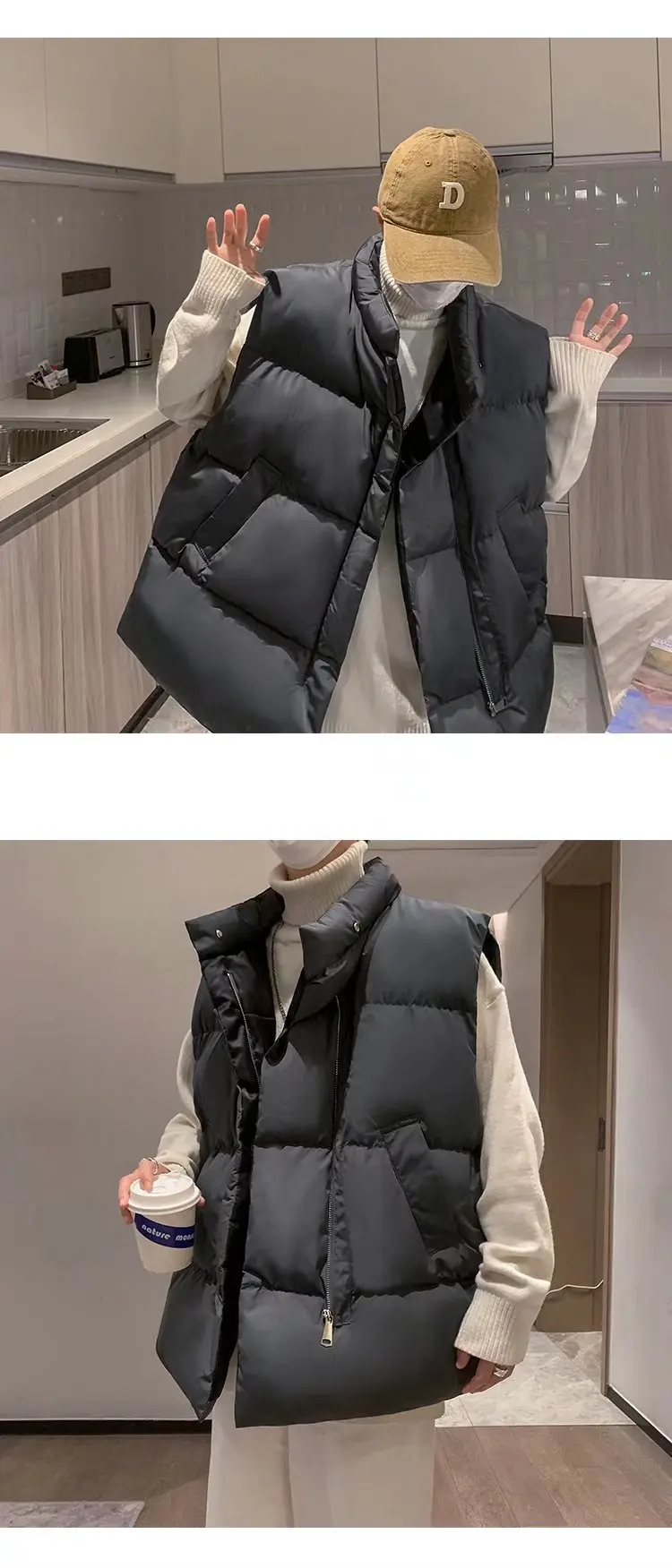 Winter Thick Vest Men Warm Fashion Casual Stand-up Collar Vest Coat Men Korean Loose Sleeveless Jacket Mens Grey/Black Jackets