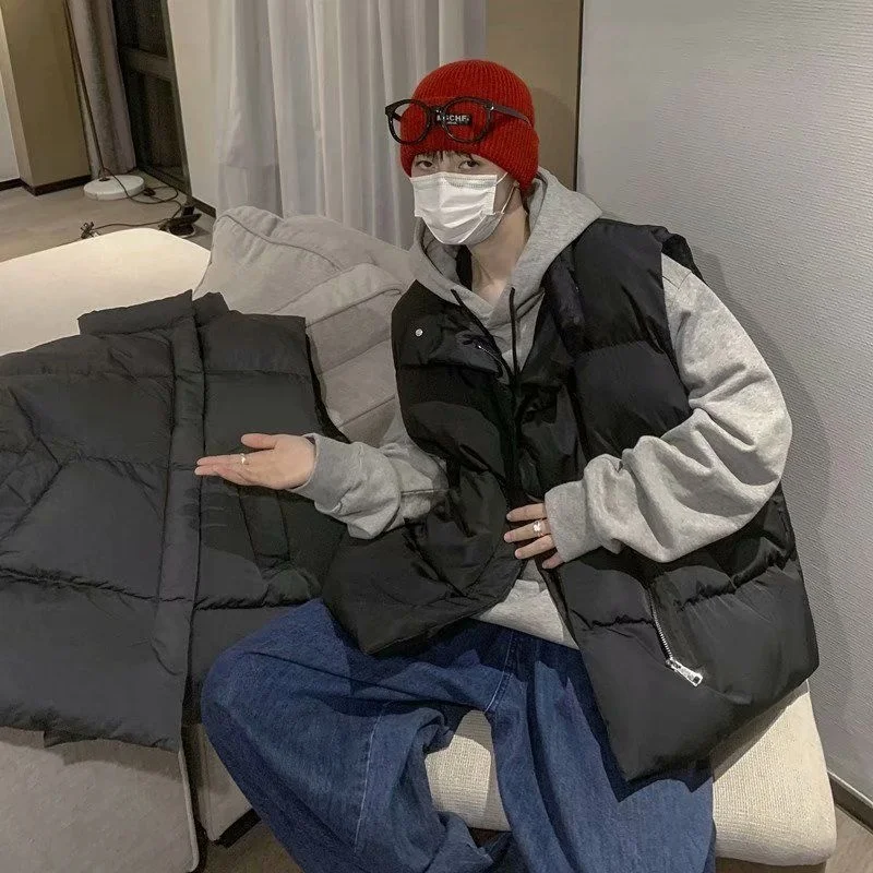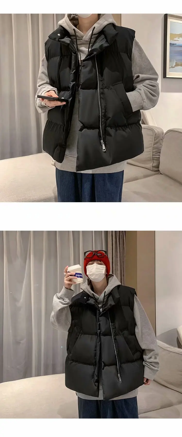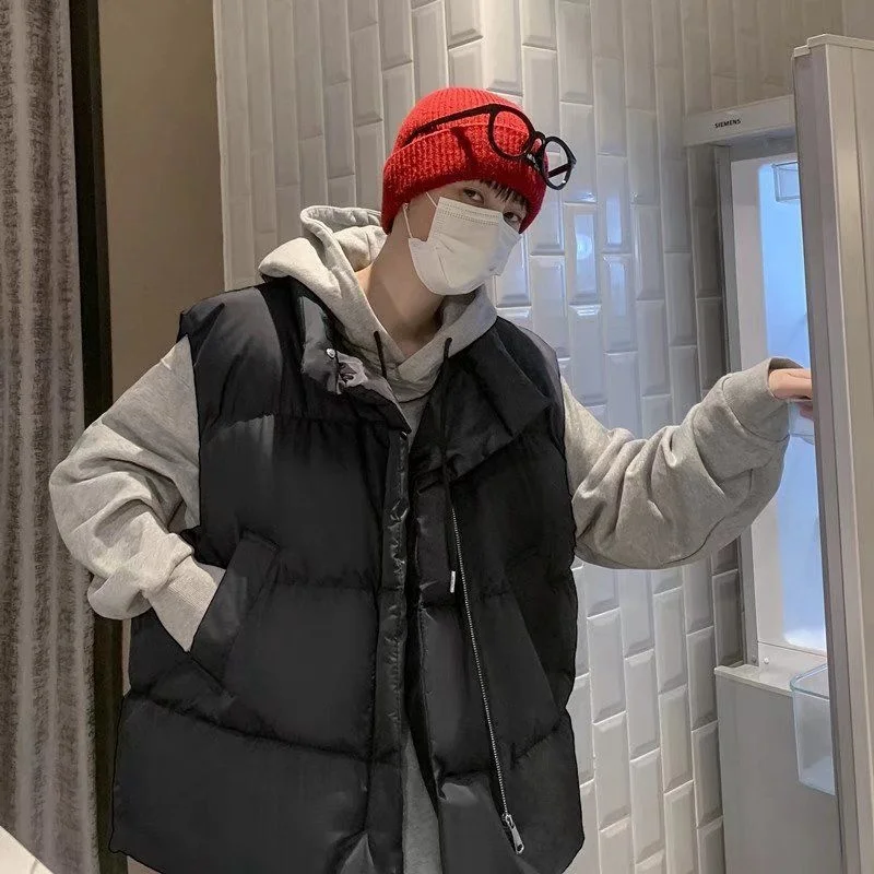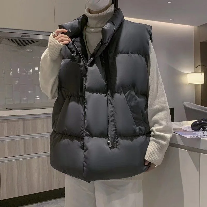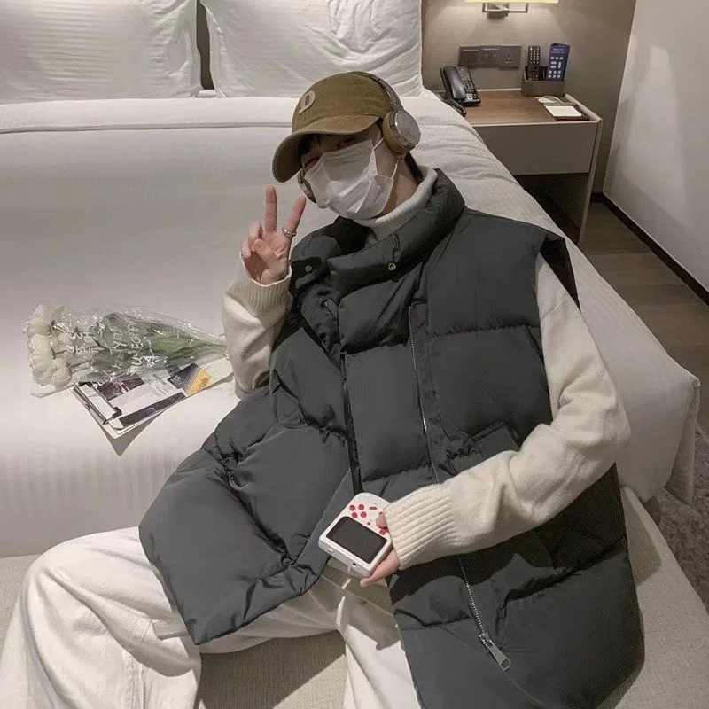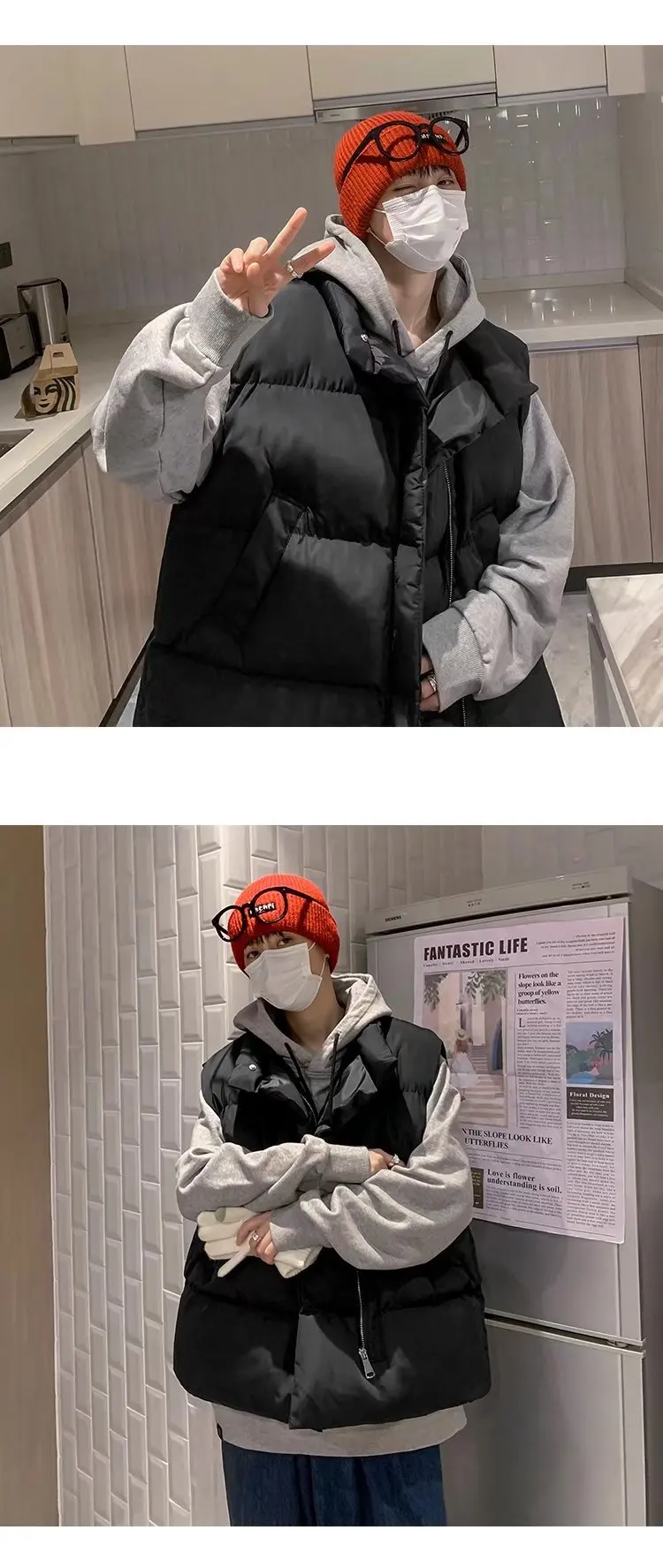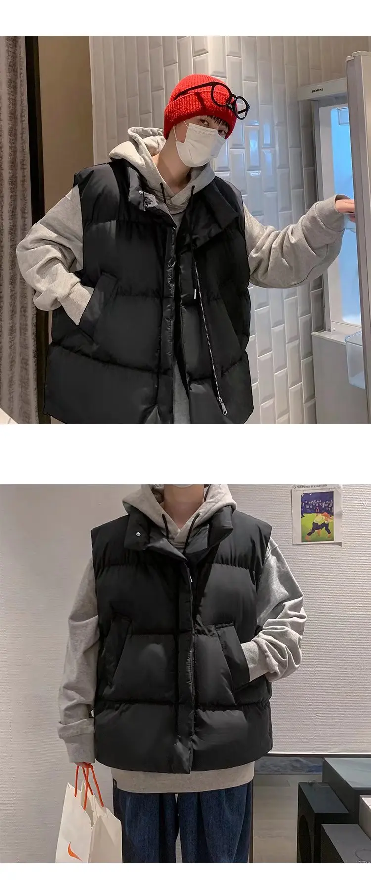 Winter Thick Vest Men Warm Fashion Casual Stand-up Collar Vest Coat Men Korean Loose Sleeveless Jacket Mens Grey/Black Jackets