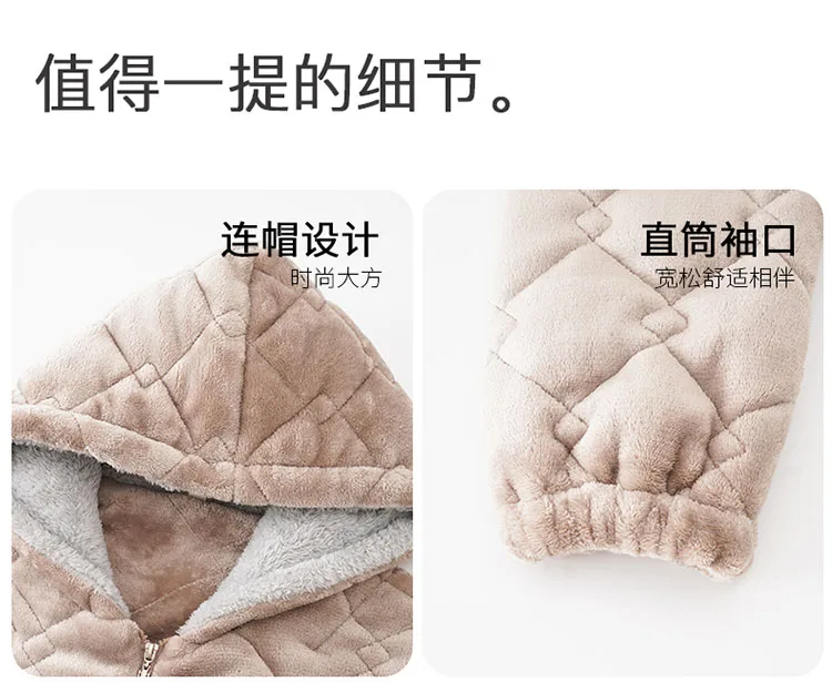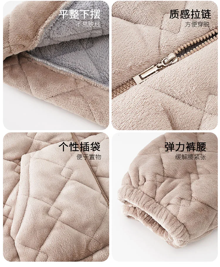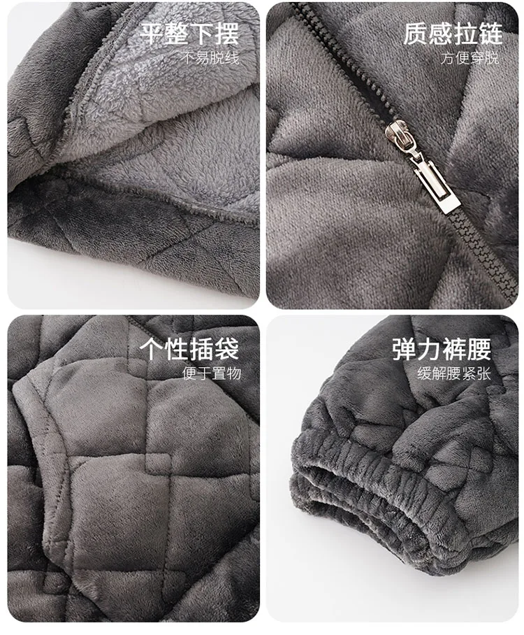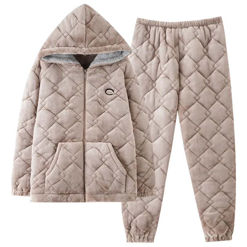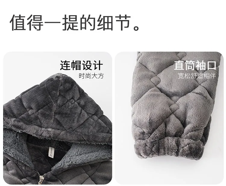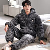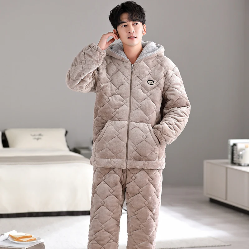 Winter Thick Warm Pajamas Set Men Three Layer Clip Cotton Pyjamas Casual Comfortable Men Hooded Sleepwear