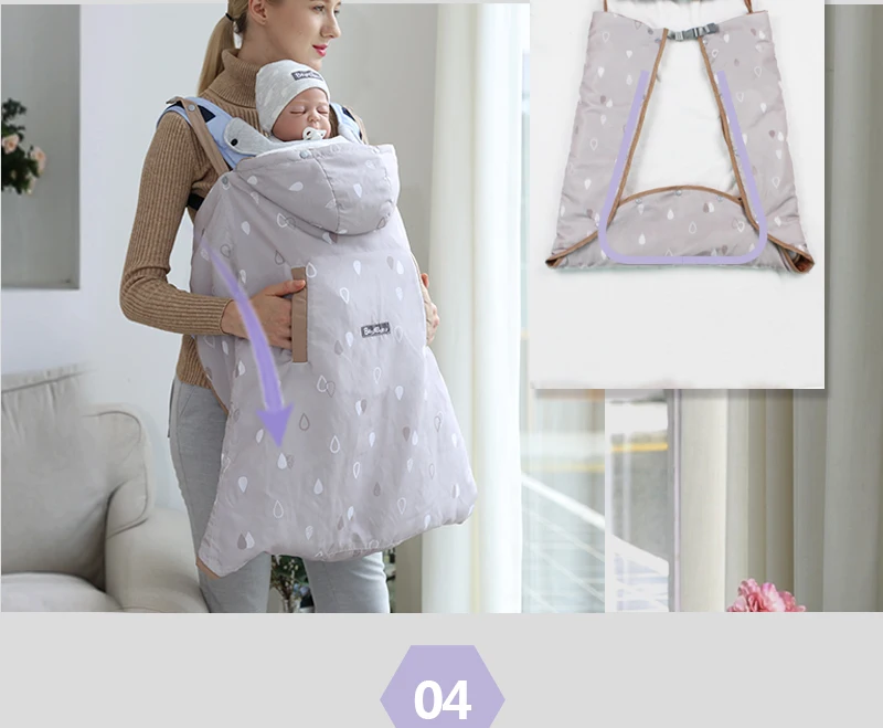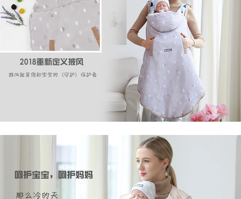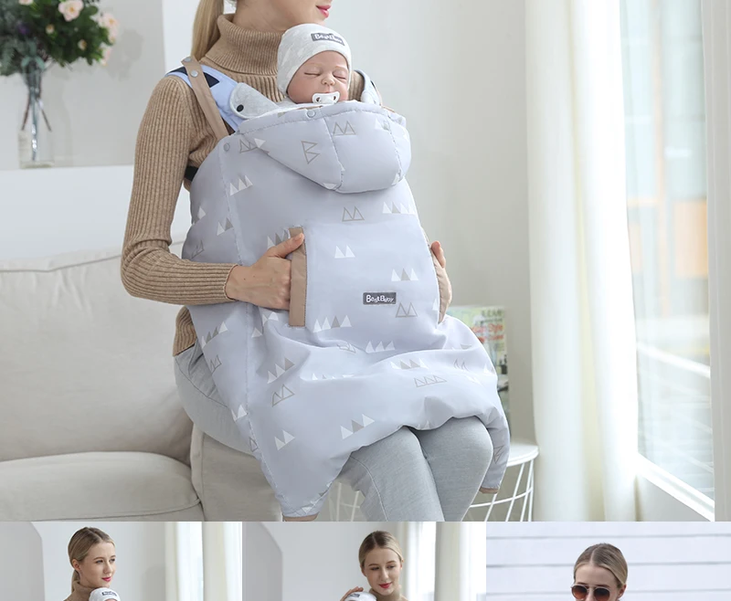Winter Warm Wrap Sling Baby Carrier Windproof Baby Backpack Blanket Carrier Cloak Grey Funtional Winter Cover