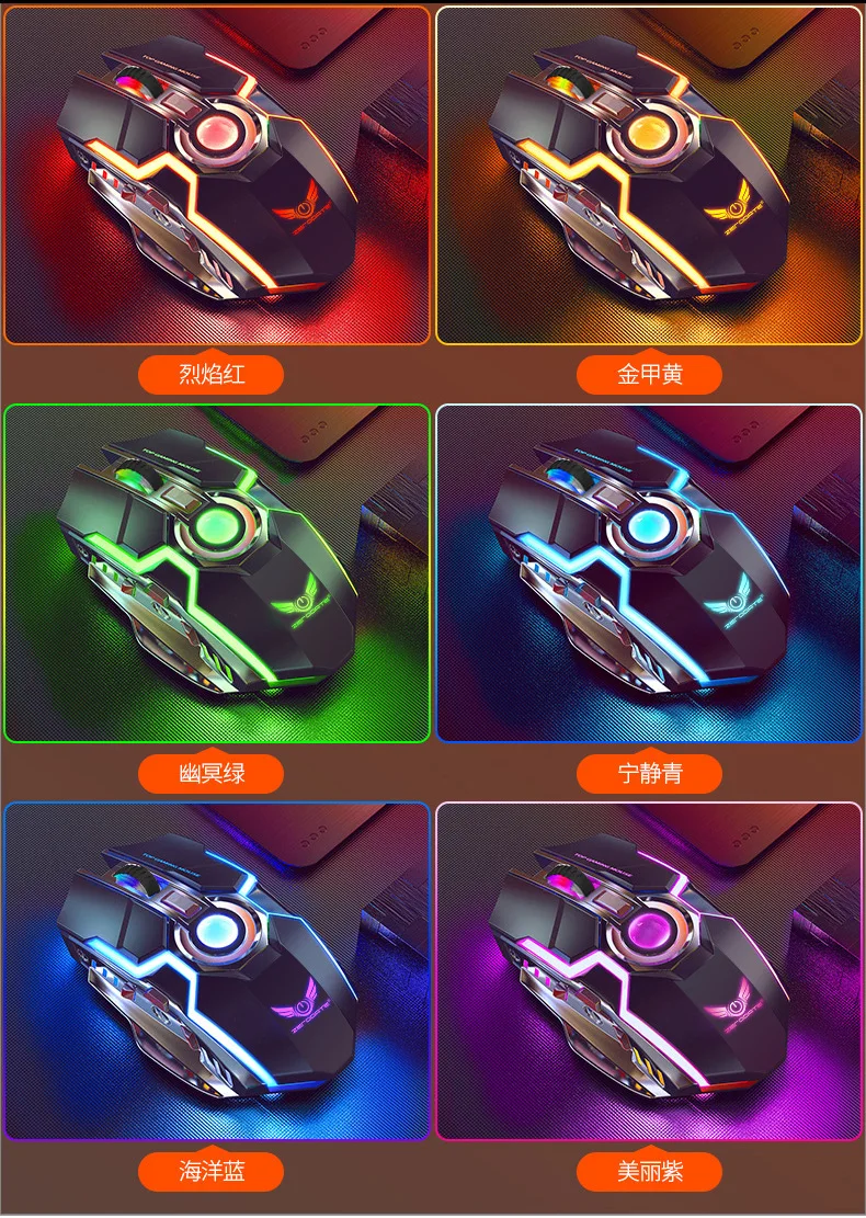 Wireless mouse rechargeable RGB light 2.4G mouse ergonomic design family gaming mouse ABS material spot