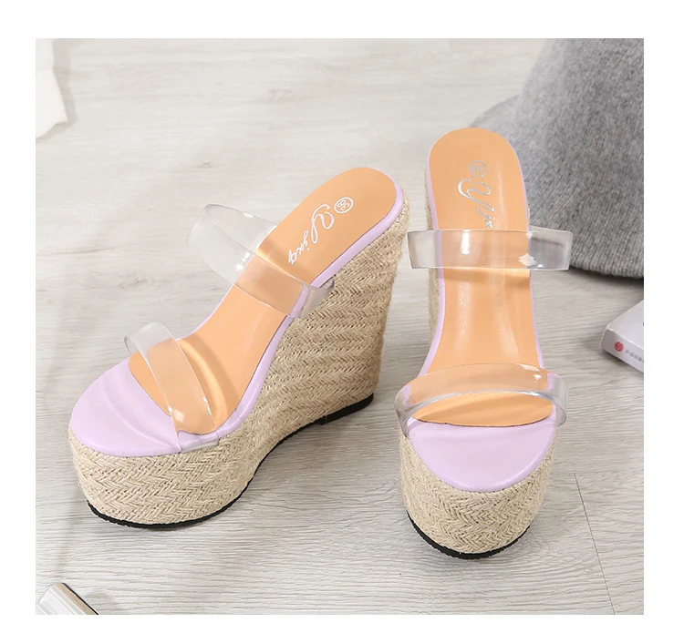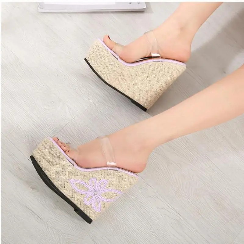 Woman Sandals Summer With Platform 15cm High Heels Sandals Women Transparent Shoes Ladies Purple Sexy High Heels