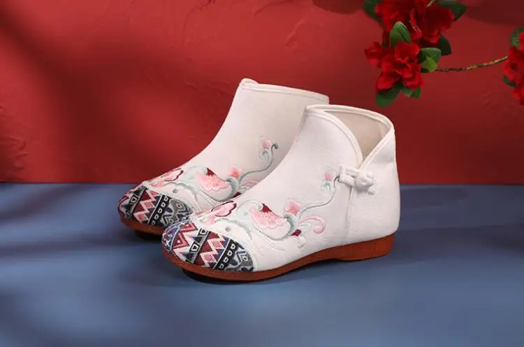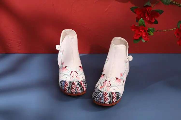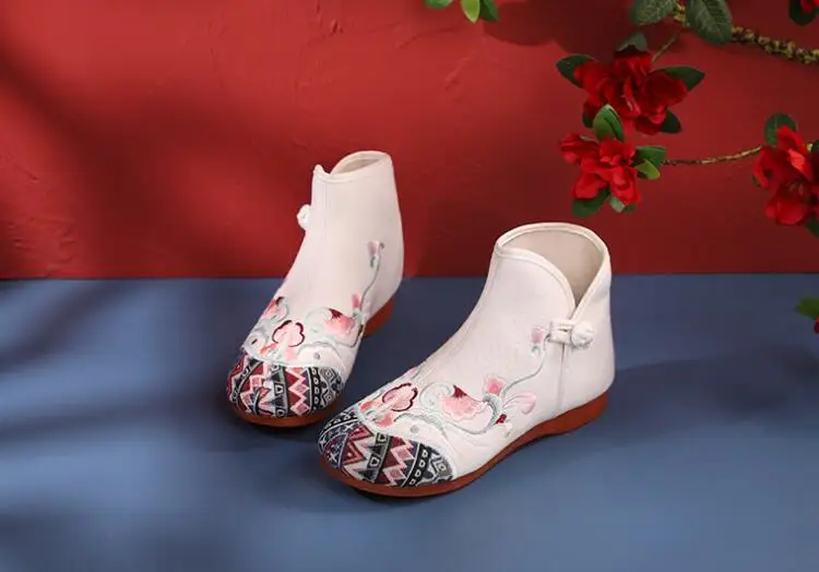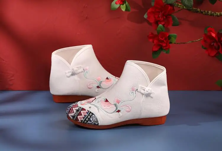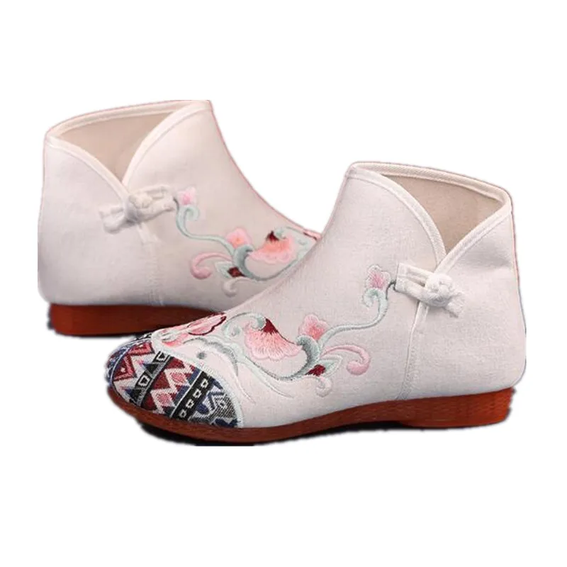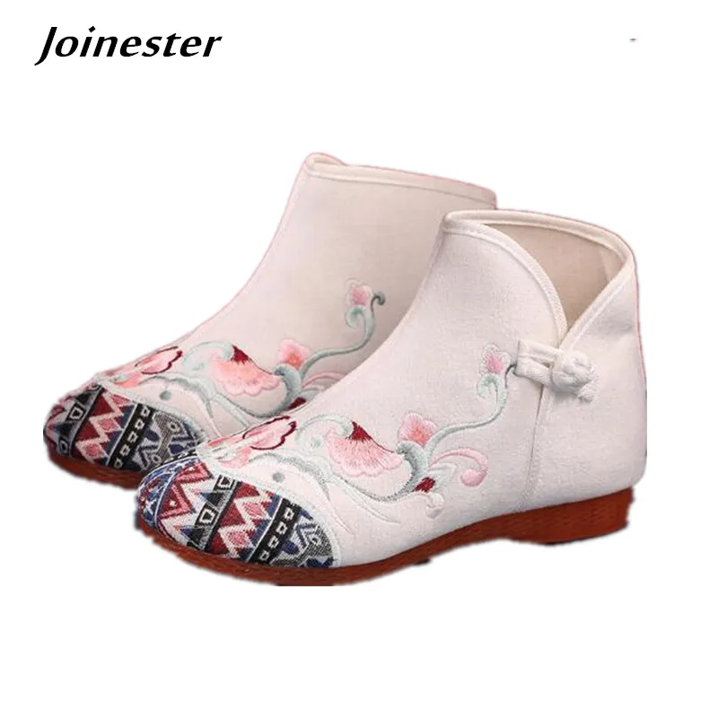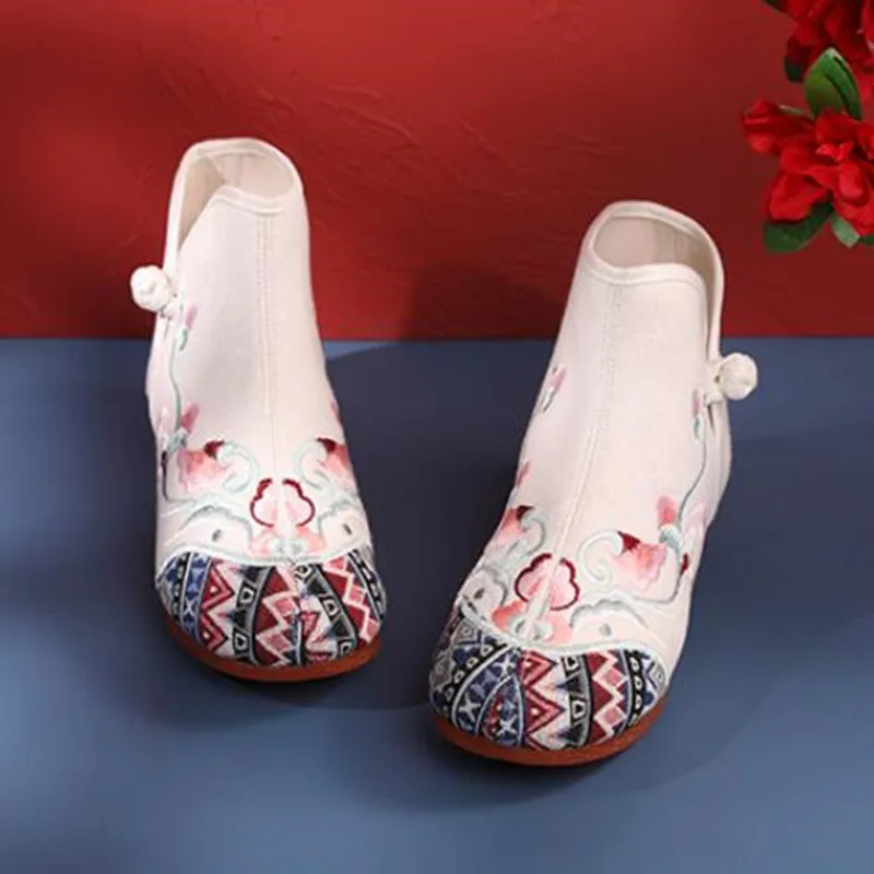 Women Autumn Ankle Boots Embroidery Short Booties for Woman Martin Shoes Vintage Button Dance Boot Ladies Canvas Casual Shoe