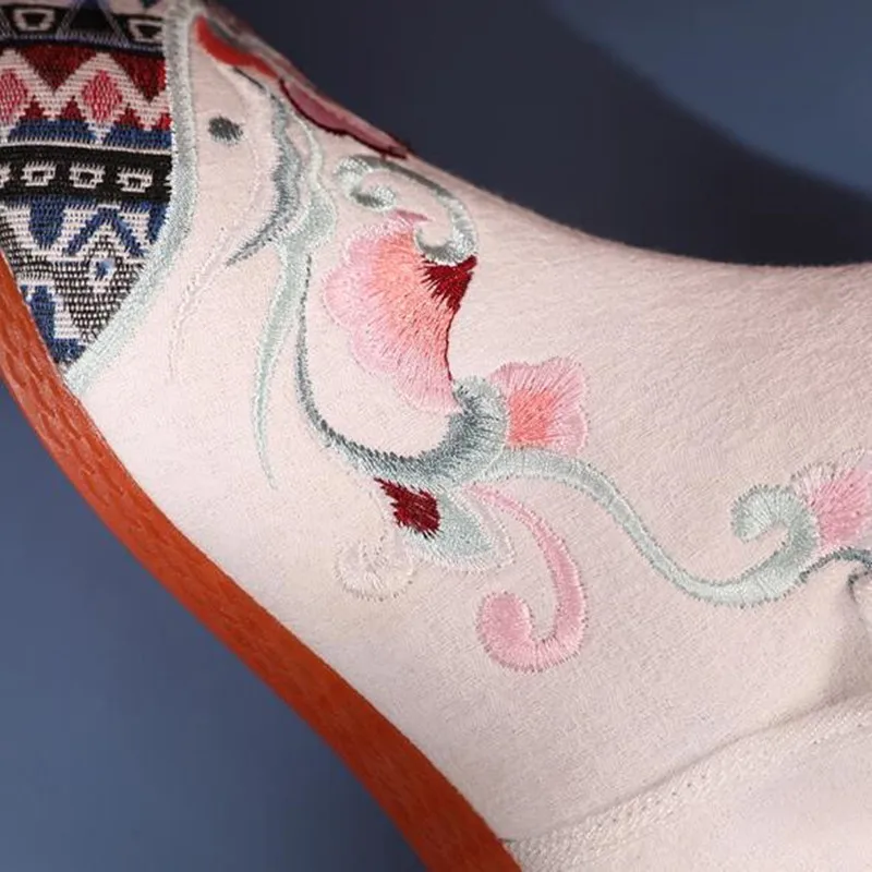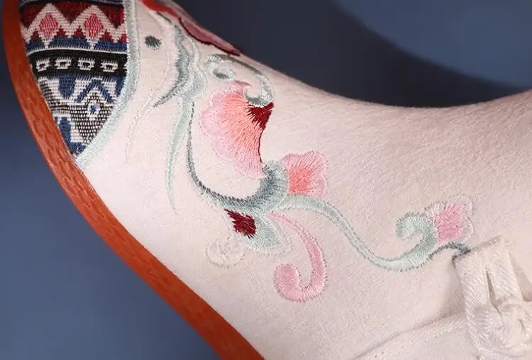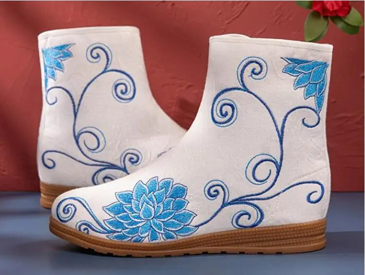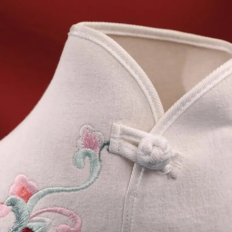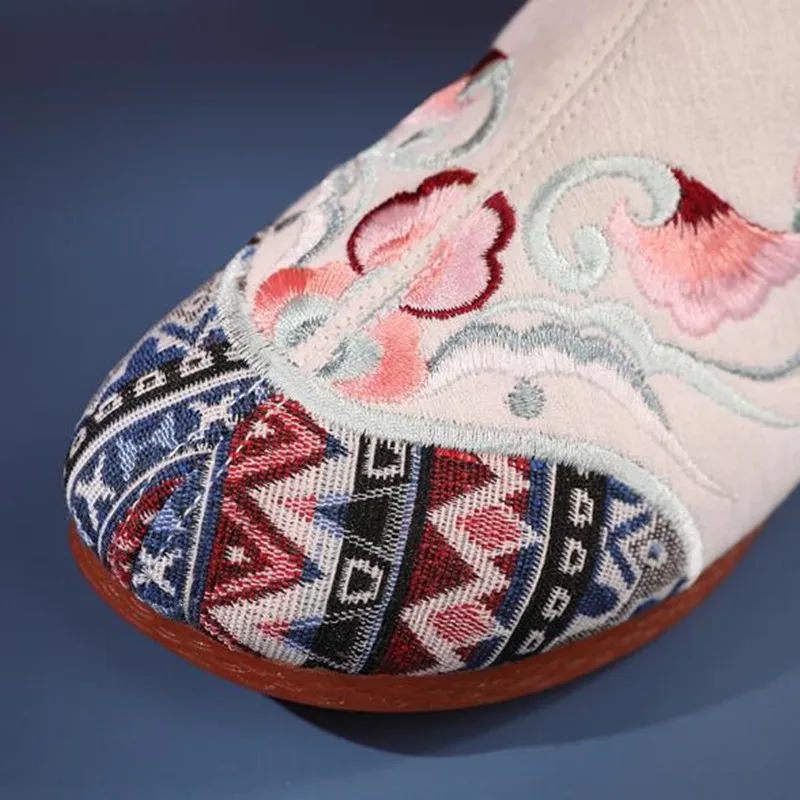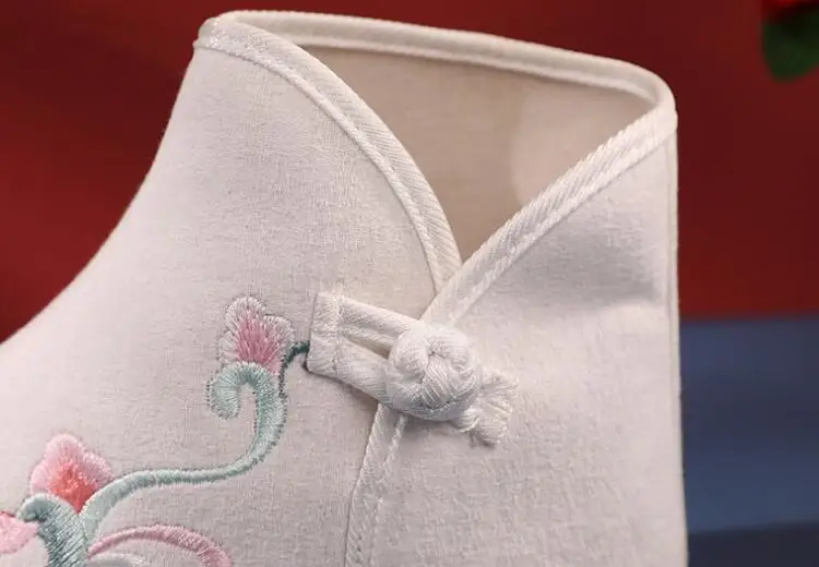 Women Autumn Ankle Boots Embroidery Short Booties for Woman Martin Shoes Vintage Button Dance Boot Ladies Canvas Casual Shoe