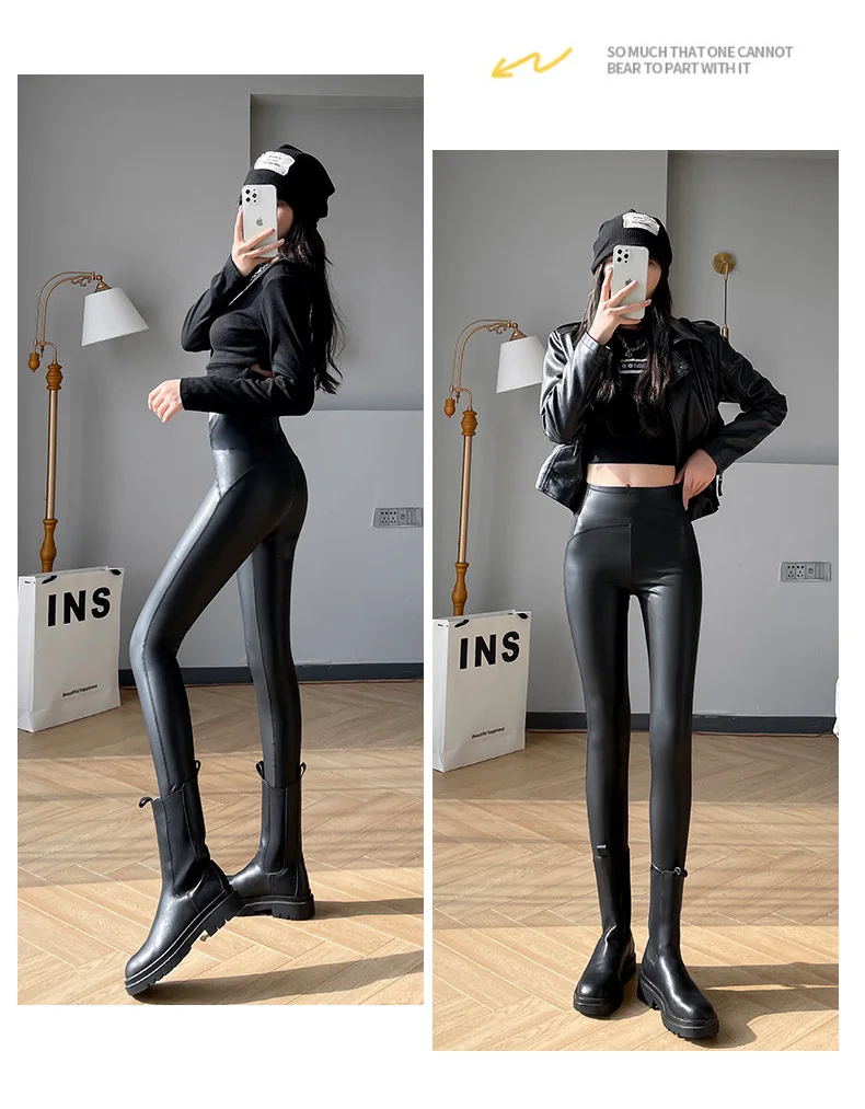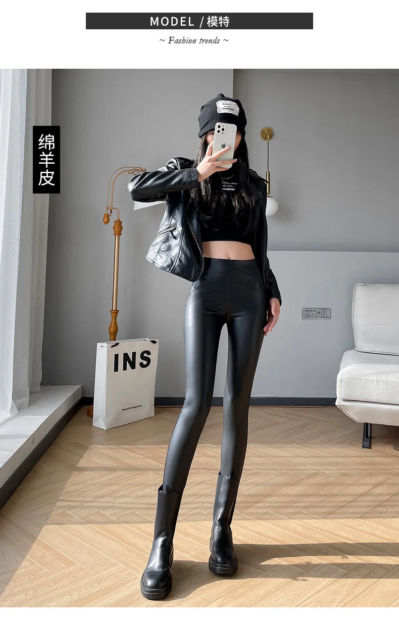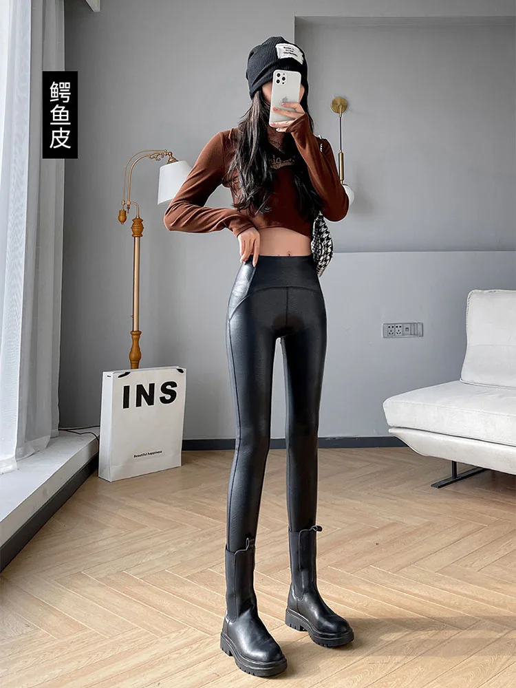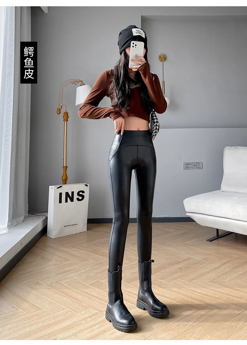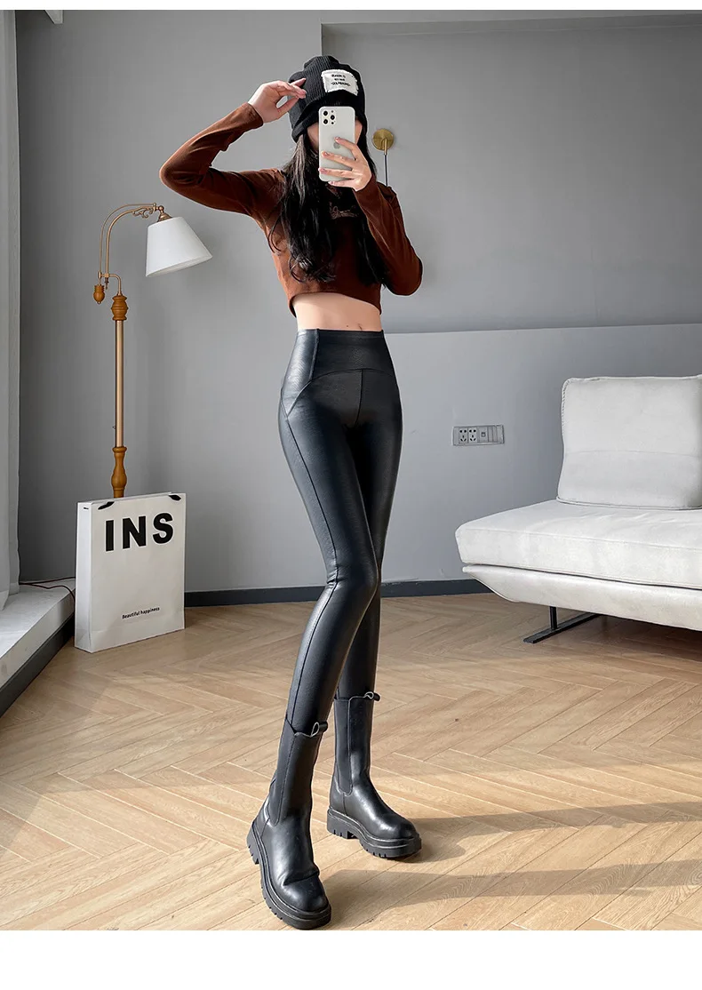 Women Autumn New Fleece Matte PU Leather Pants Leggings Elastic Slim Skinny Leggings Windproof Winter Warm Sexy Legging