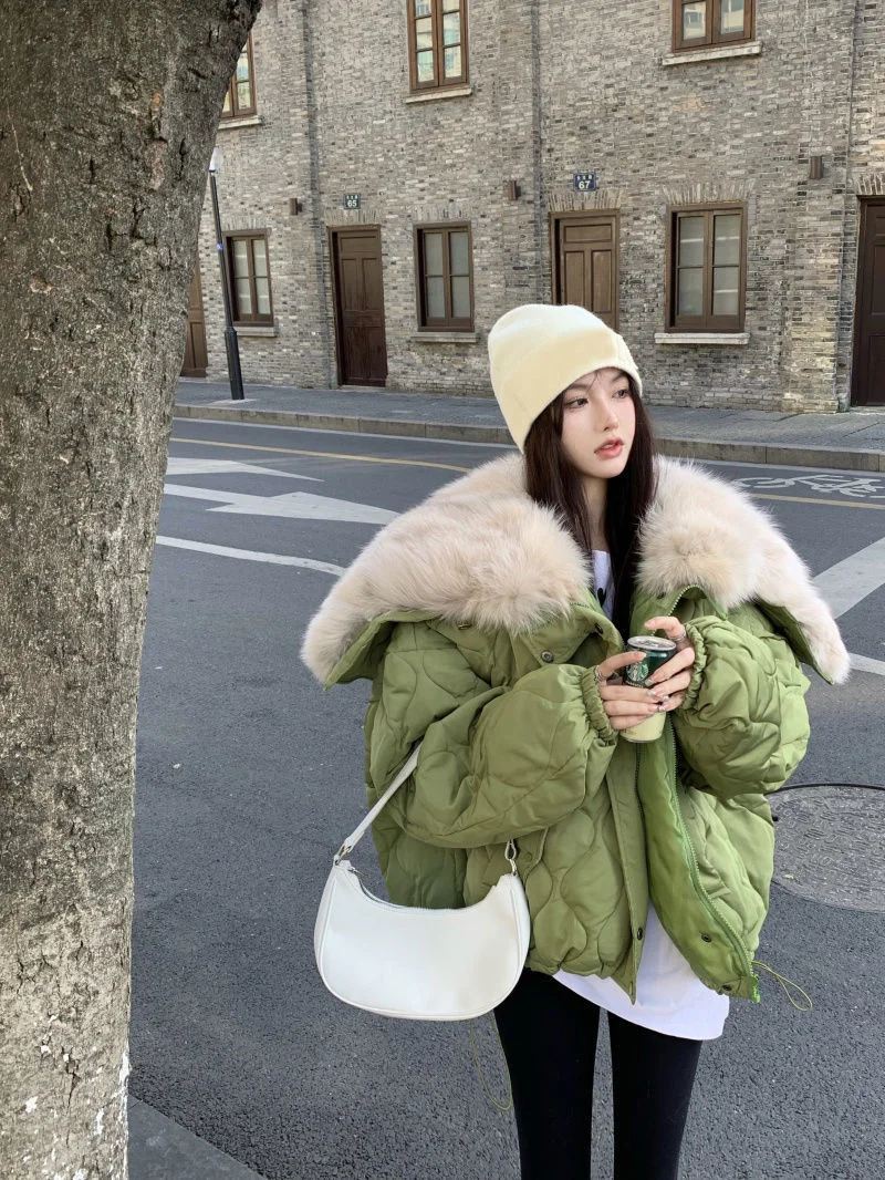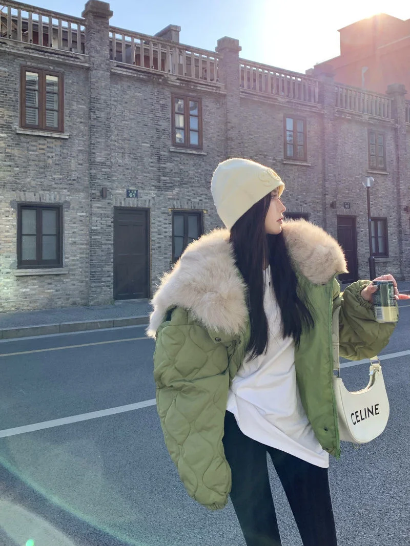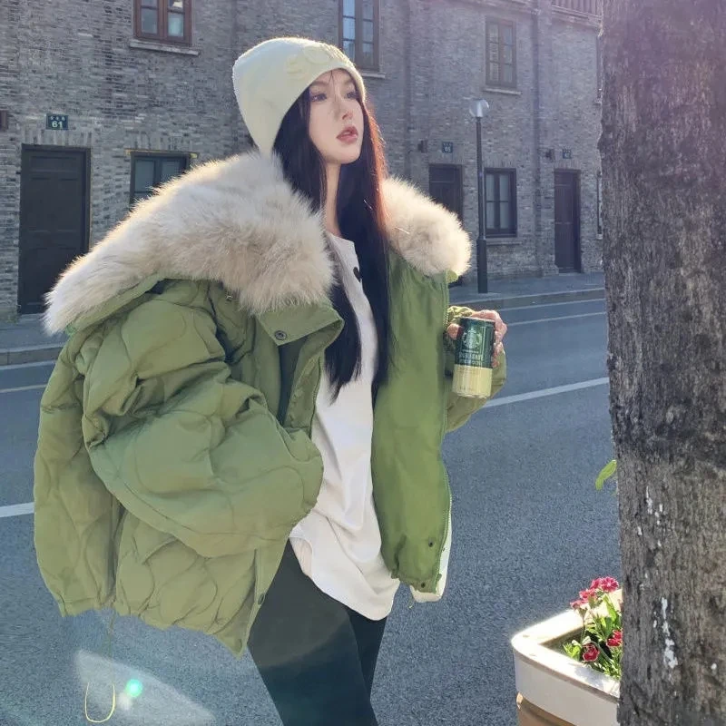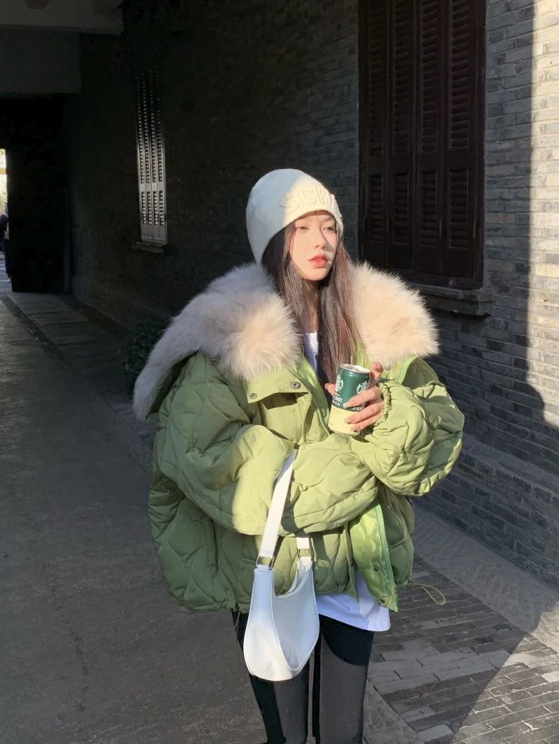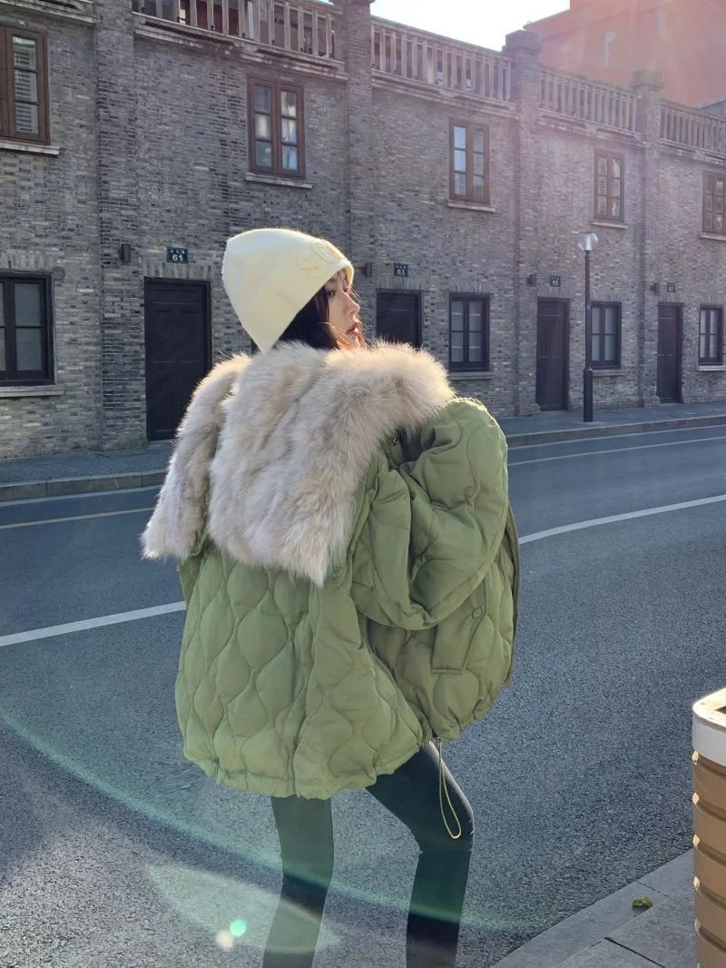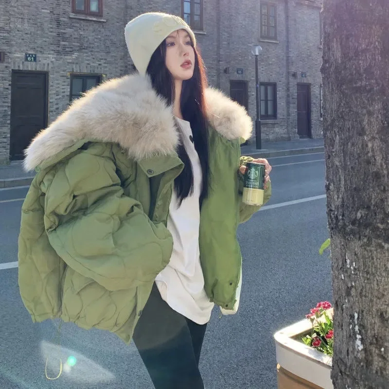 Women Big Fur Collar Down Snow Jacket Winter Pocket Coat Warm Parkas Snow Outwear Oversized Long Winter Jacket
