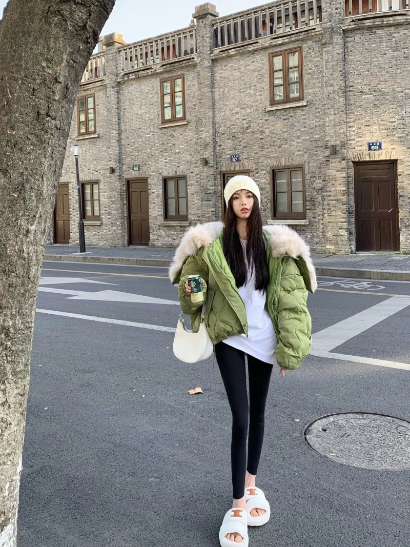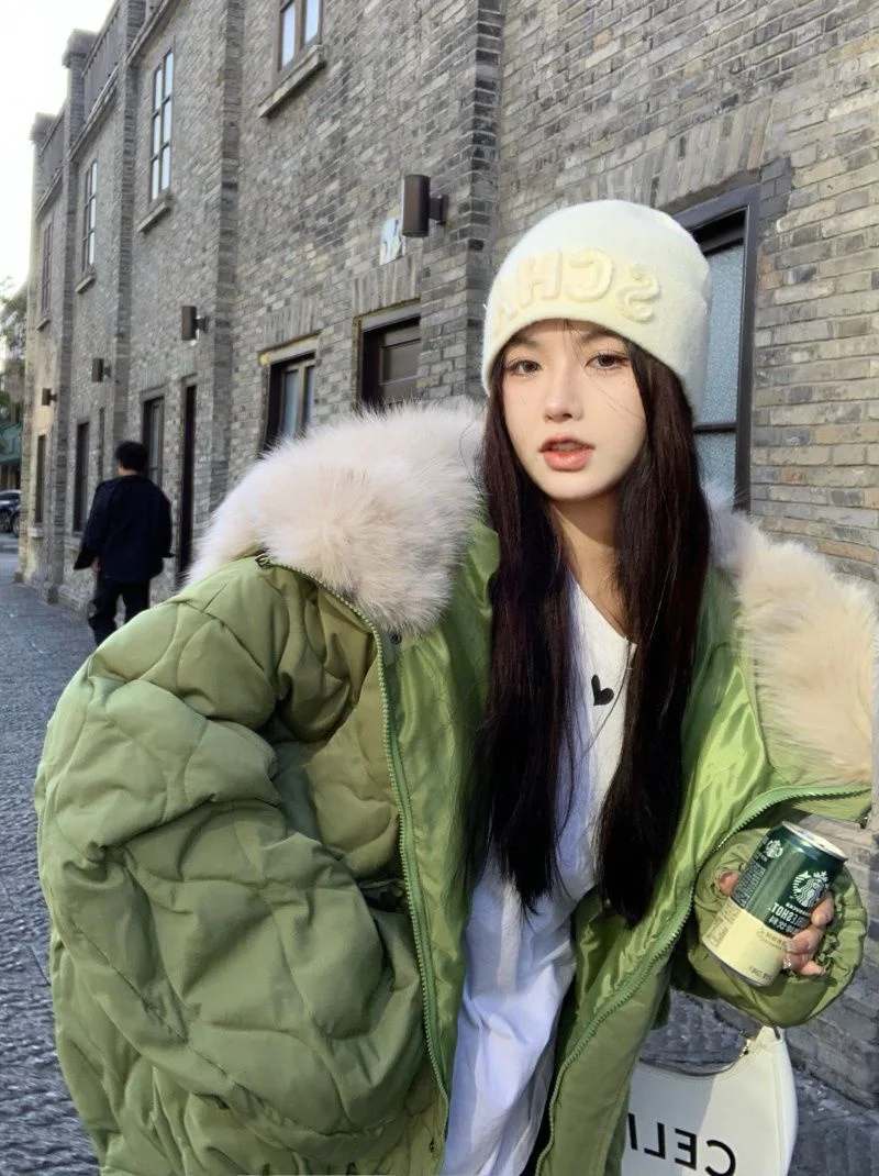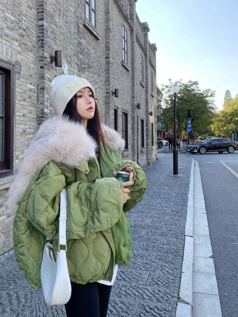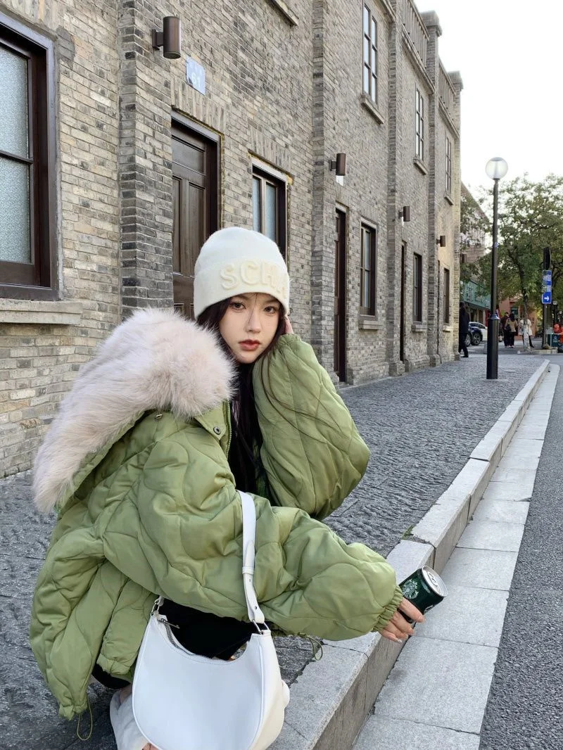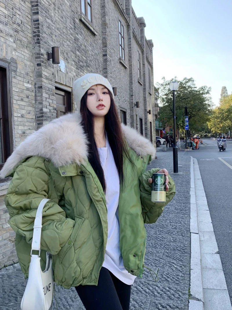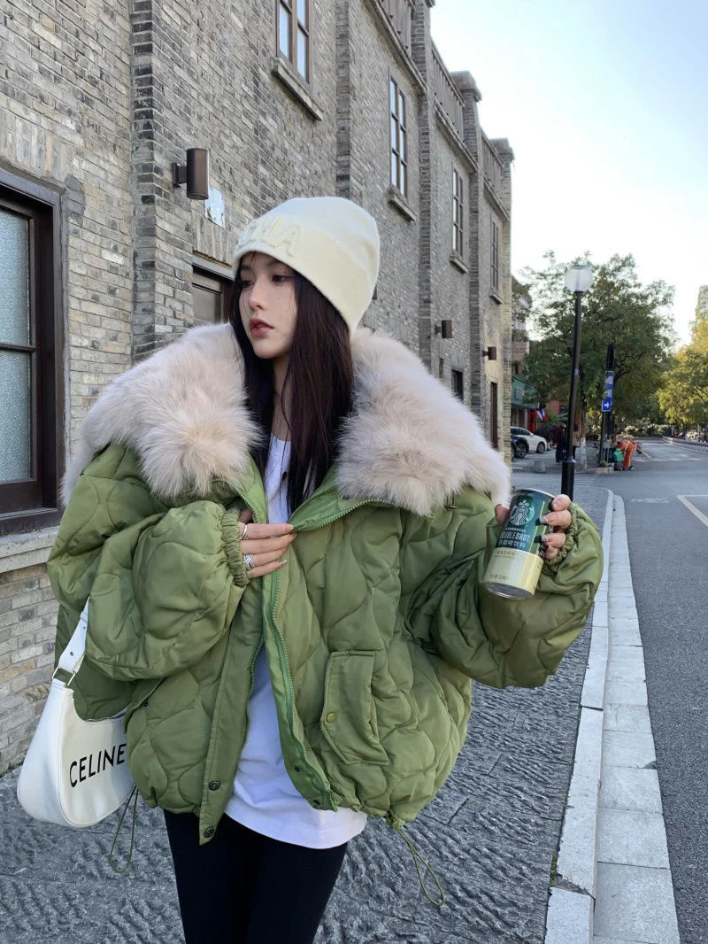 Women Big Fur Collar Down Snow Jacket Winter Pocket Coat Warm Parkas Snow Outwear Oversized Long Winter Jacket