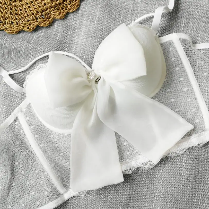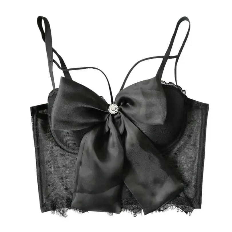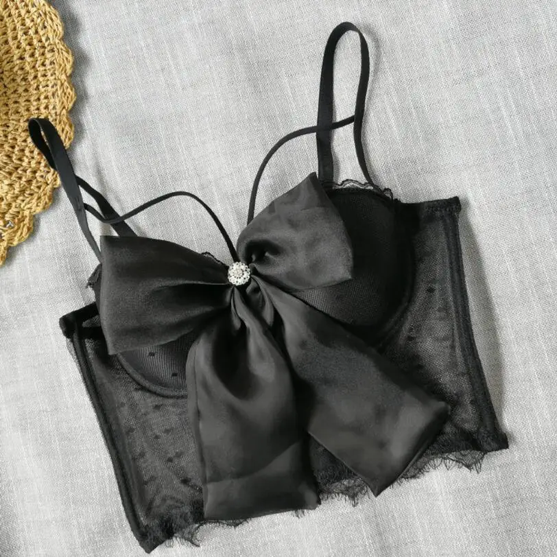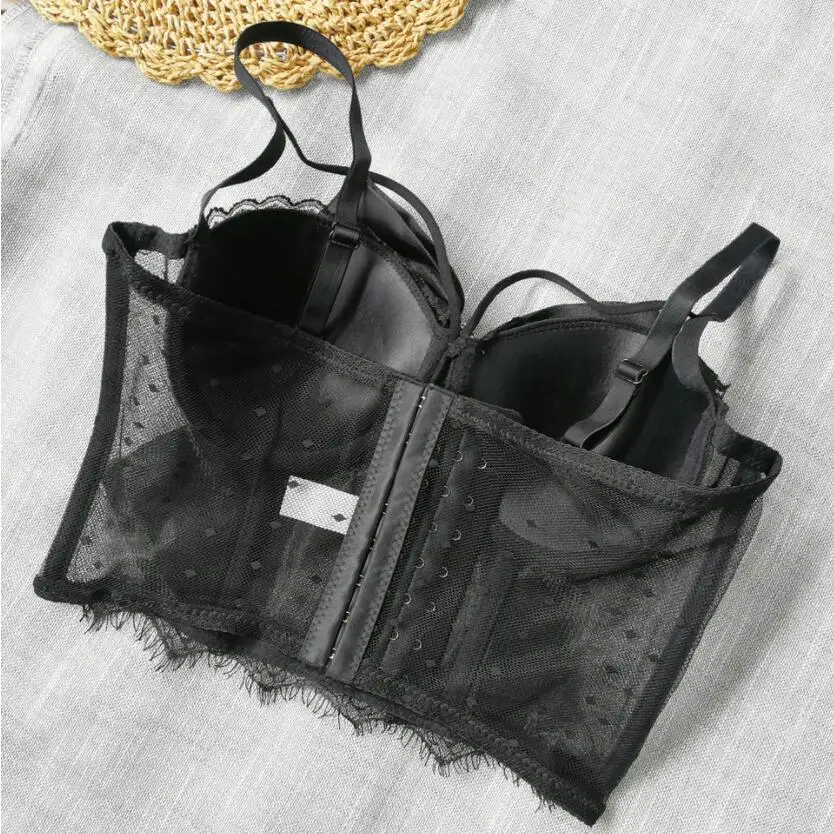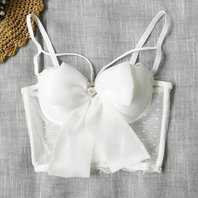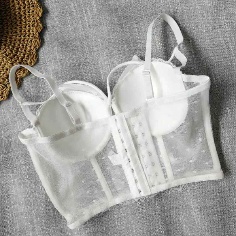 Women Bustier Corset Bowknot Ribbon Push Up Bralet Bra White Black Adjustable Strap Dot Mesh See Through Sexy 2021 Crop Top p469