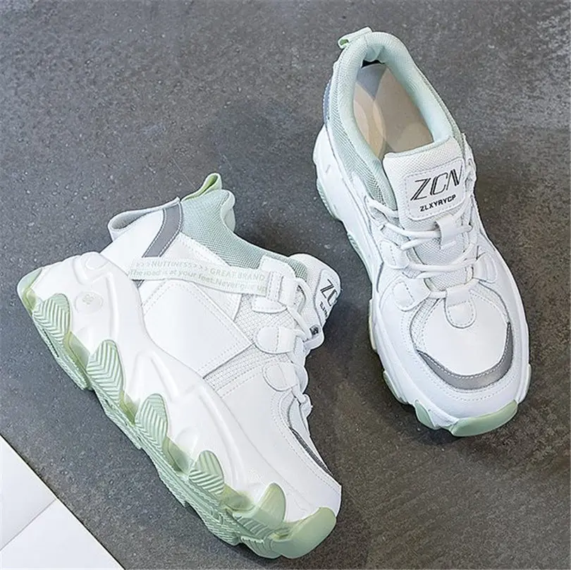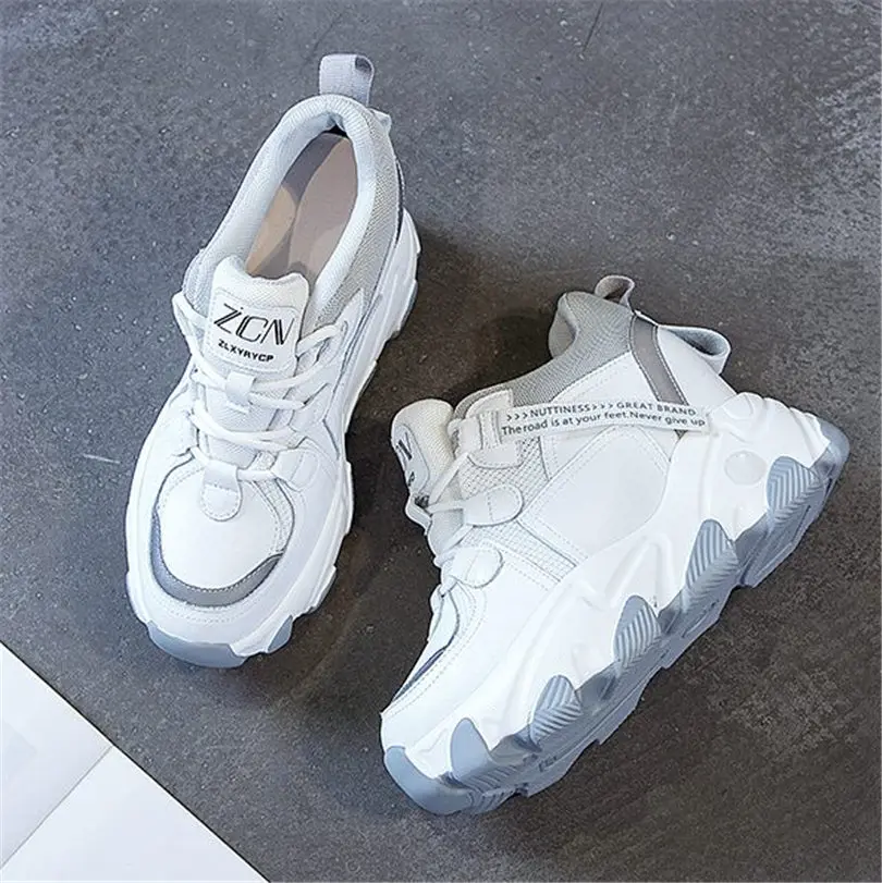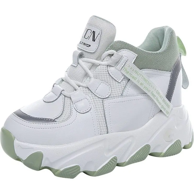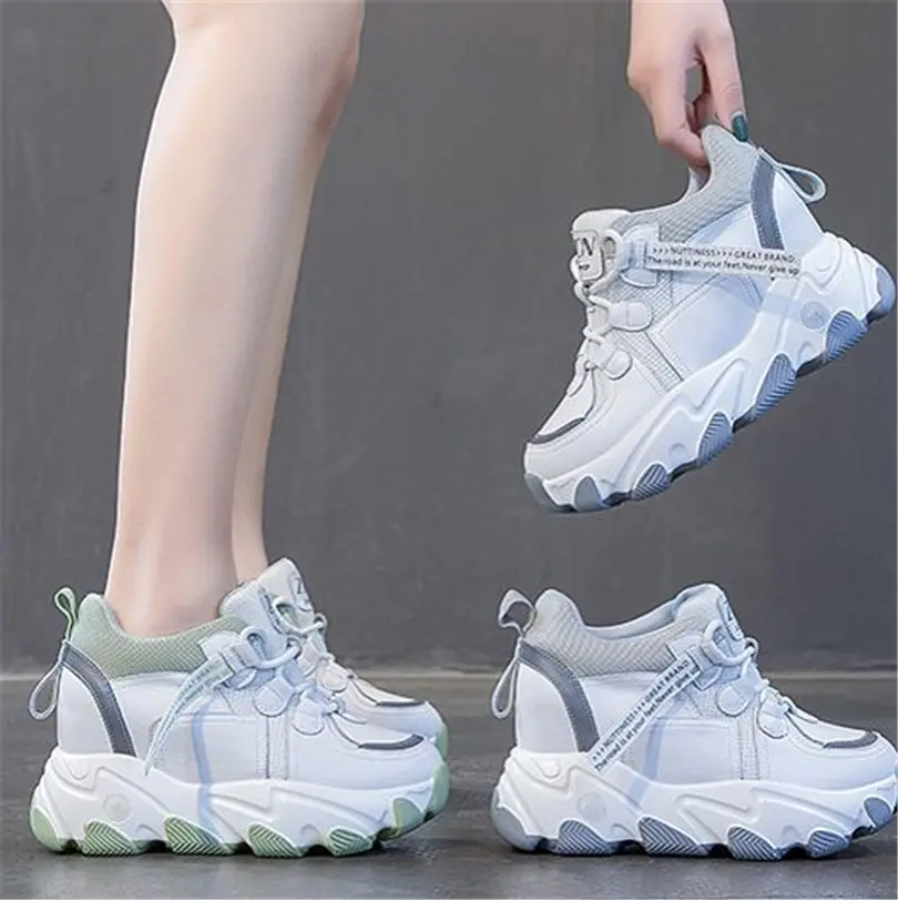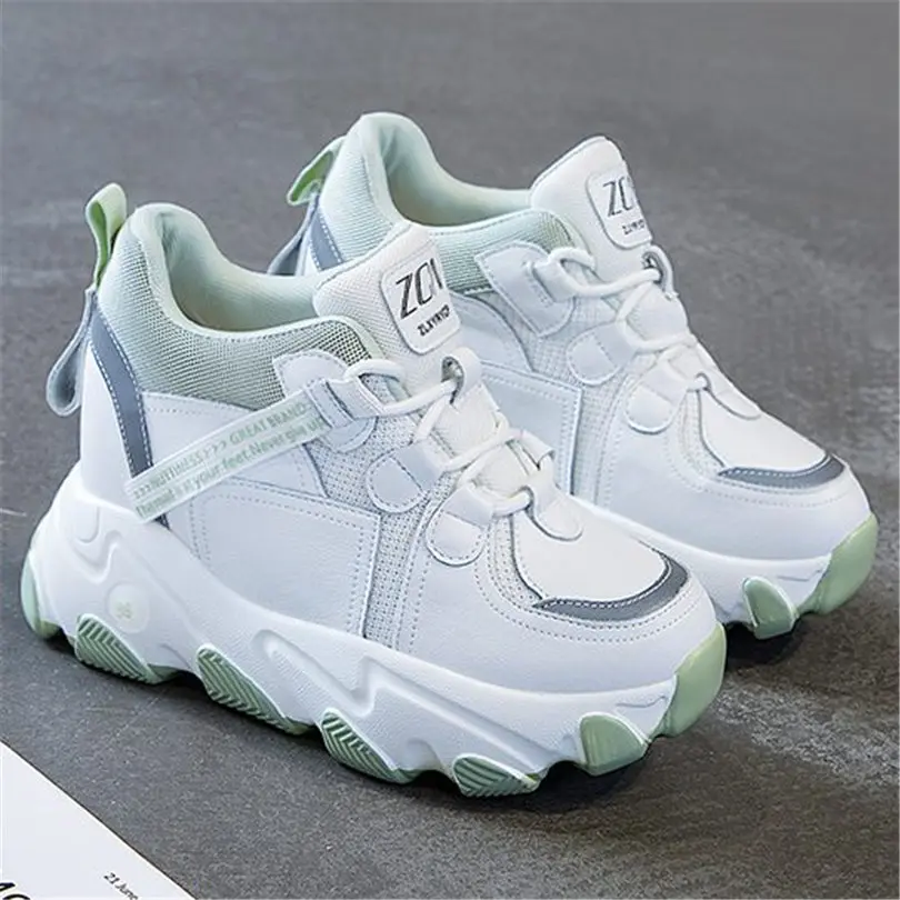 Women Cow Leather Platform Wedge Fashion Sneakers Sport Sandals High Heels Trianer Boots Punk Creepers Party Casual Comfort