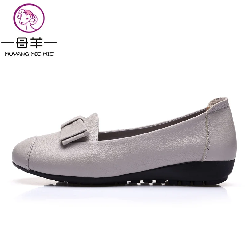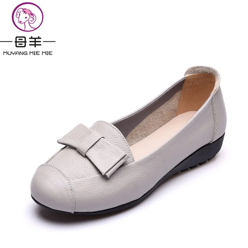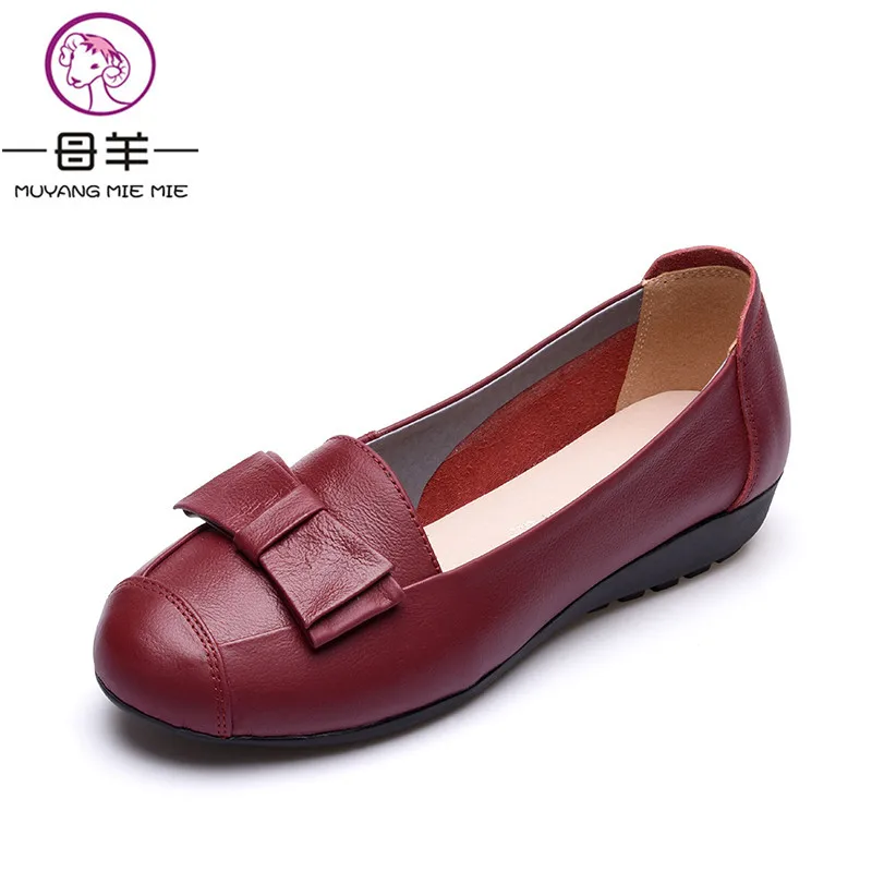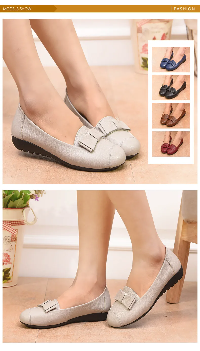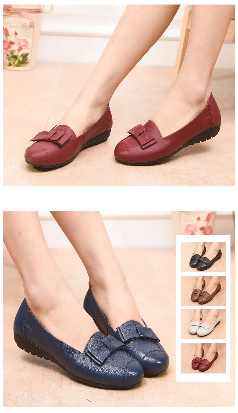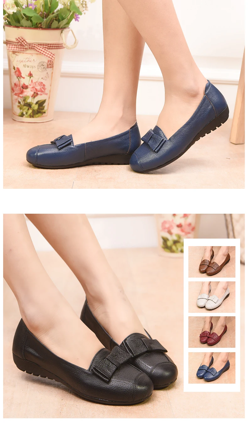 Women Flats Genuine Leather Flat Shoes Woman Casual Work Mother Shoes Plus Size(34-43) 2019 Fashion Women Shoes