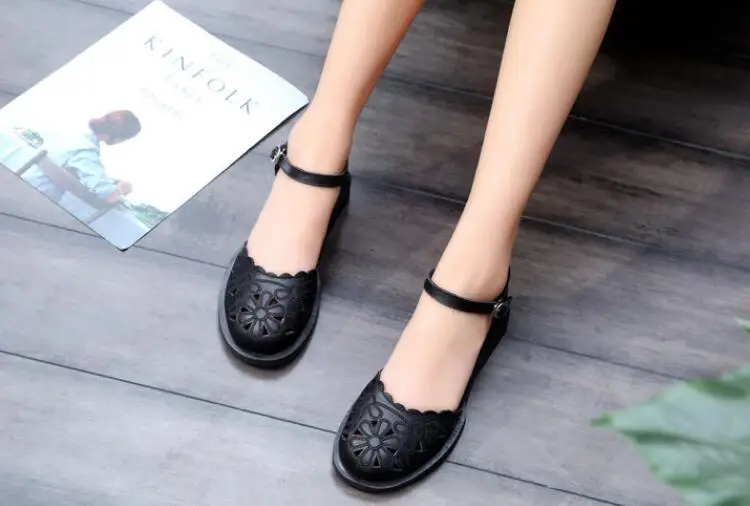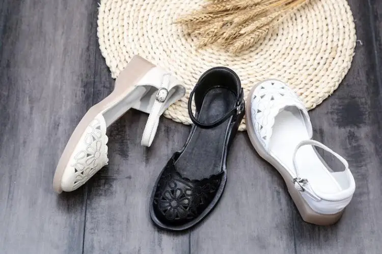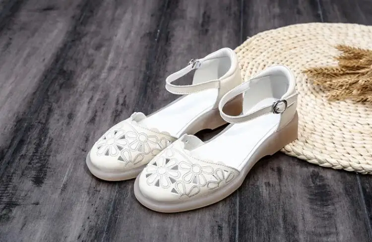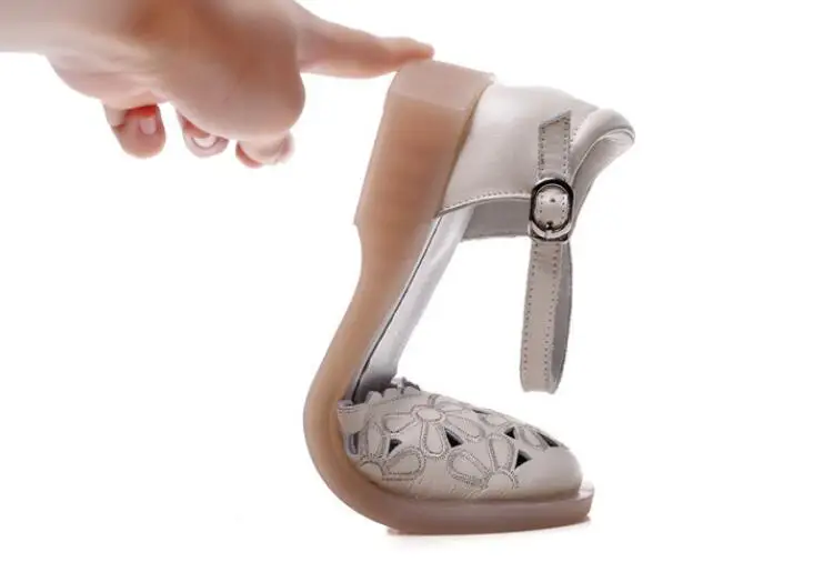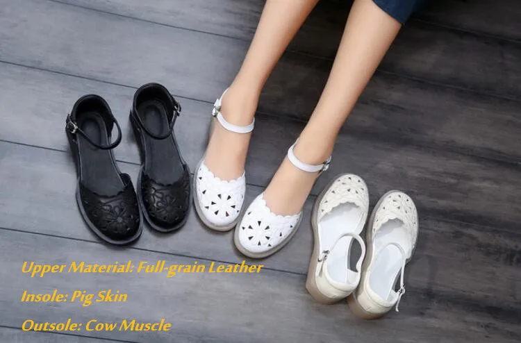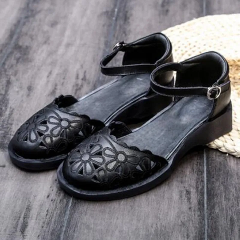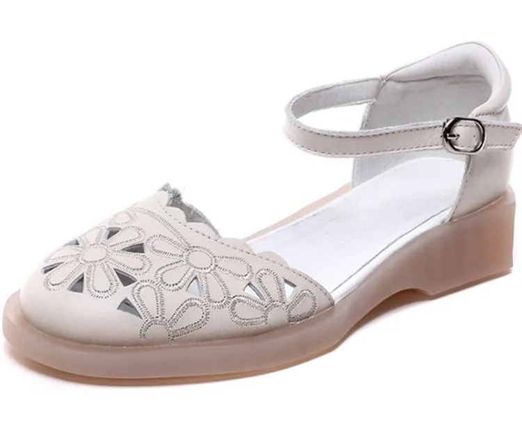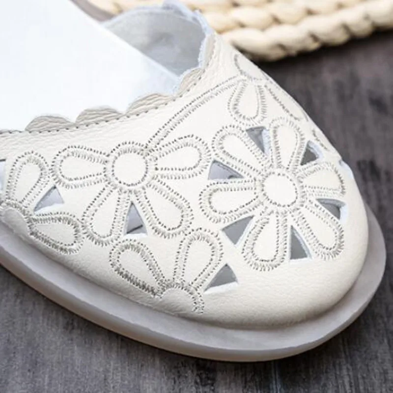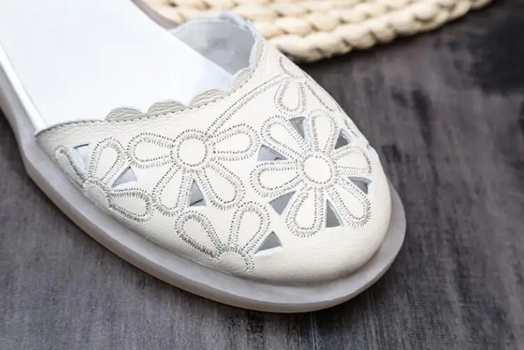 Full toe + Hollow out + Flower embroidery adds elegance and temperament to the genuine leather sandal.