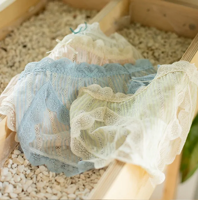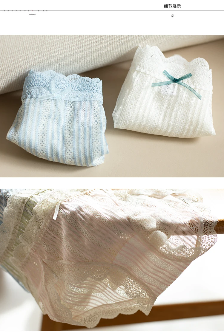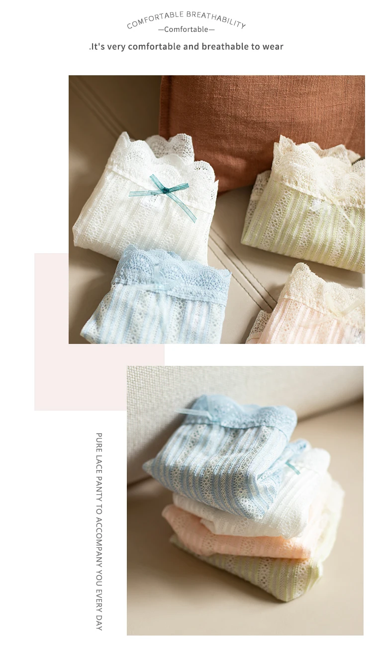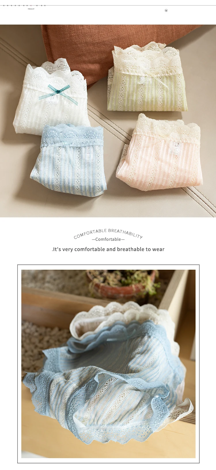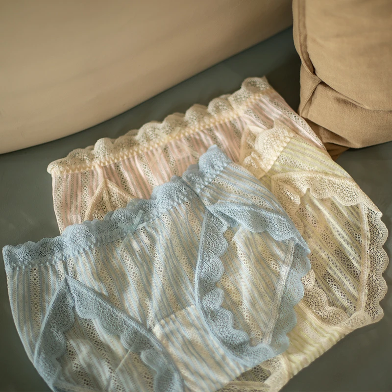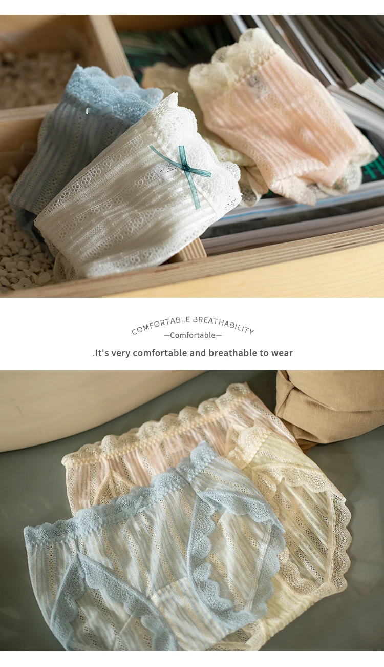 Women Panties Vertical Lace Underwear Sexy Striped Briefs Elastic Cute Girls Intimates 4 Colors