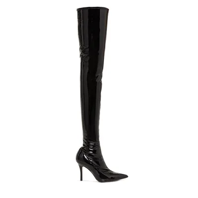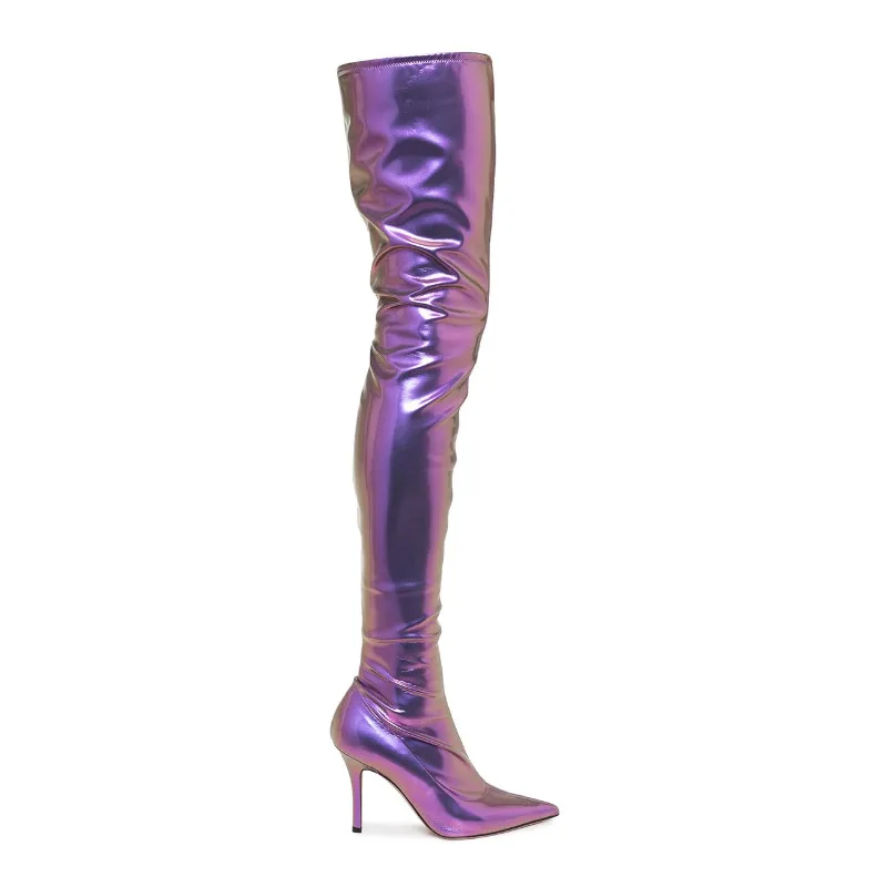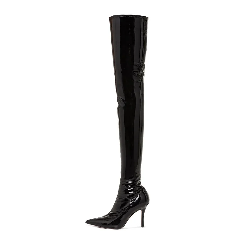Women Shiny Thigh High Stretchy Latex Stiletto Heeled Boots Sexy Club Shoes Woman Over Knee Botines Botas Large Size 39 42 47