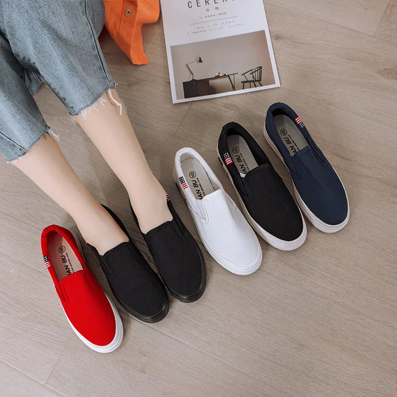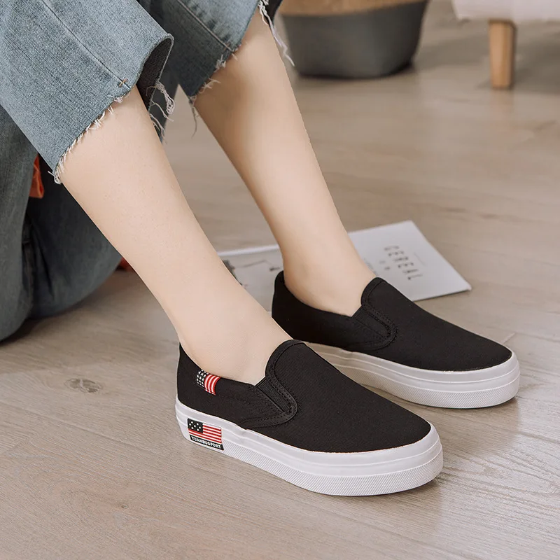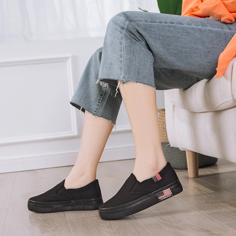Women Slip On Flat Canvas Shoes Checkered Vulcanize Shoes Black White Plaid Female Casual Loafers Ladies Lazy Sneaker
