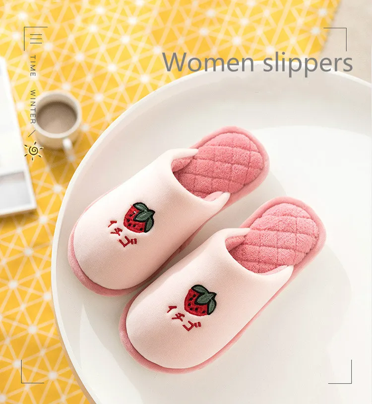 Women Slippers Woman Home Slippers Sweet Fruit Couple Shoes Warm Winter Slippers Man Shoes Zapatos De Mujer Ladies Shoes Pink