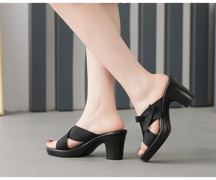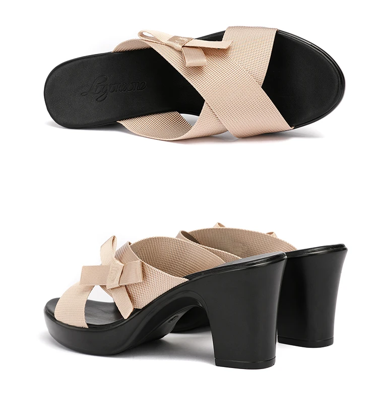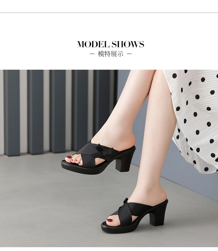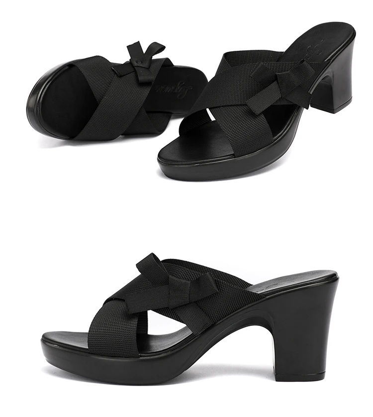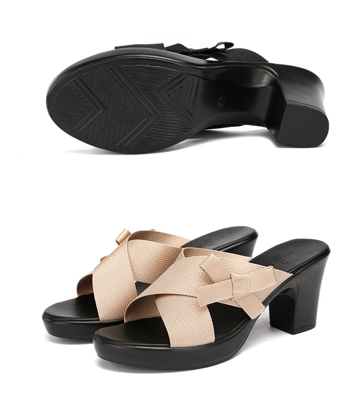Women Summer Slippers Large Size 41 42 Outdoor High Heel Shoes Platform Slide Bowtie Breathable Mother Shoes Female Slippers