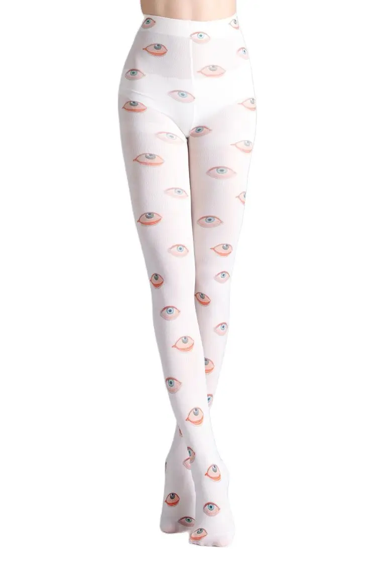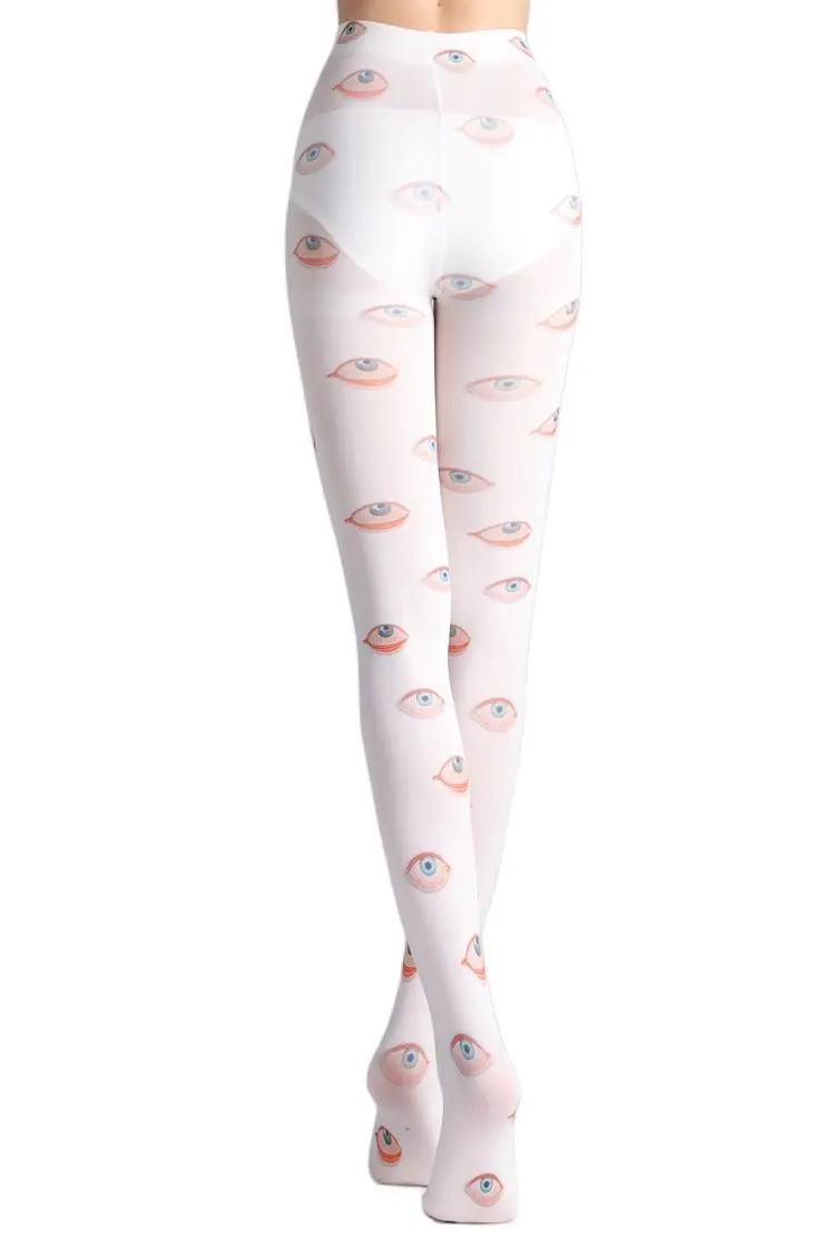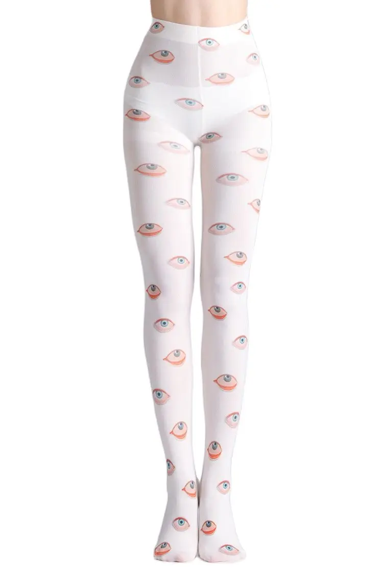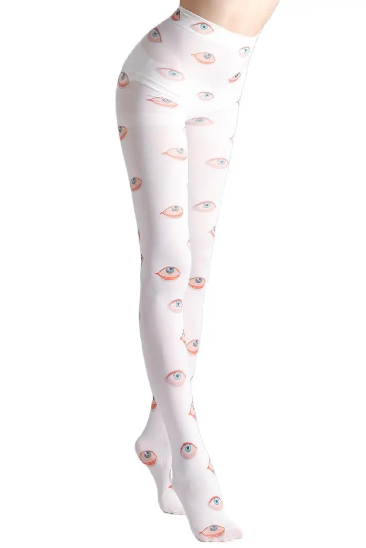 Women Tights with Oil Painting Hand-painted Eye Print Pantyhose Leggings Girls Love Female Lingerie Lolita Stockings Underwear