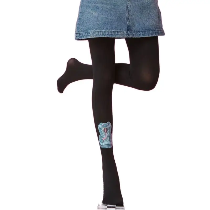 Women Tights with Sex Snake Print Lolita Smooth Heat Tech Super Stretch Pantyhose Leggings for Female Lingerie Women Stockings