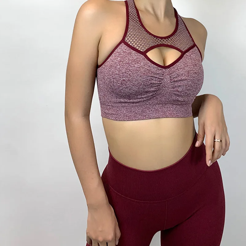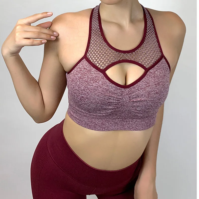 Women Underwear Girl Gather Bra Sexy Mesh Hollow out Breathable Sports Fitness Bra Bust Push up Damping Bra Female Pink Tops