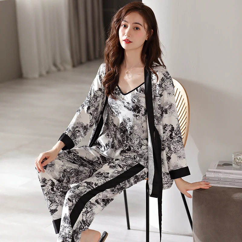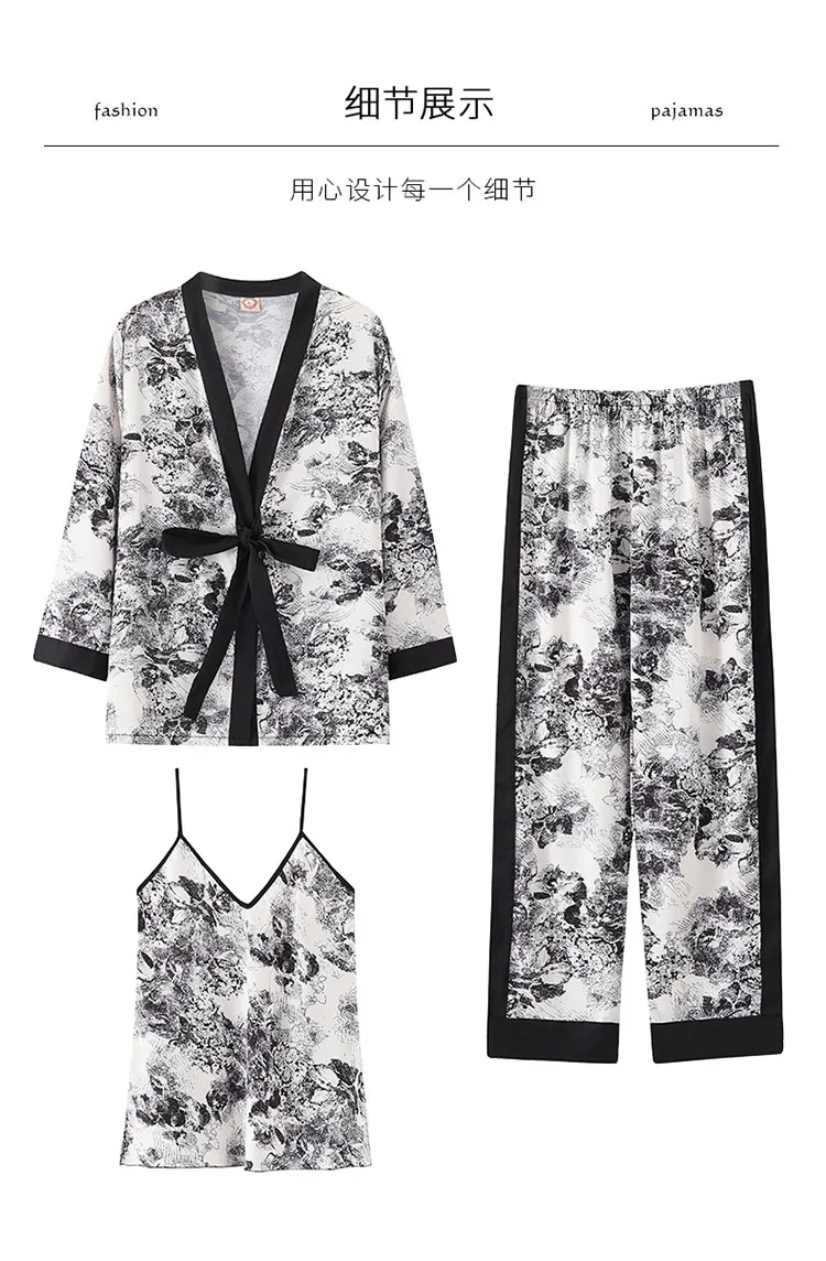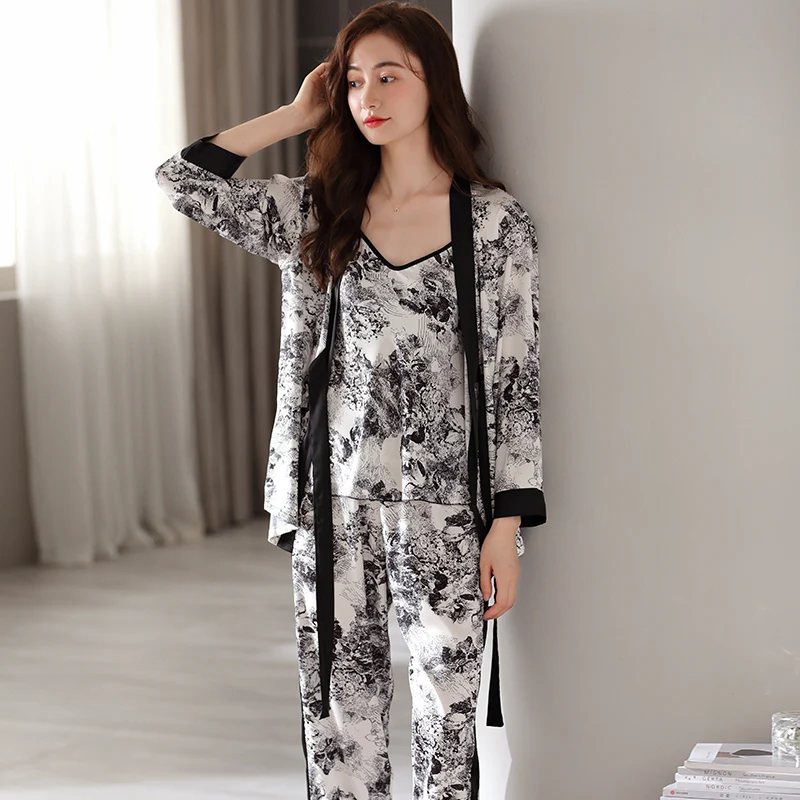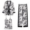 Women’s 3-piece Pijamas Sexy Lingerie Silk Pajamas Set Sleepwear Satin Nightwear Pyjama