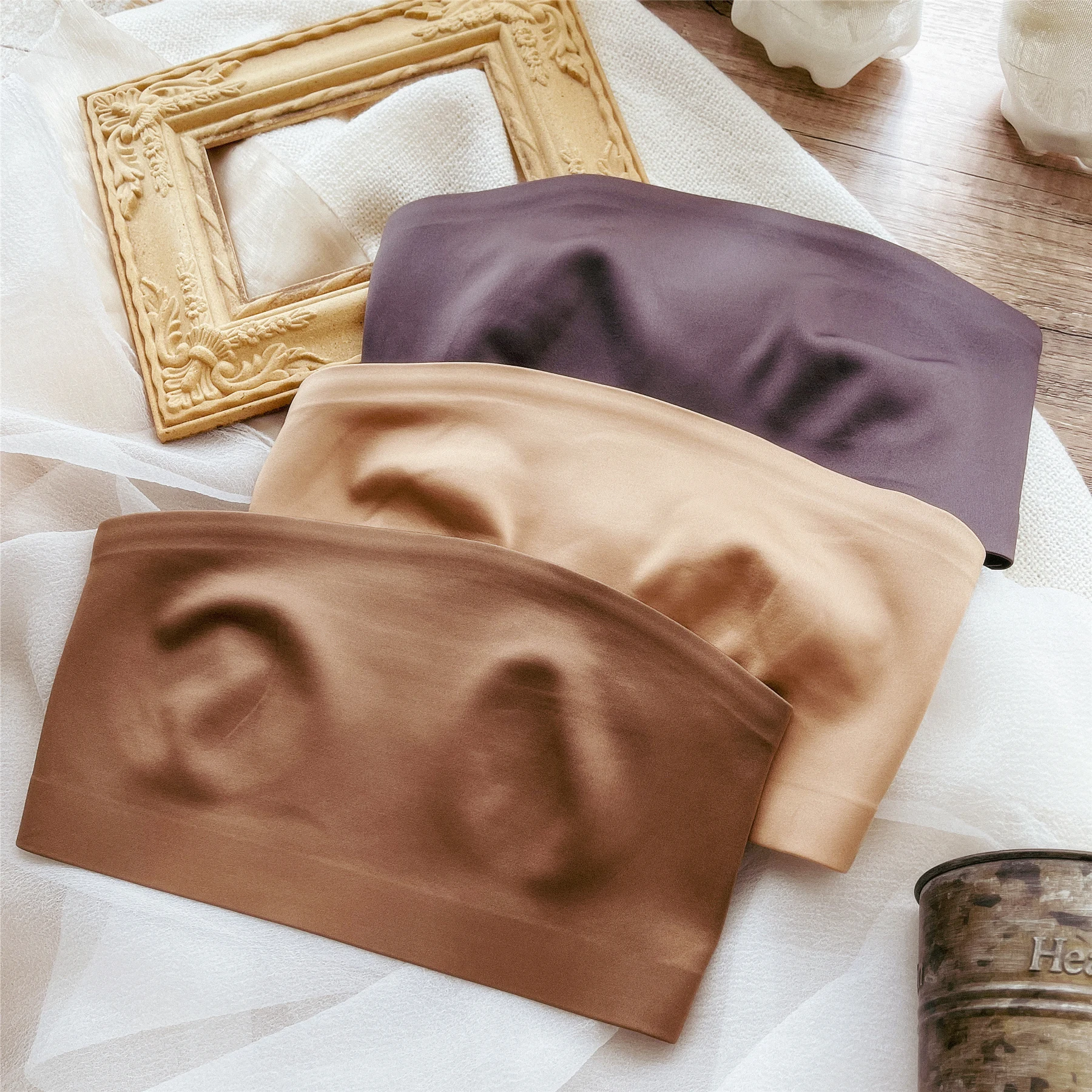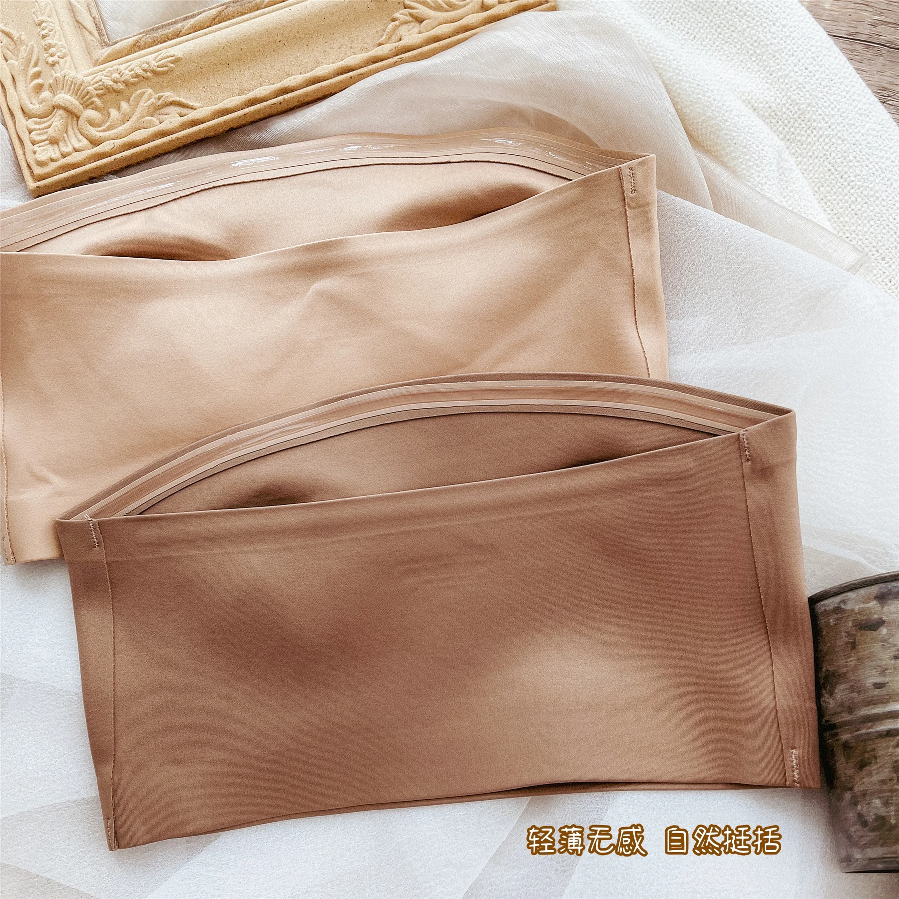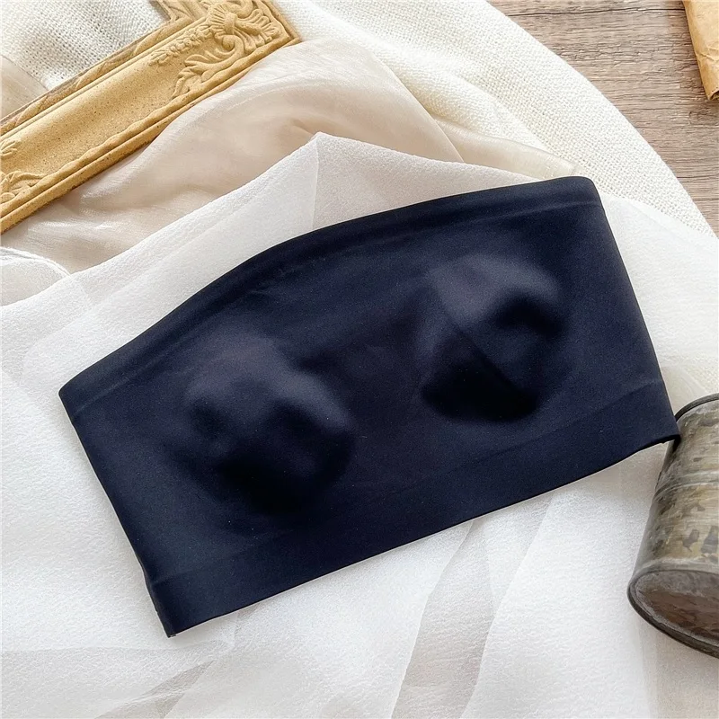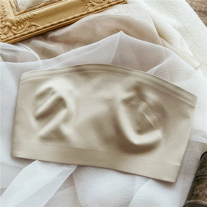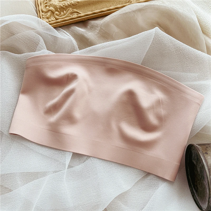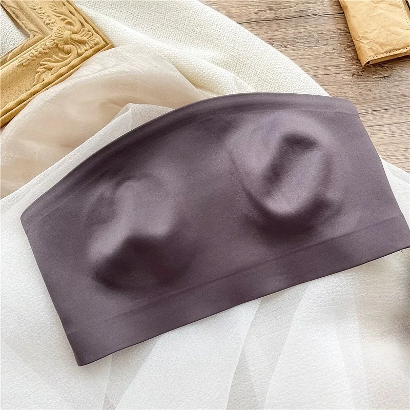 Women’s bra underwear sexy non-marking ice silk ultra-thin top support gathered non-slip lingerie without steel ring bralette