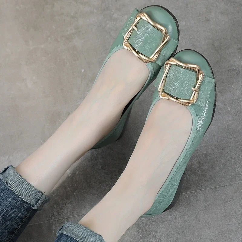Women’s Female Ladies Mother Woman soft sole Flats moccasin Shoes Loafers Genuine Leather Slip On Summer Round Toe Size 35-41