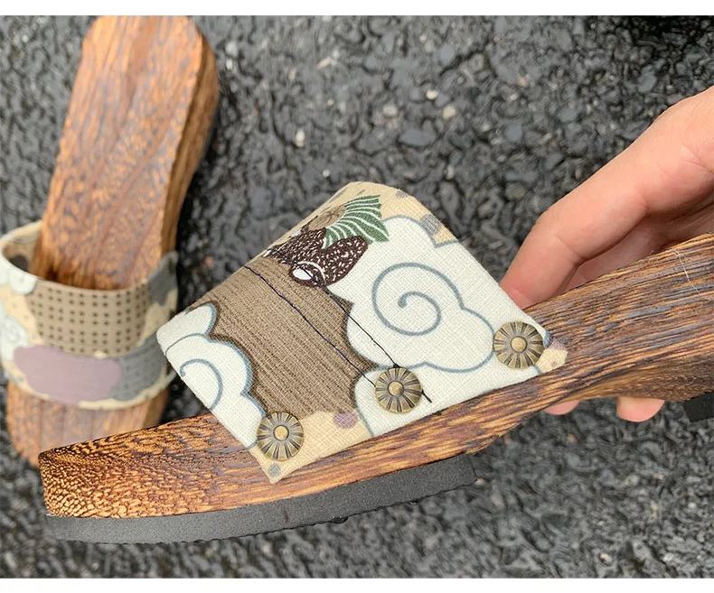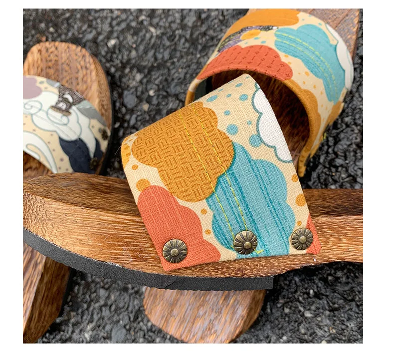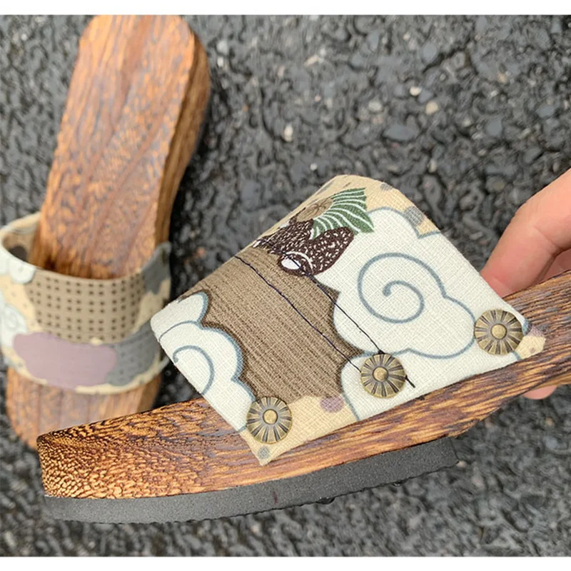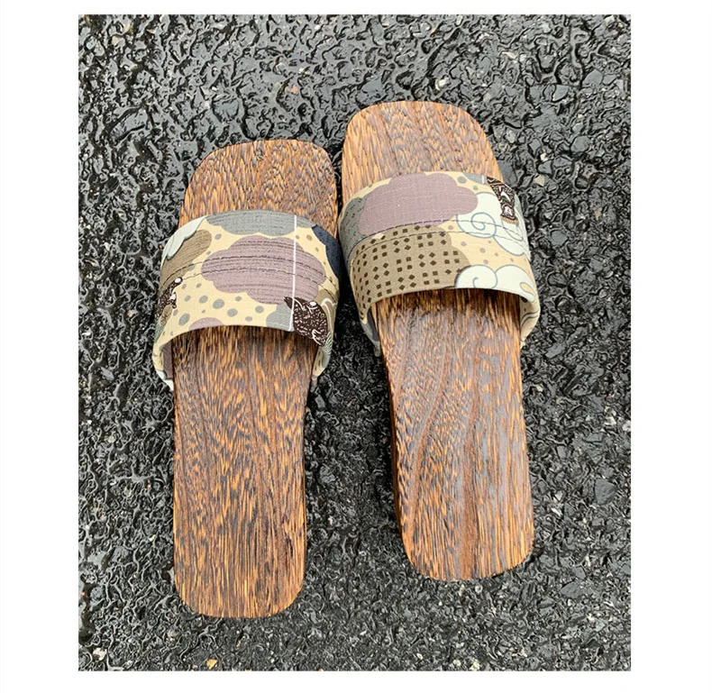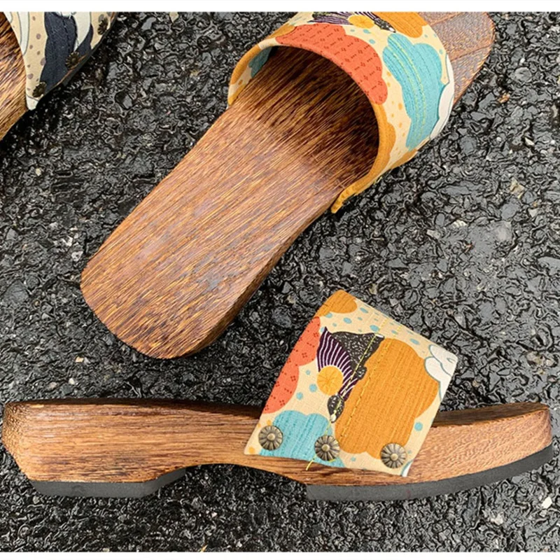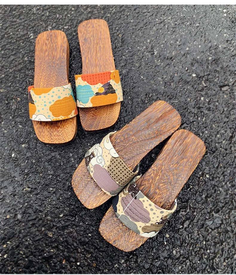 Women’s Japan Style Wooden Sandals Med Heel Anti Skip Summer Casual Slippers Outdoor Fashion Slippers Beach Slippers
