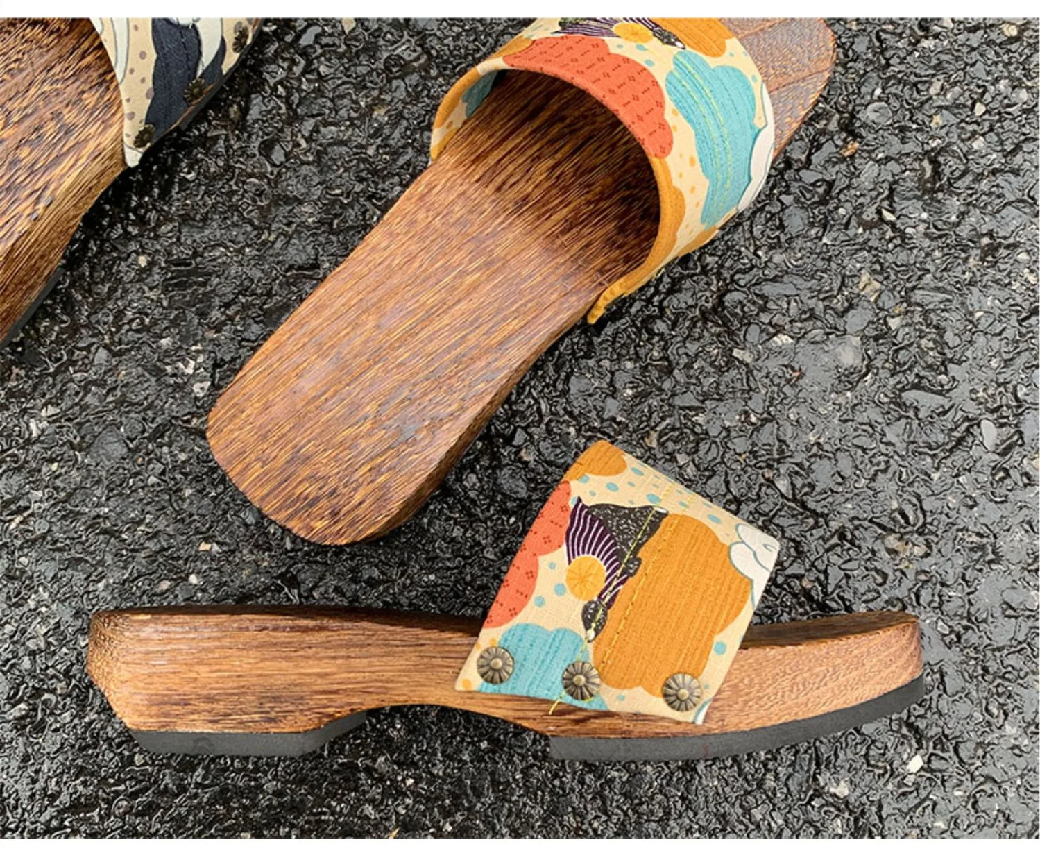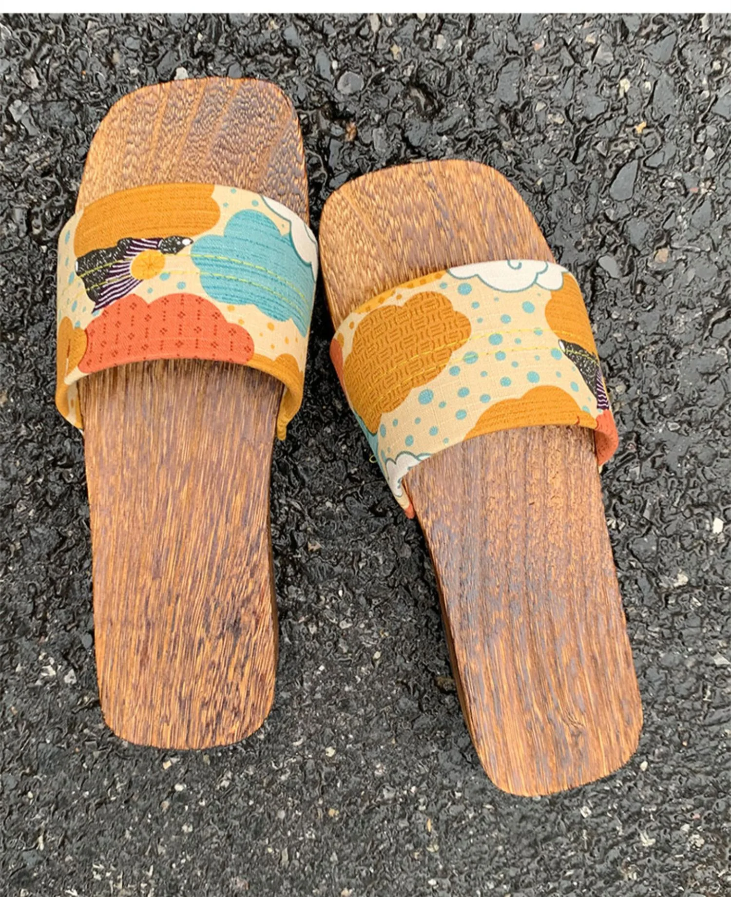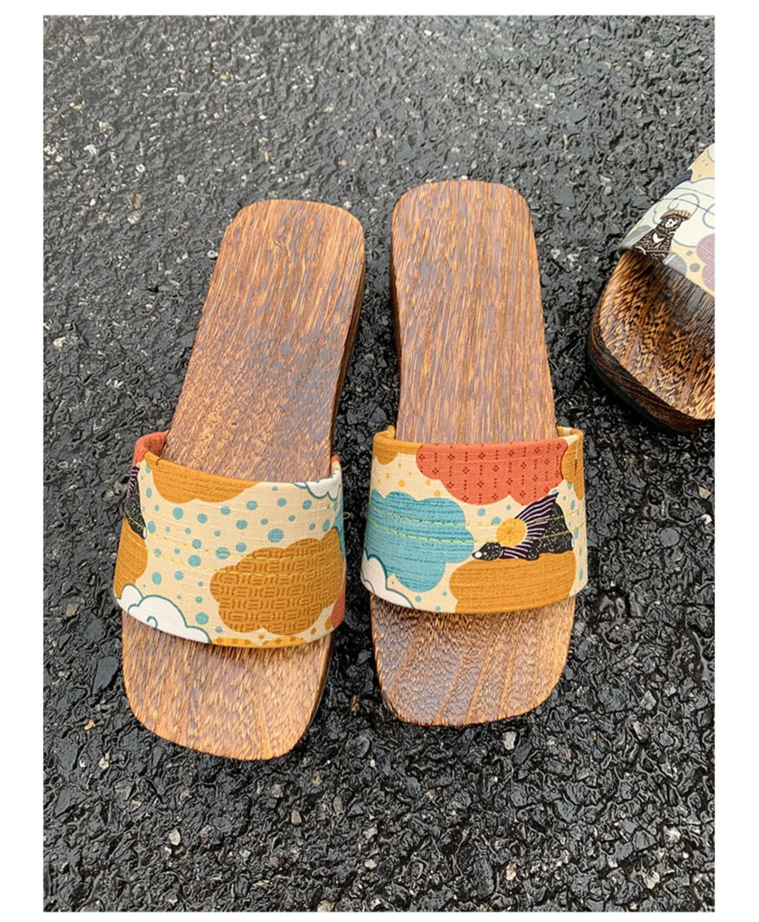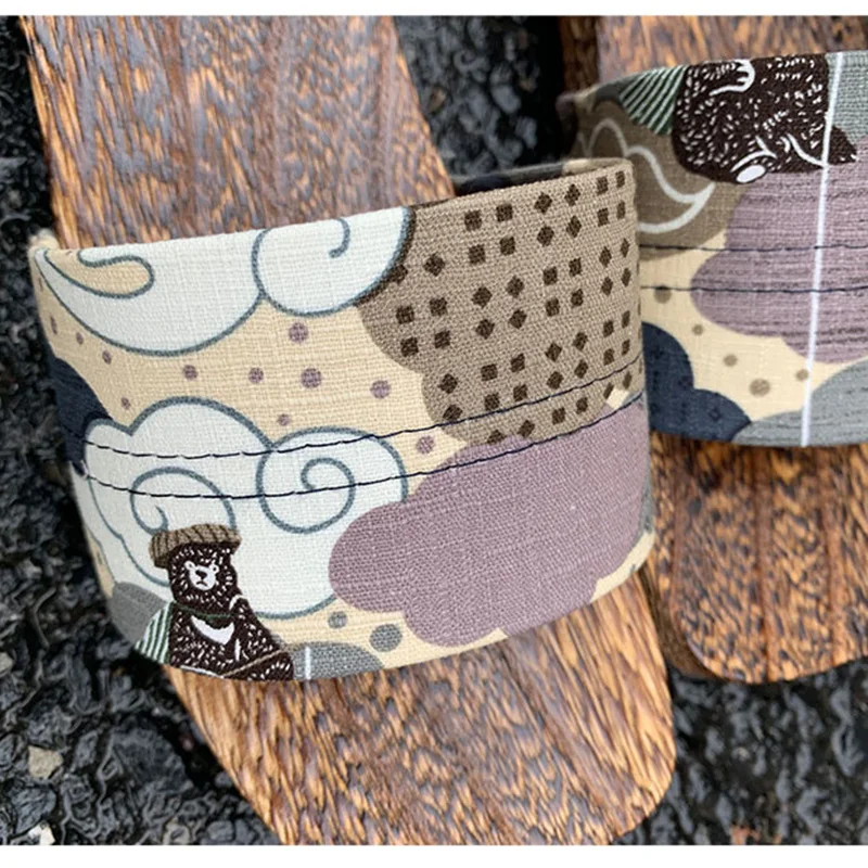 Women’s Japan Style Wooden Sandals Med Heel Anti Skip Summer Casual Slippers Outdoor Fashion Slippers Beach Slippers