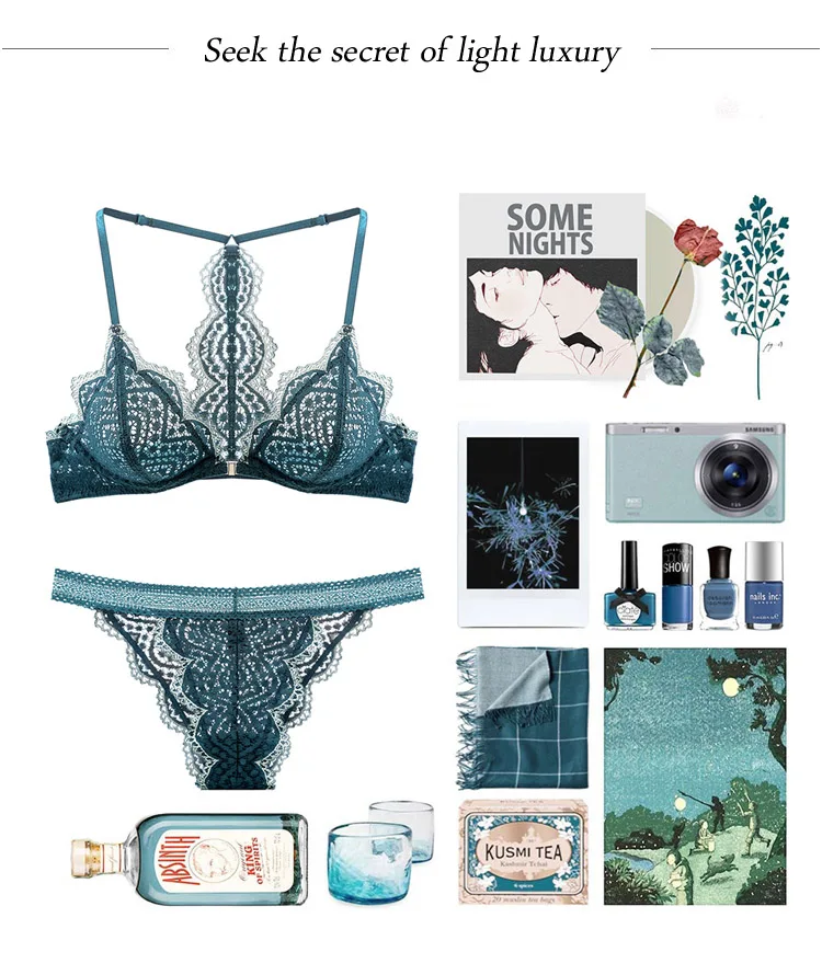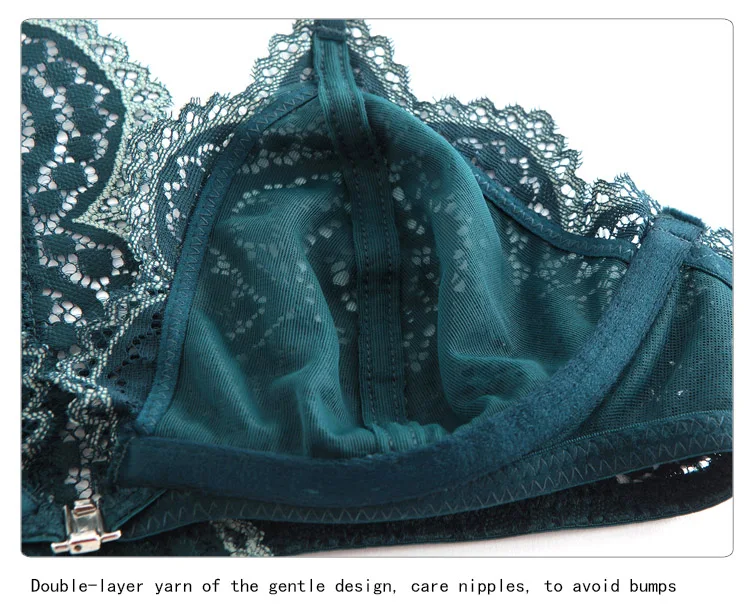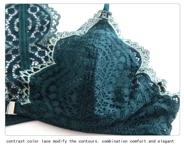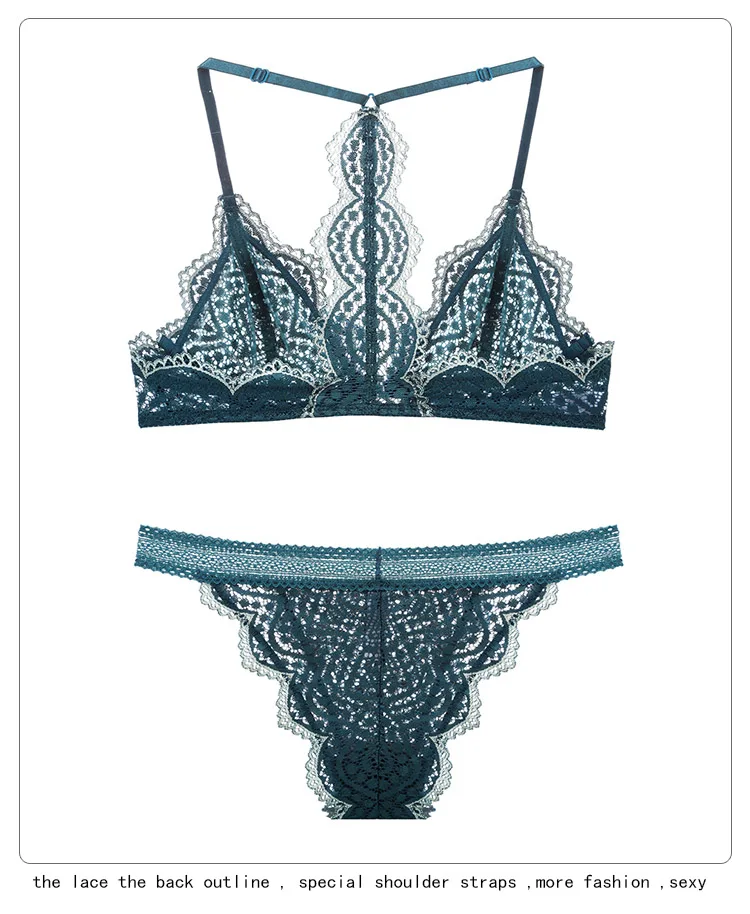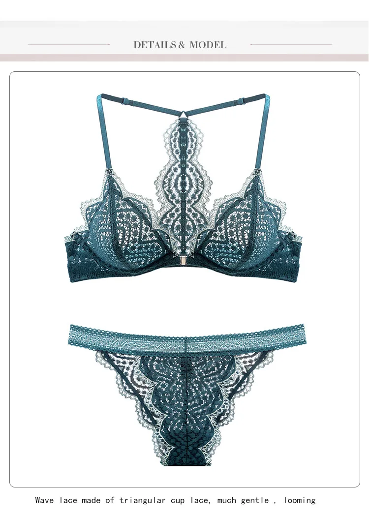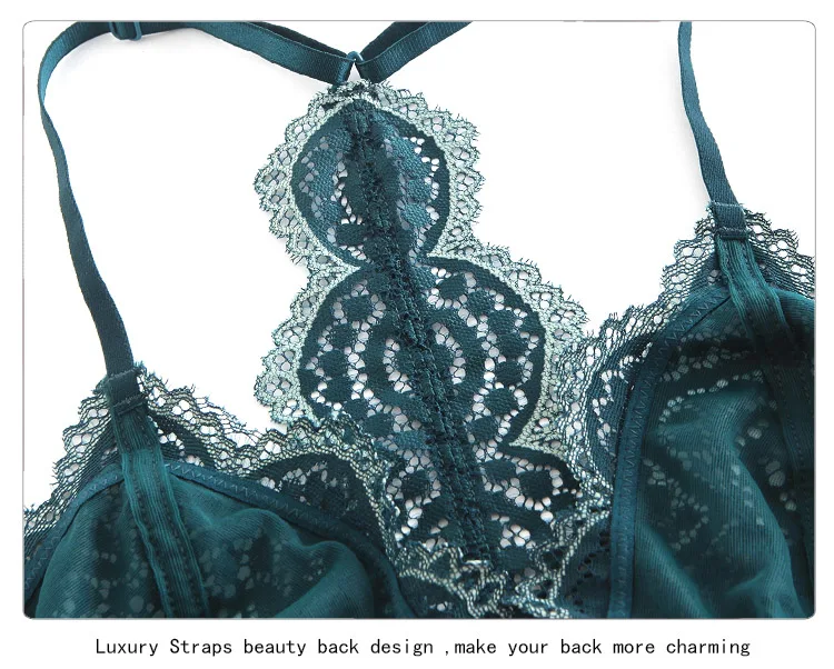 Women’s Lace Unpadded Beauty Back Green Bralette Underwear Set 2020 Fashion Thin Transparent Lingeries Plunge Bra Set 70-85ABC