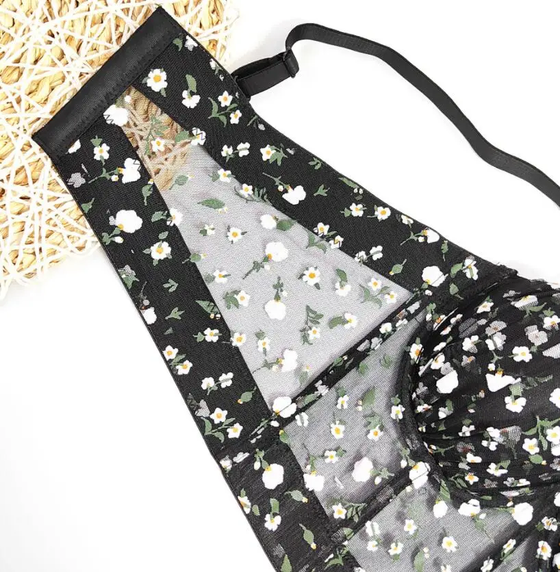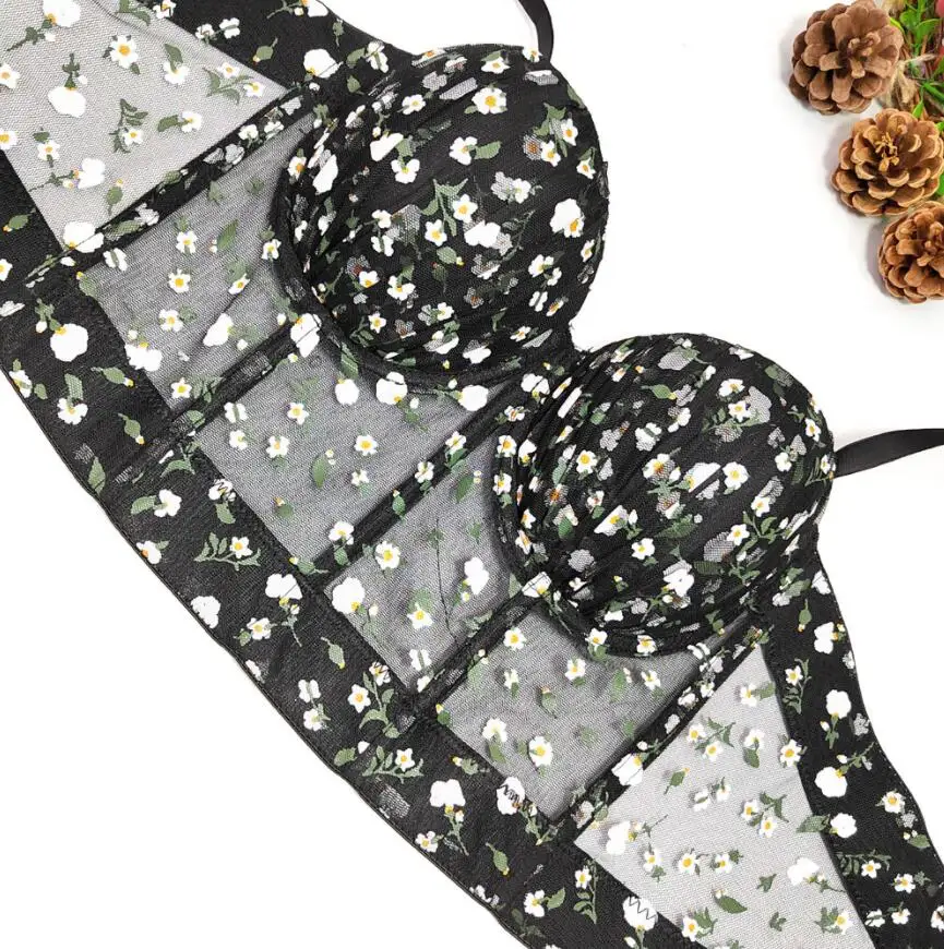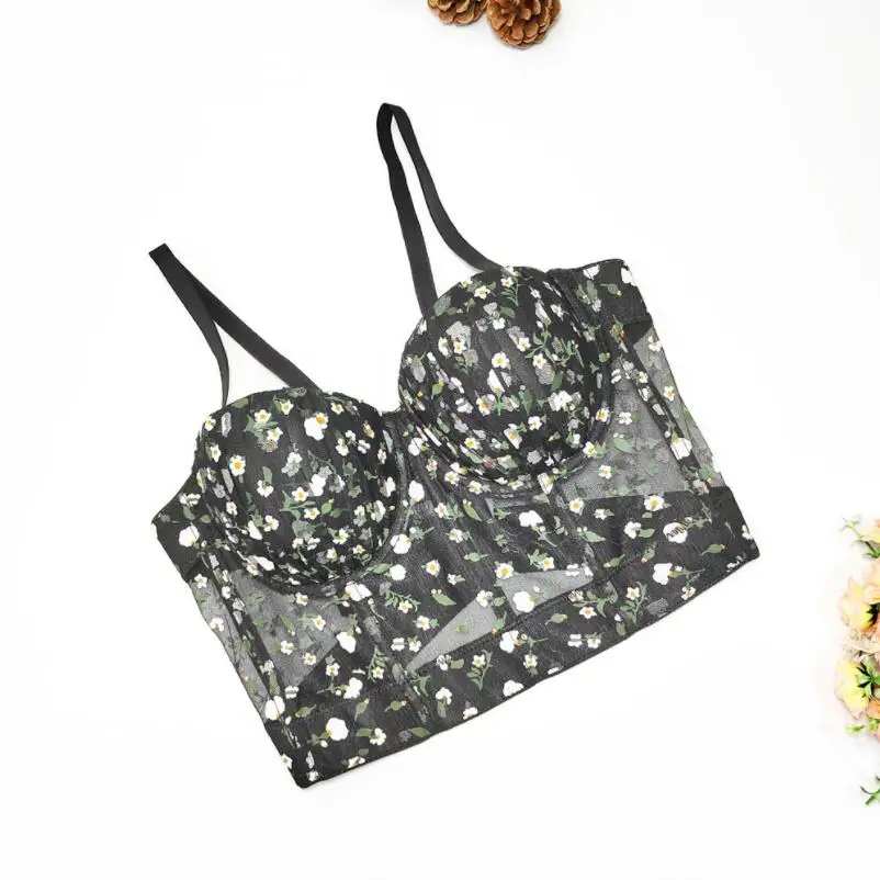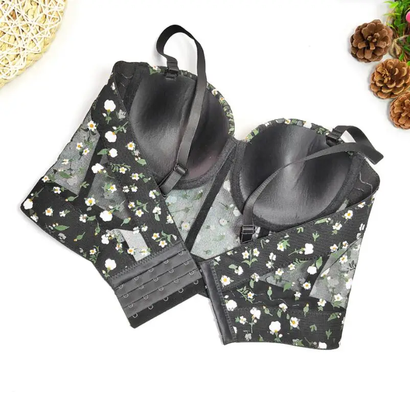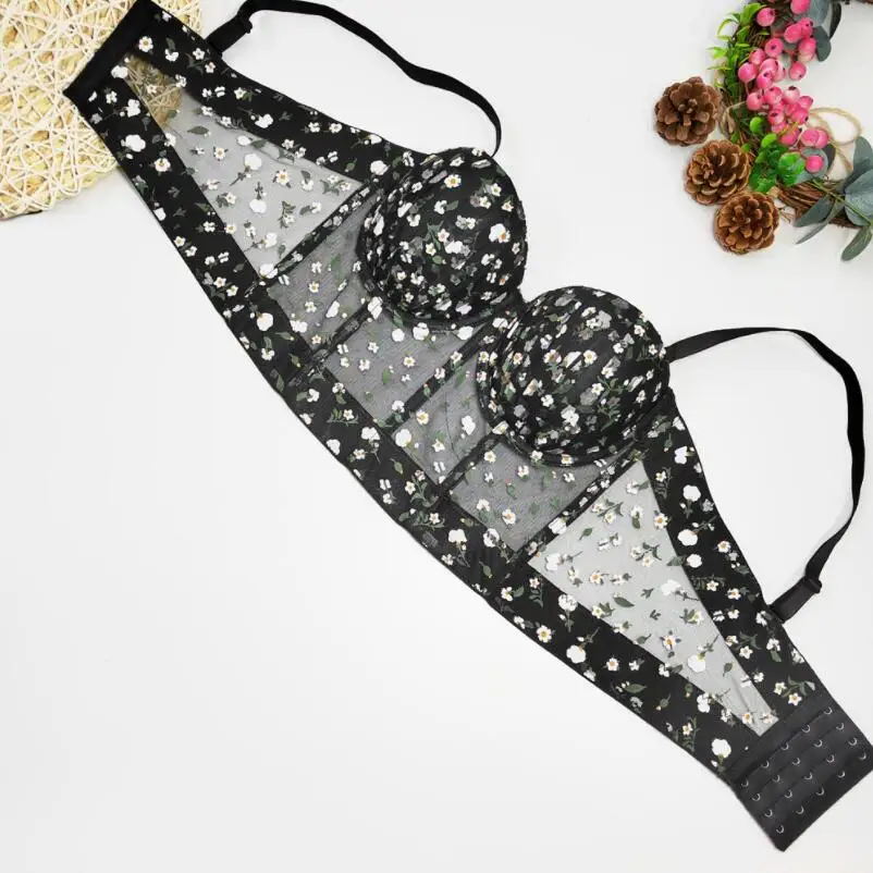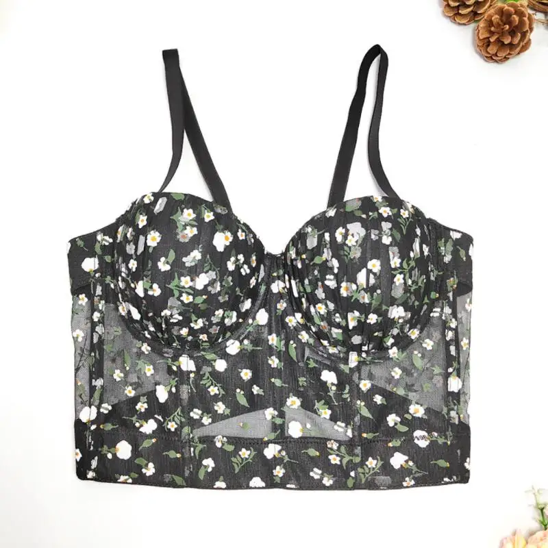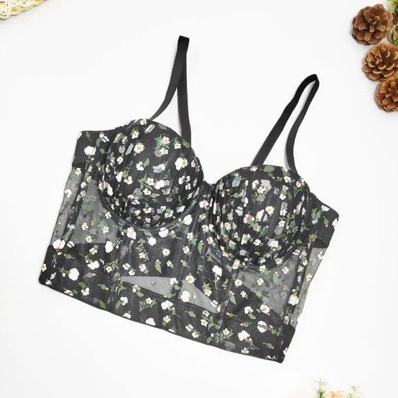 Women’s Mesh Printing Bra 2022 Applique Cropped Top Sexy Backless Slim Tank Tops Nightclub Party Corset p526