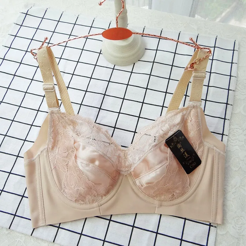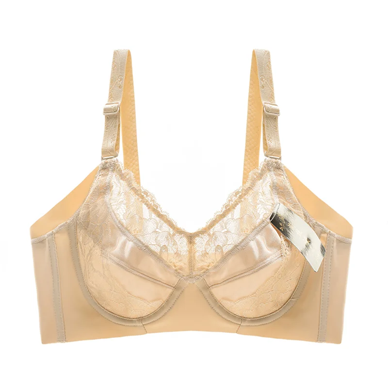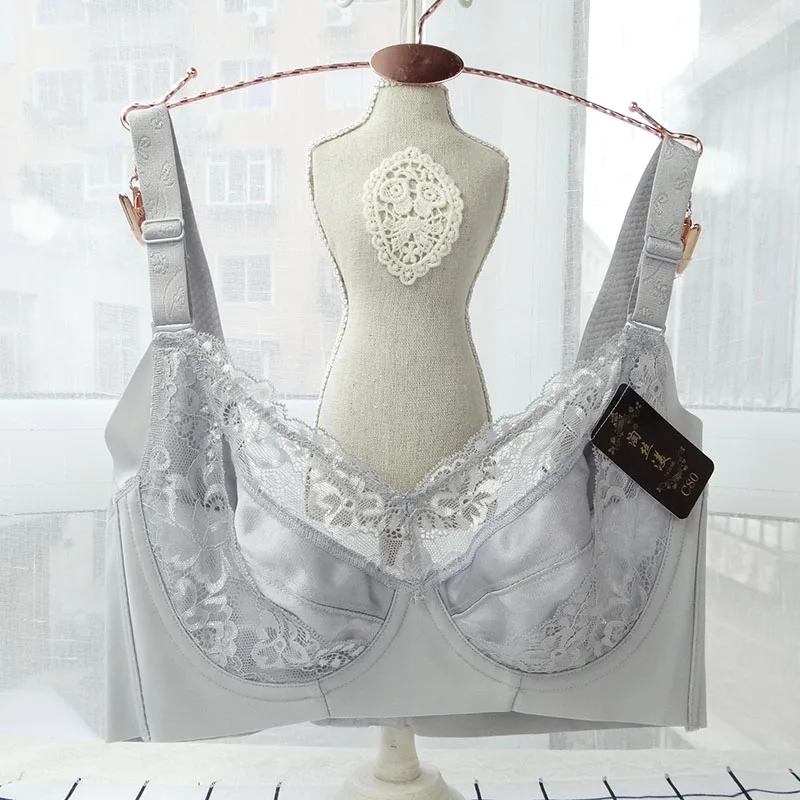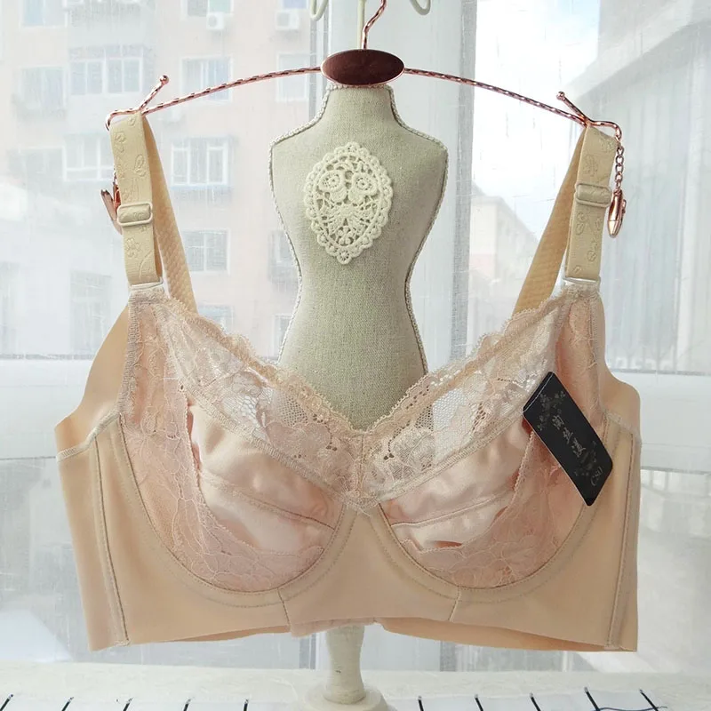 Women’s Plus Size Underwear Full Coverage Non Padded Lace Underwire Silky Minimizer Bra Female Lingerie Mujer Size B C D E F Cup