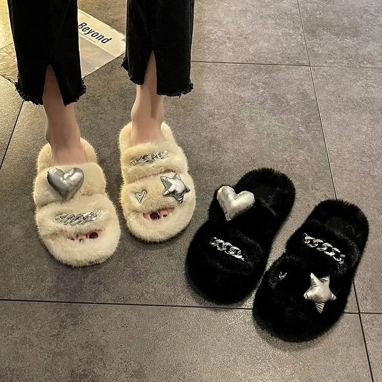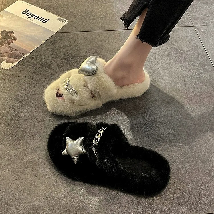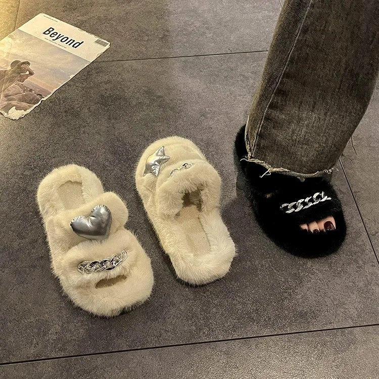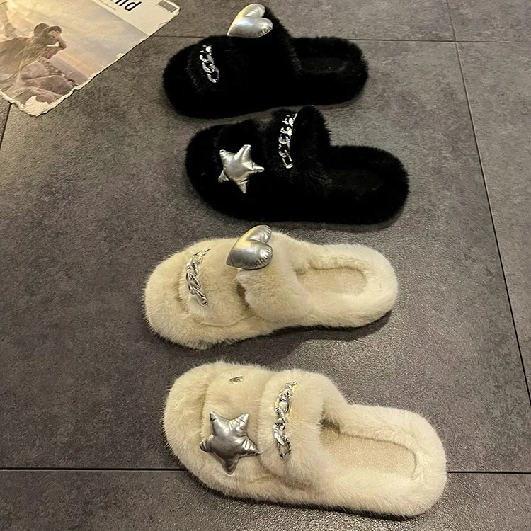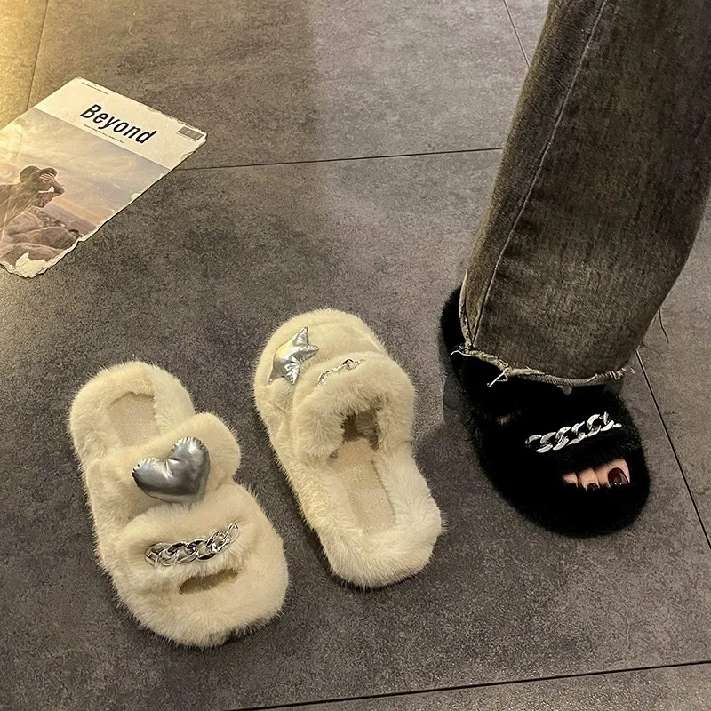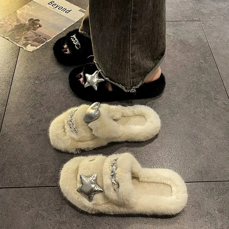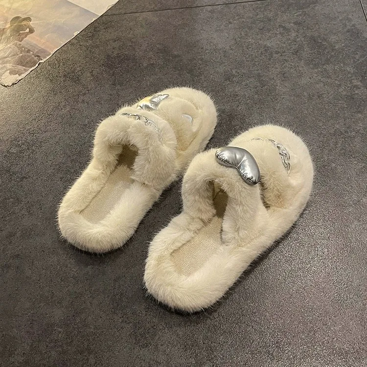 Women’s plush slippers: 2023 autumn and winter new ins niche design, internet red, high appearance, one line cotton slipper