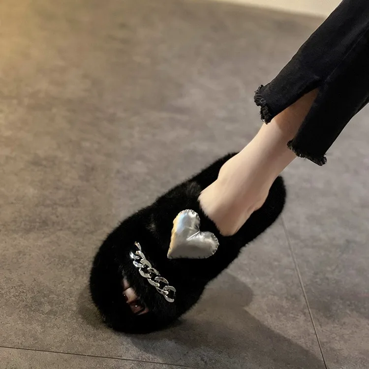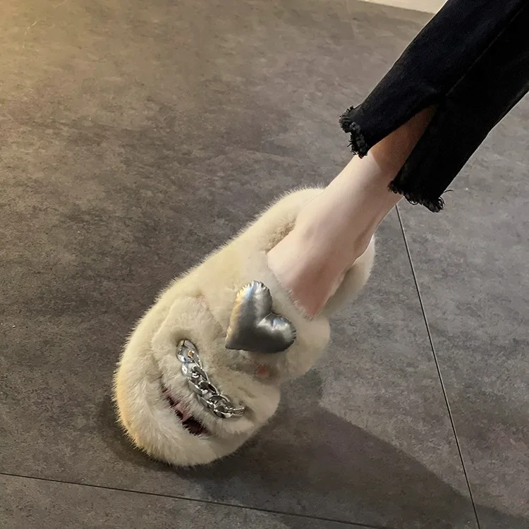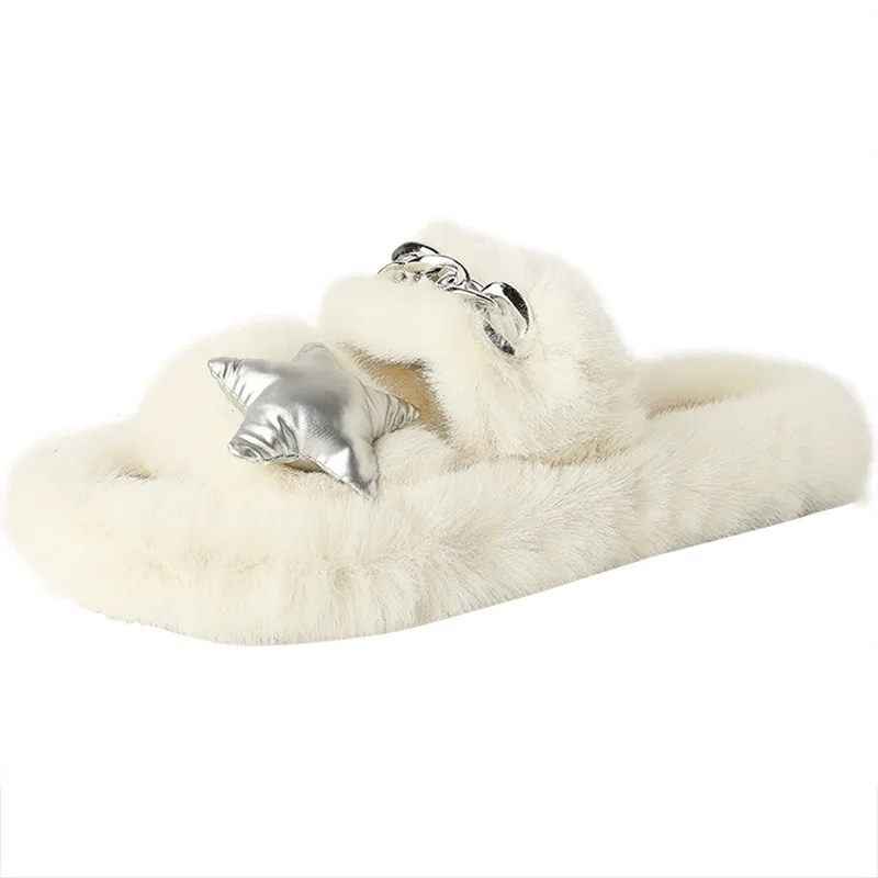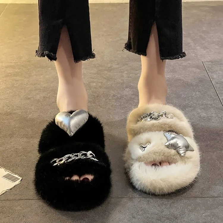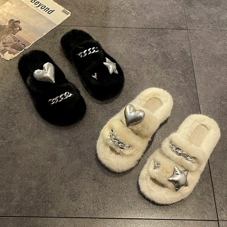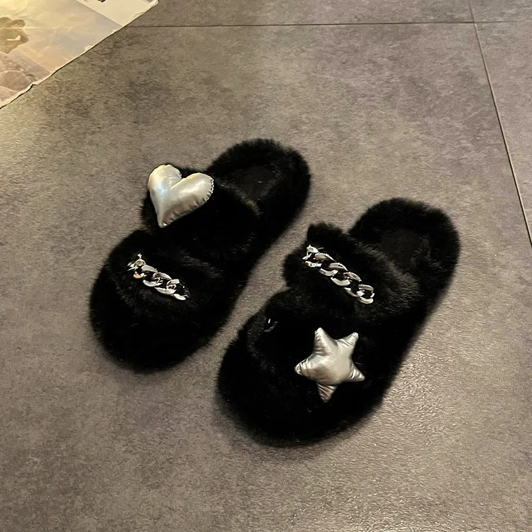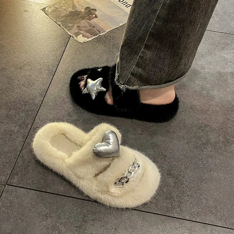 Women’s plush slippers: 2023 autumn and winter new ins niche design, internet red, high appearance, one line cotton slipper
