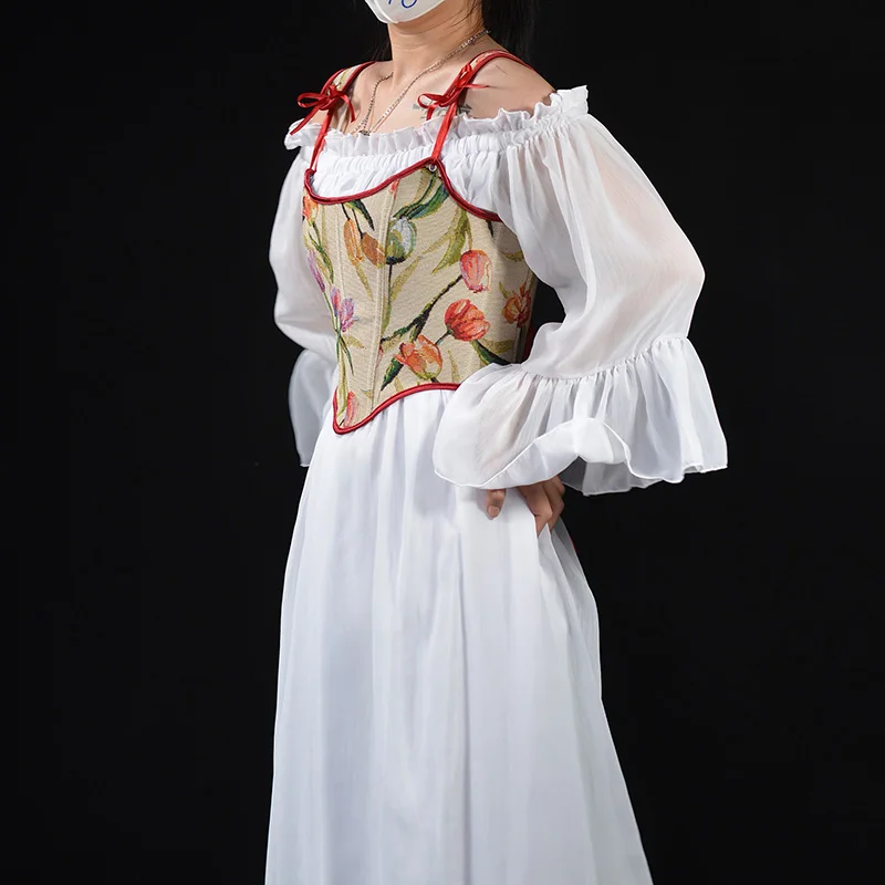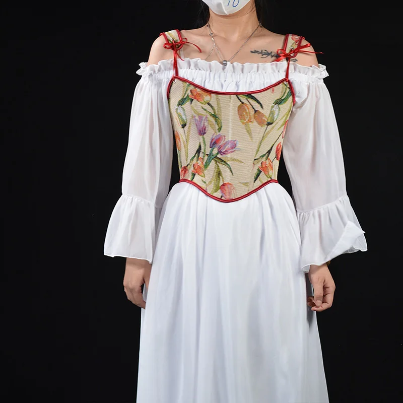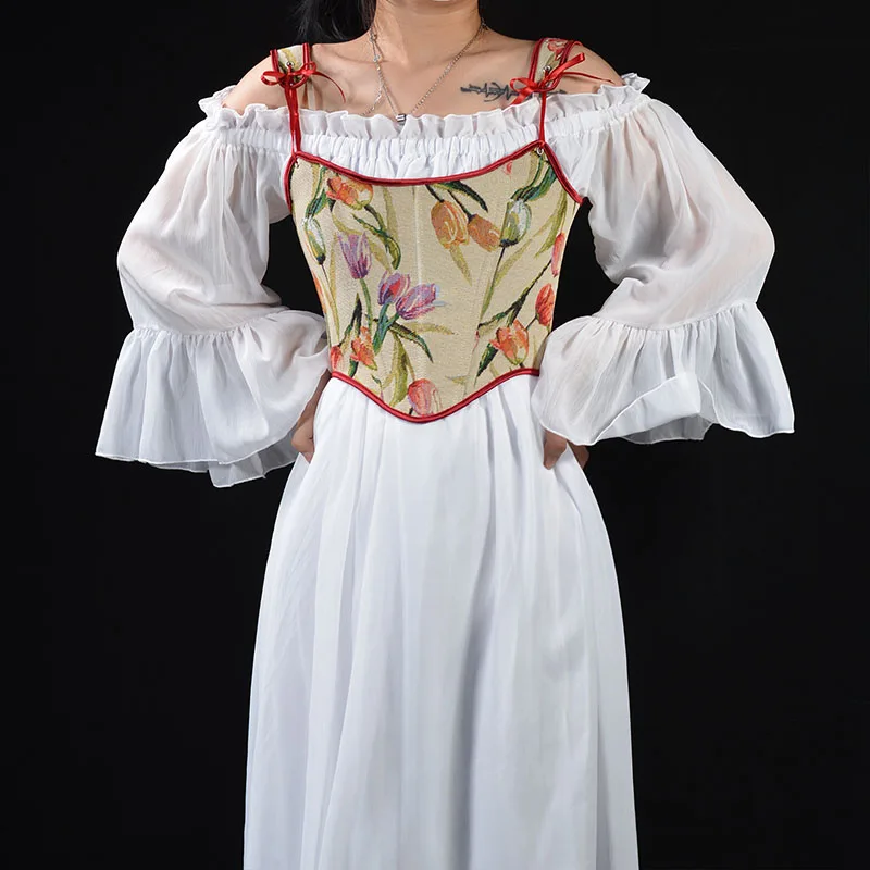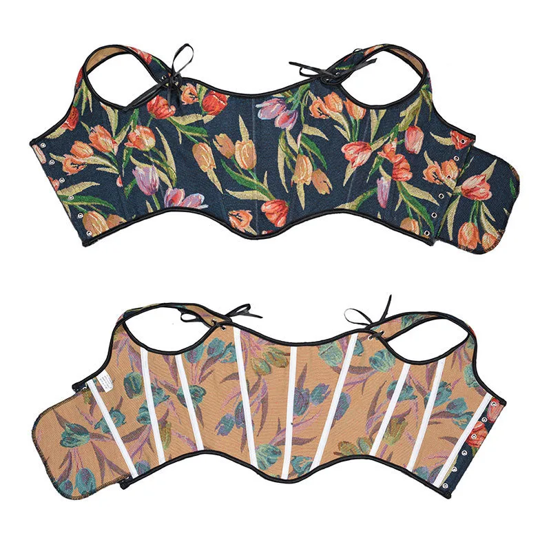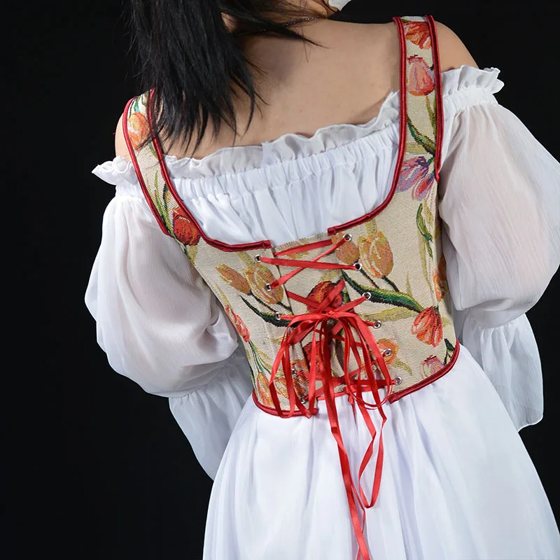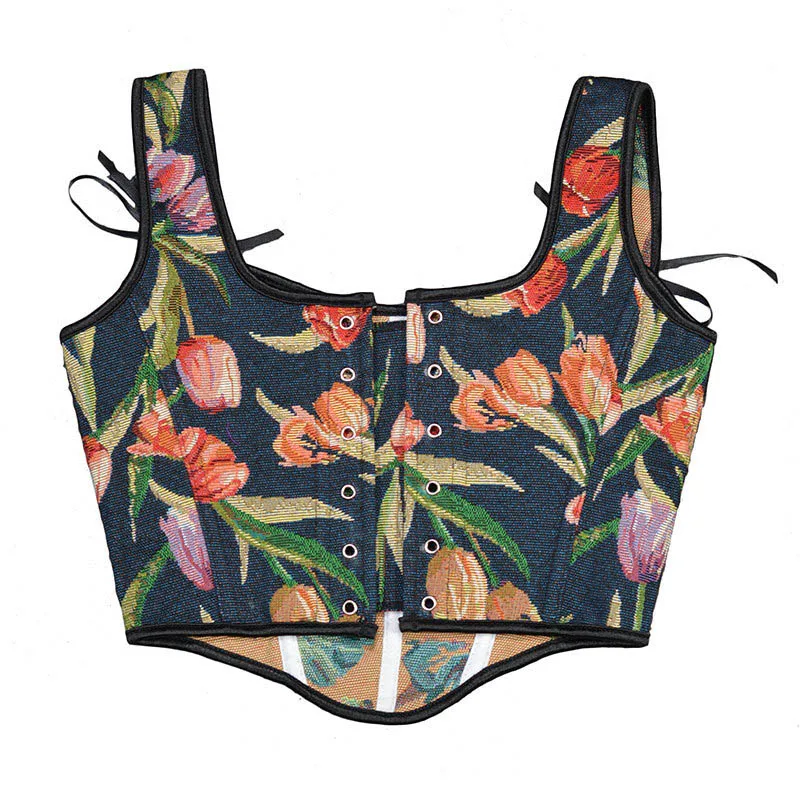 Womens Sexy Floral Print Lace-up Tops Vintage Jacquard Tank Top Camisole Y2k Decorative Bodice