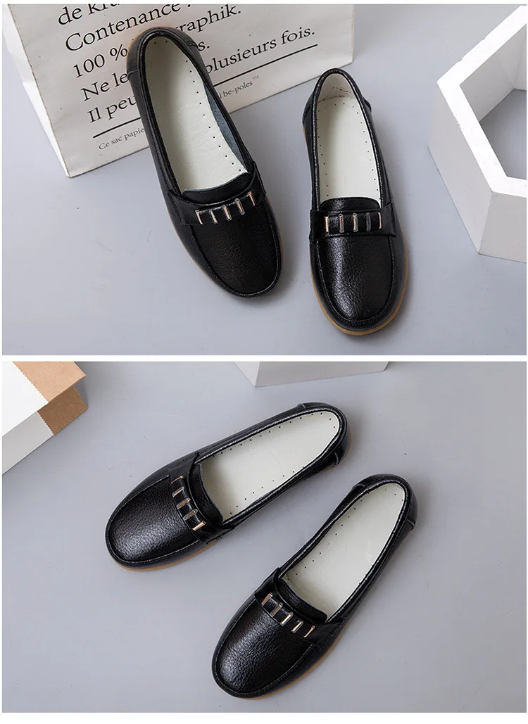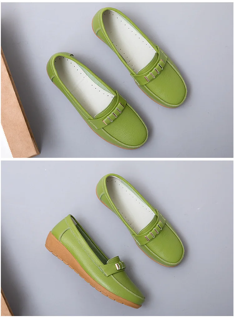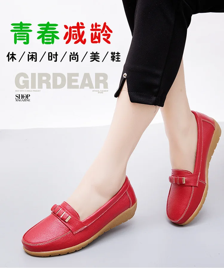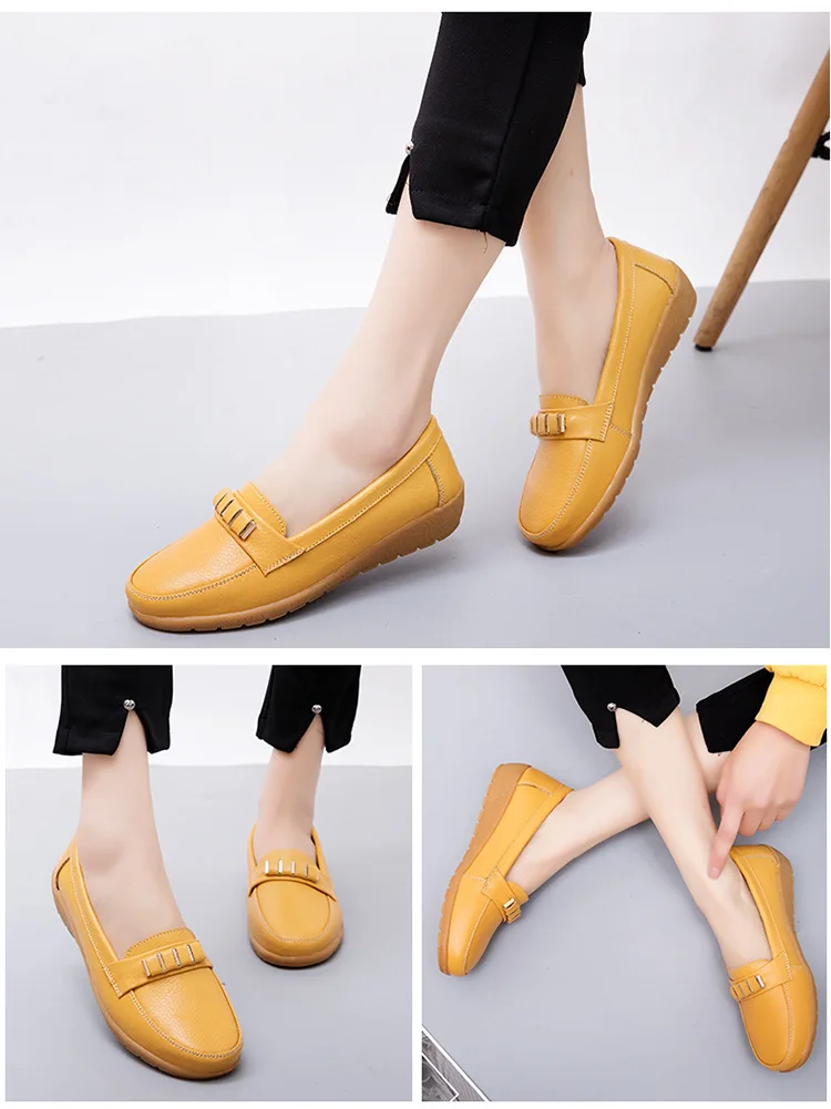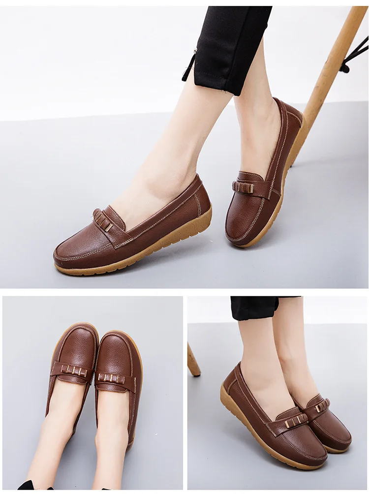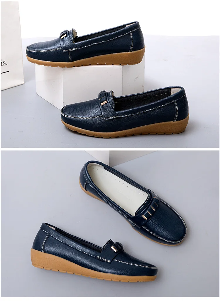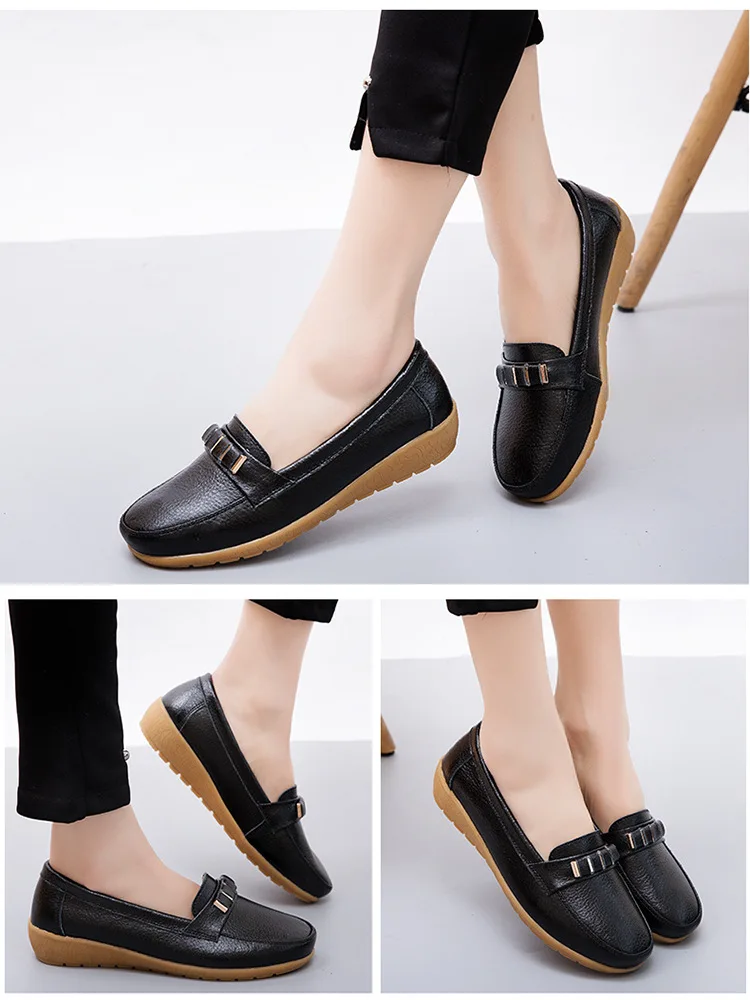 Women’s shoes Spring 2021 leather shoes for middle-aged elderly mother shoes for women single beans with soft soles wedge heel