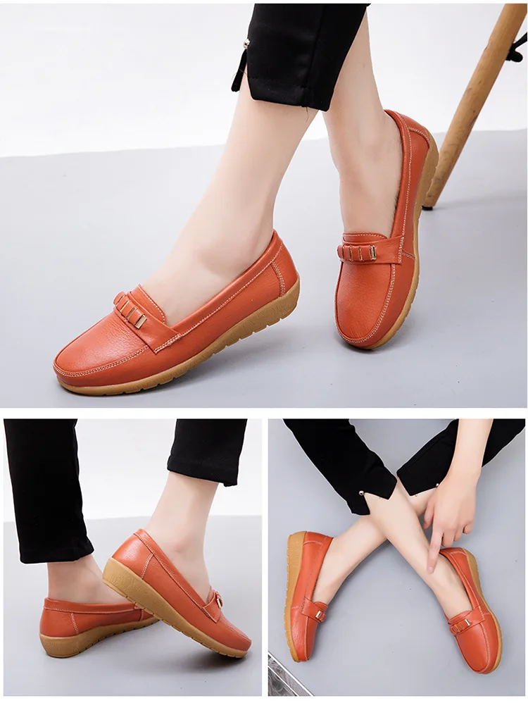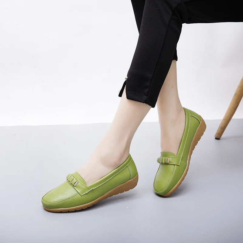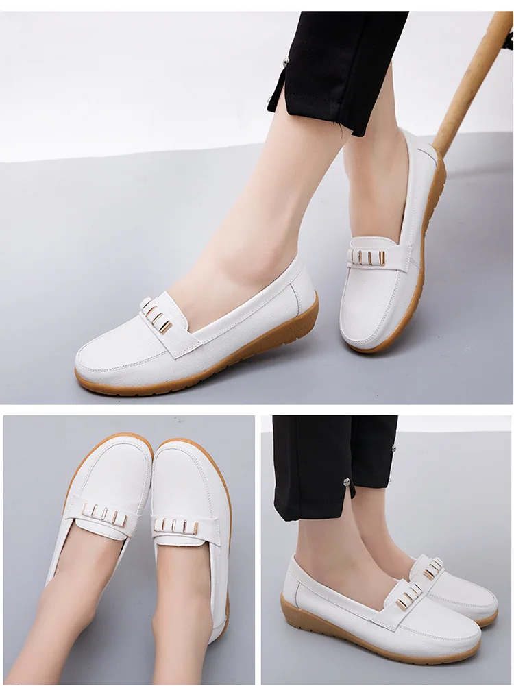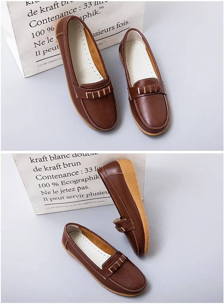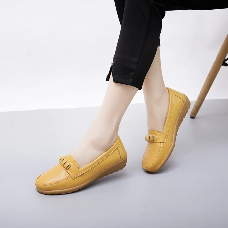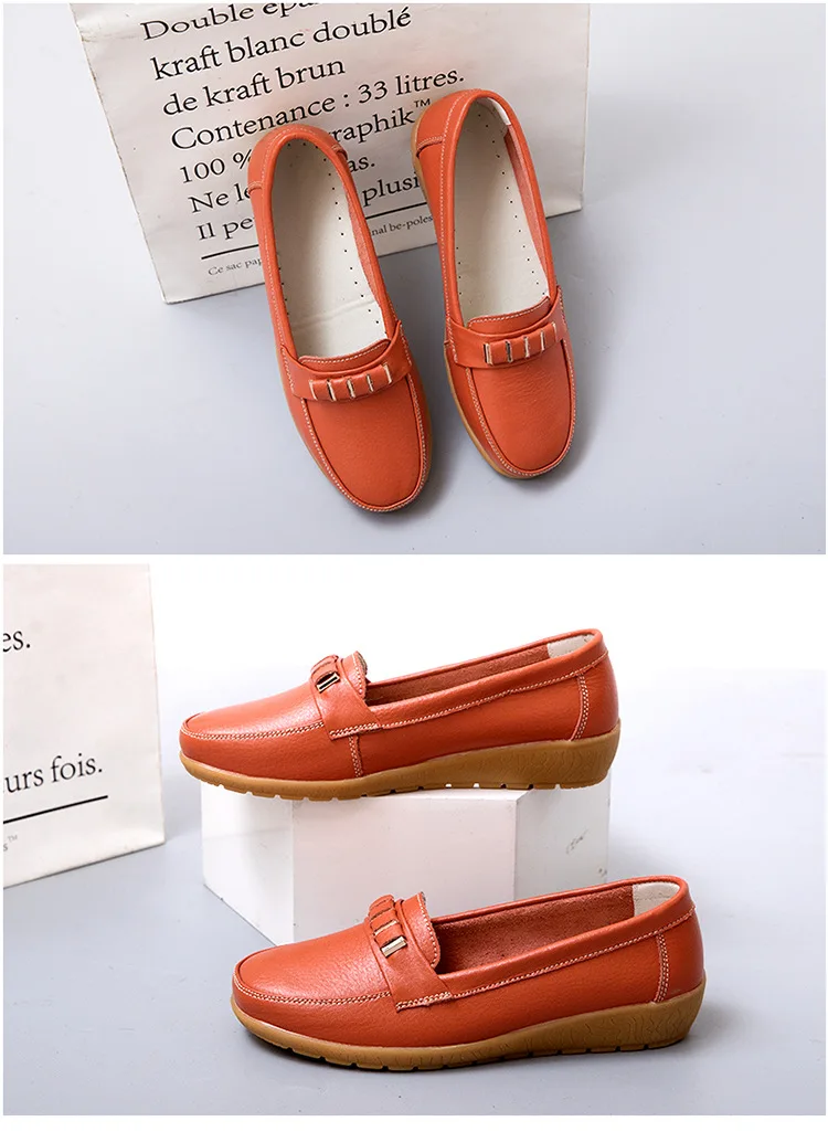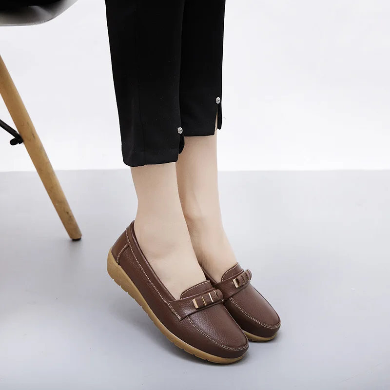 Women’s shoes Spring 2021 leather shoes for middle-aged elderly mother shoes for women single beans with soft soles wedge heel