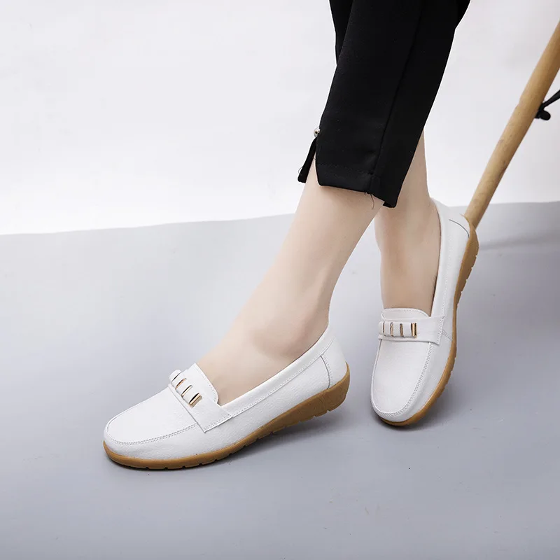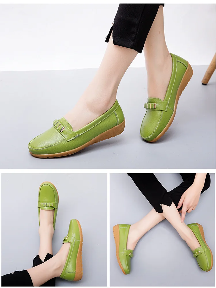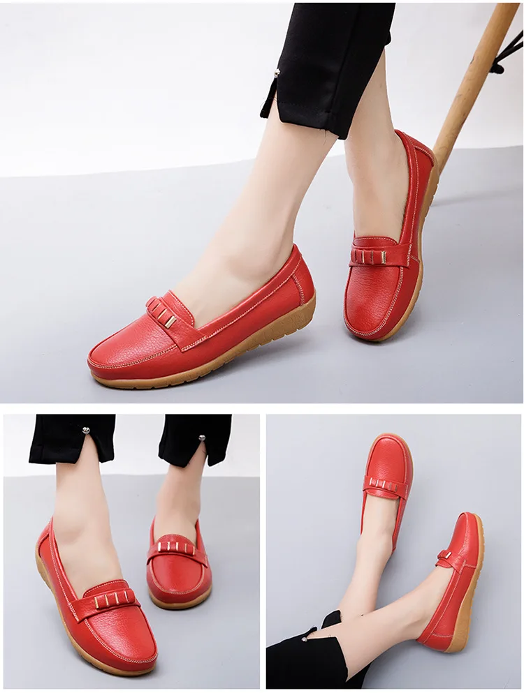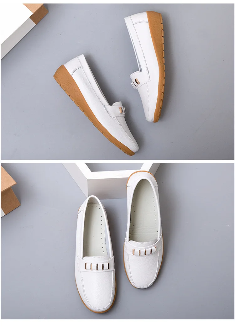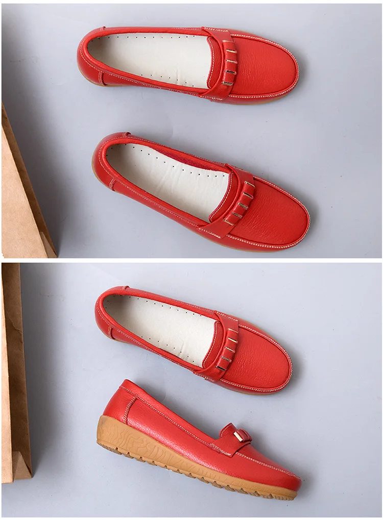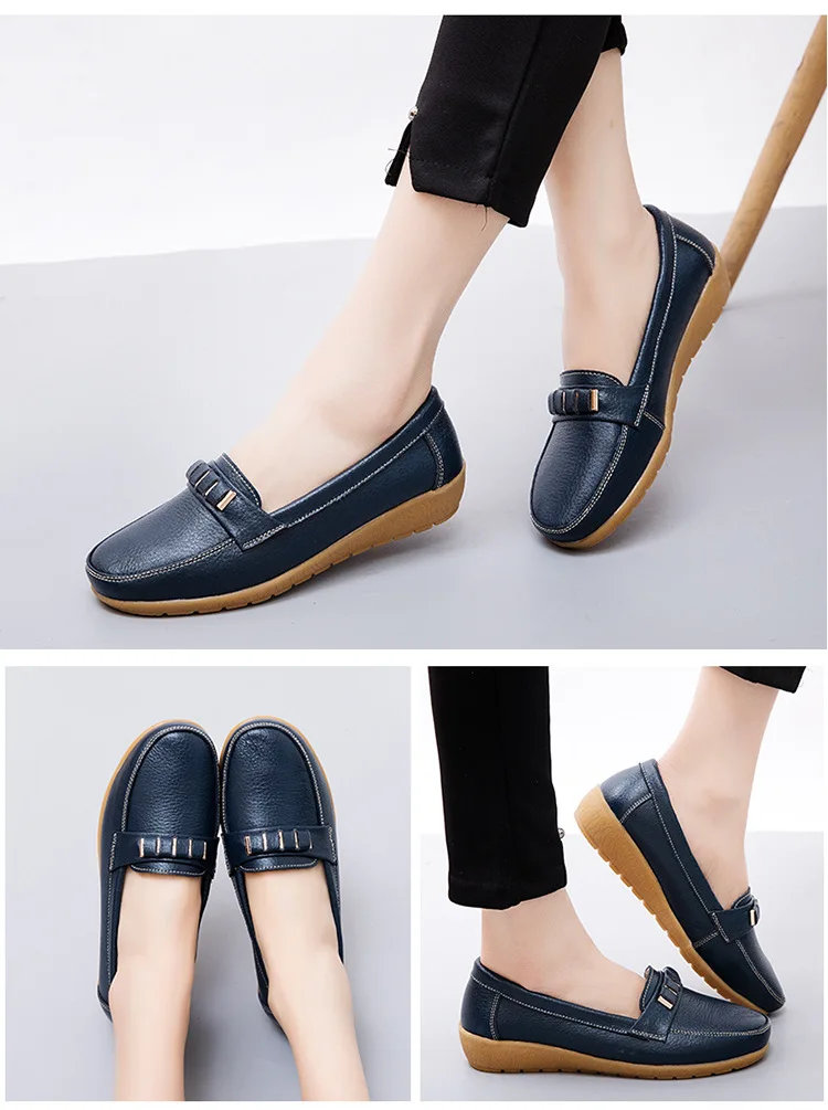 Women’s shoes Spring 2021 leather shoes for middle-aged elderly mother shoes for women single beans with soft soles wedge heel