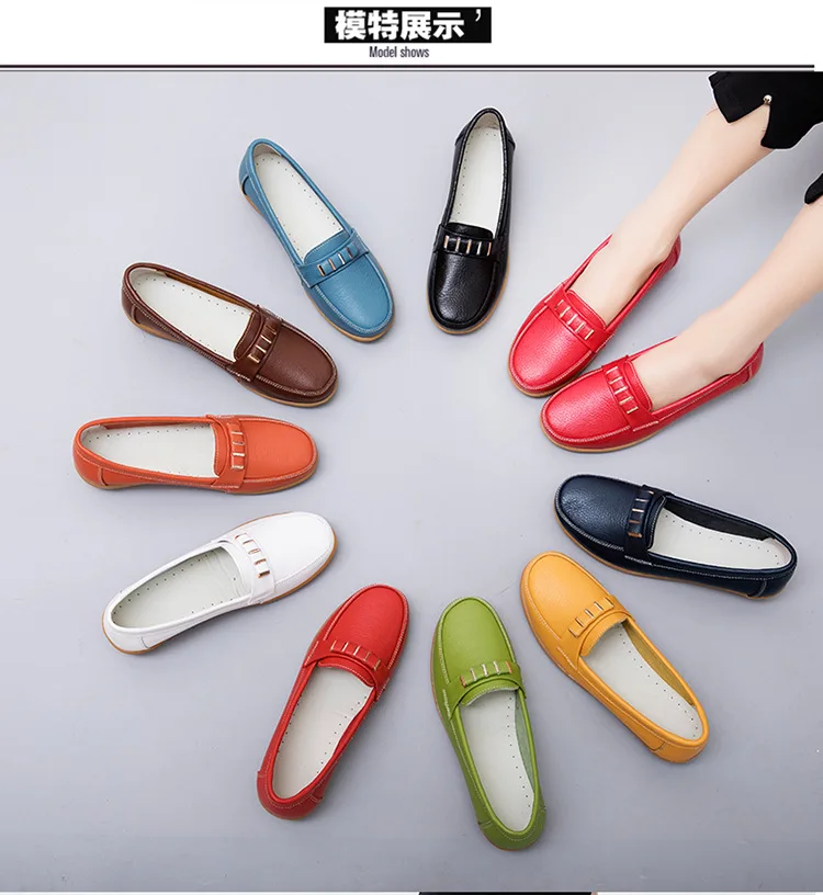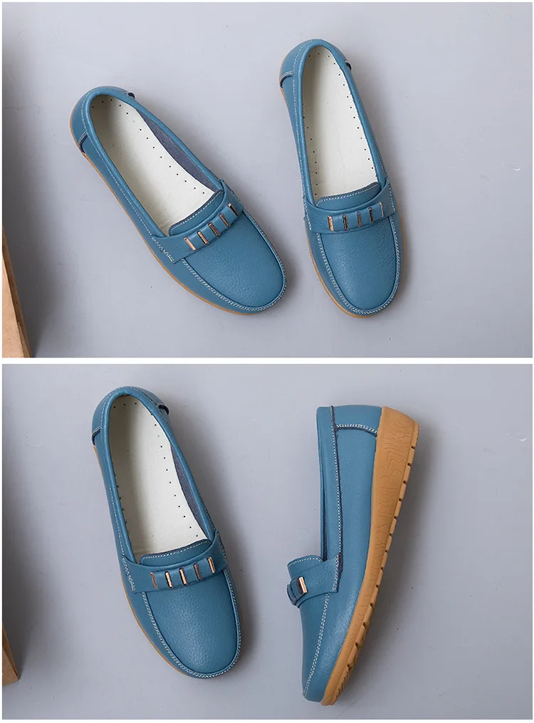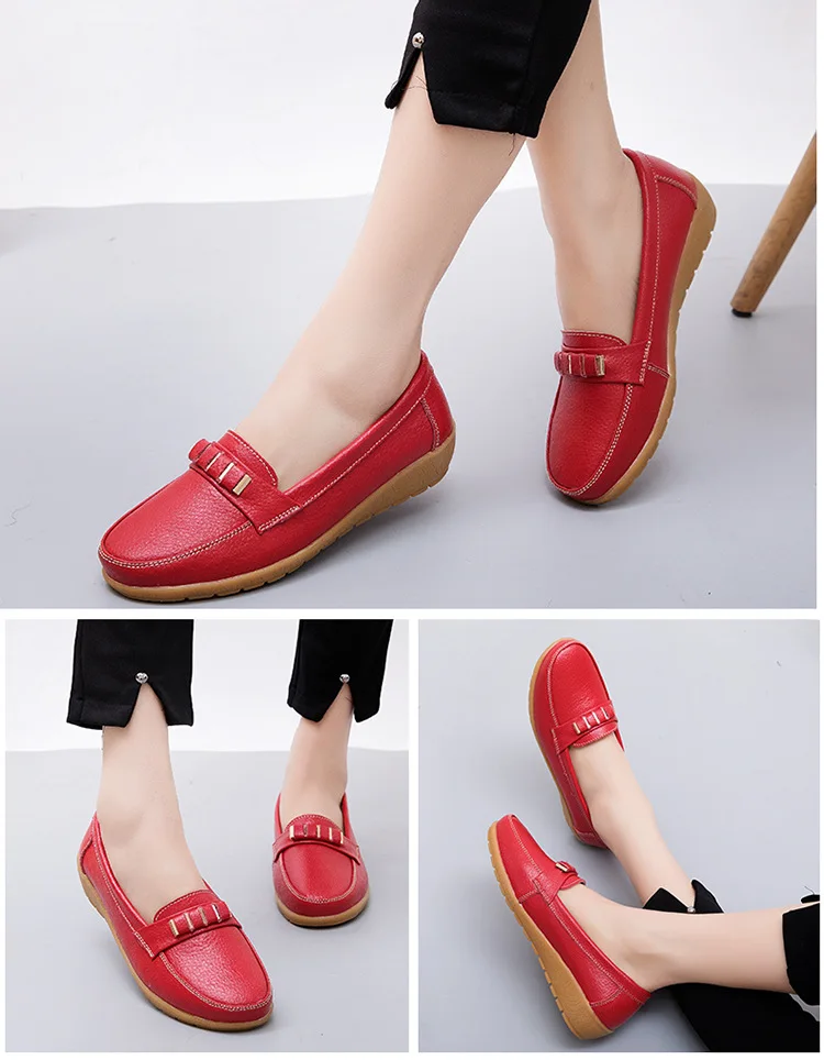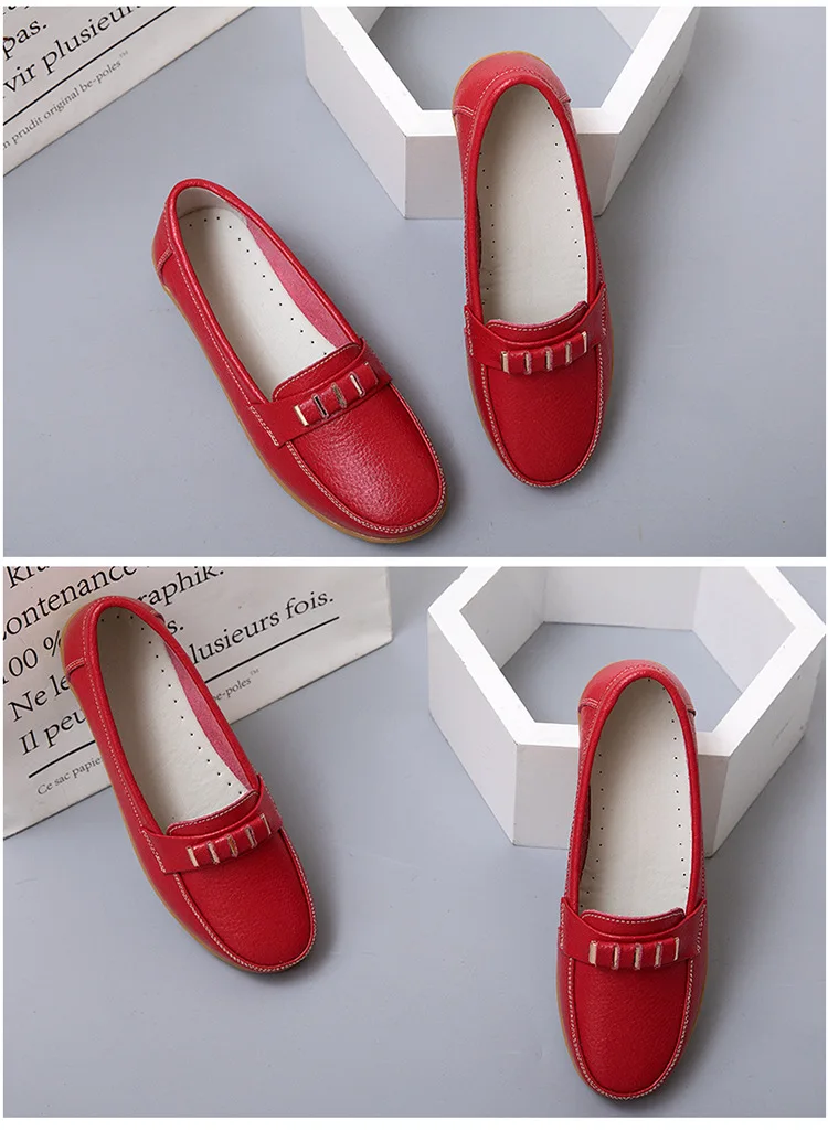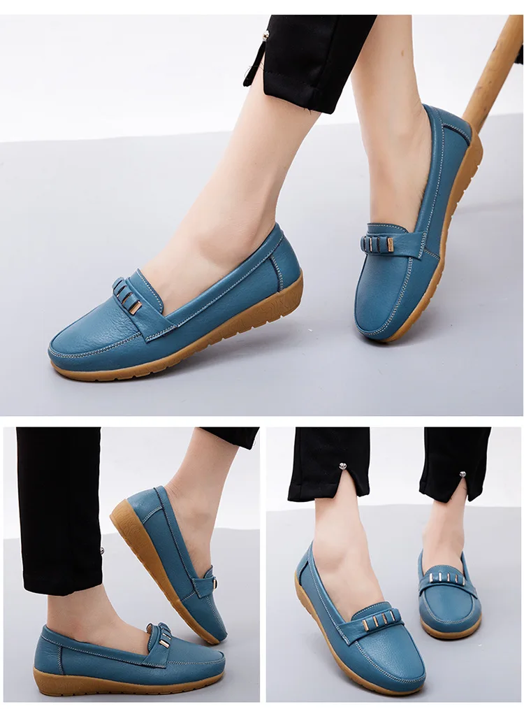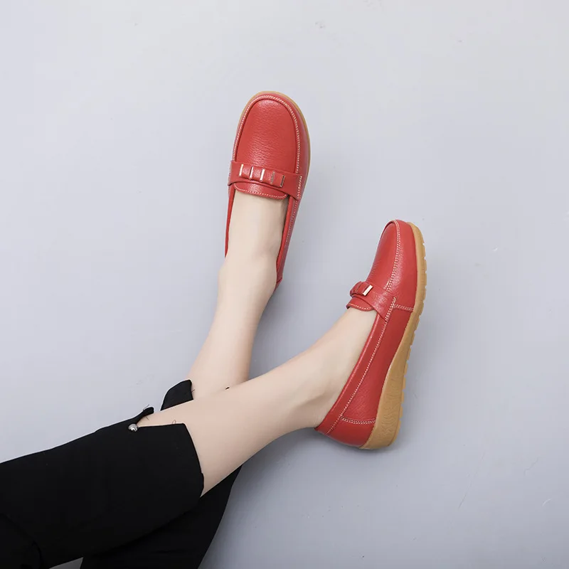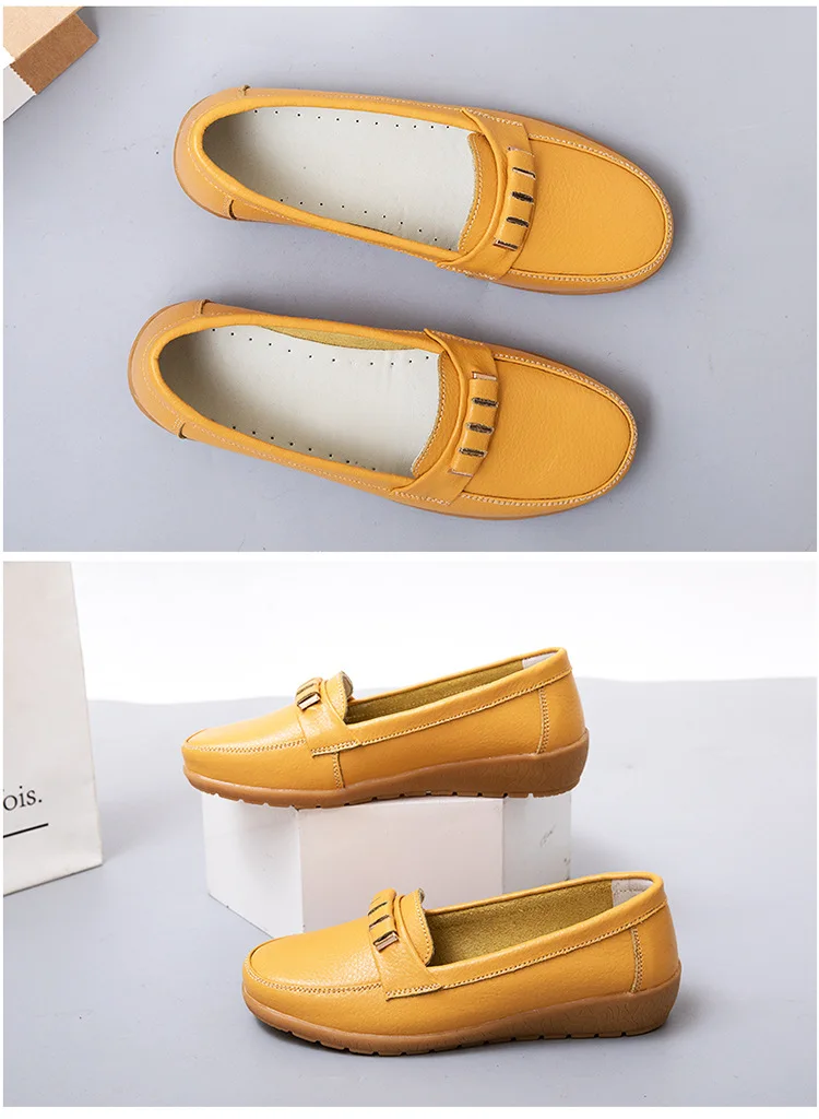Women’s shoes Spring 2021 leather shoes for middle-aged elderly mother shoes for women single beans with soft soles wedge heel