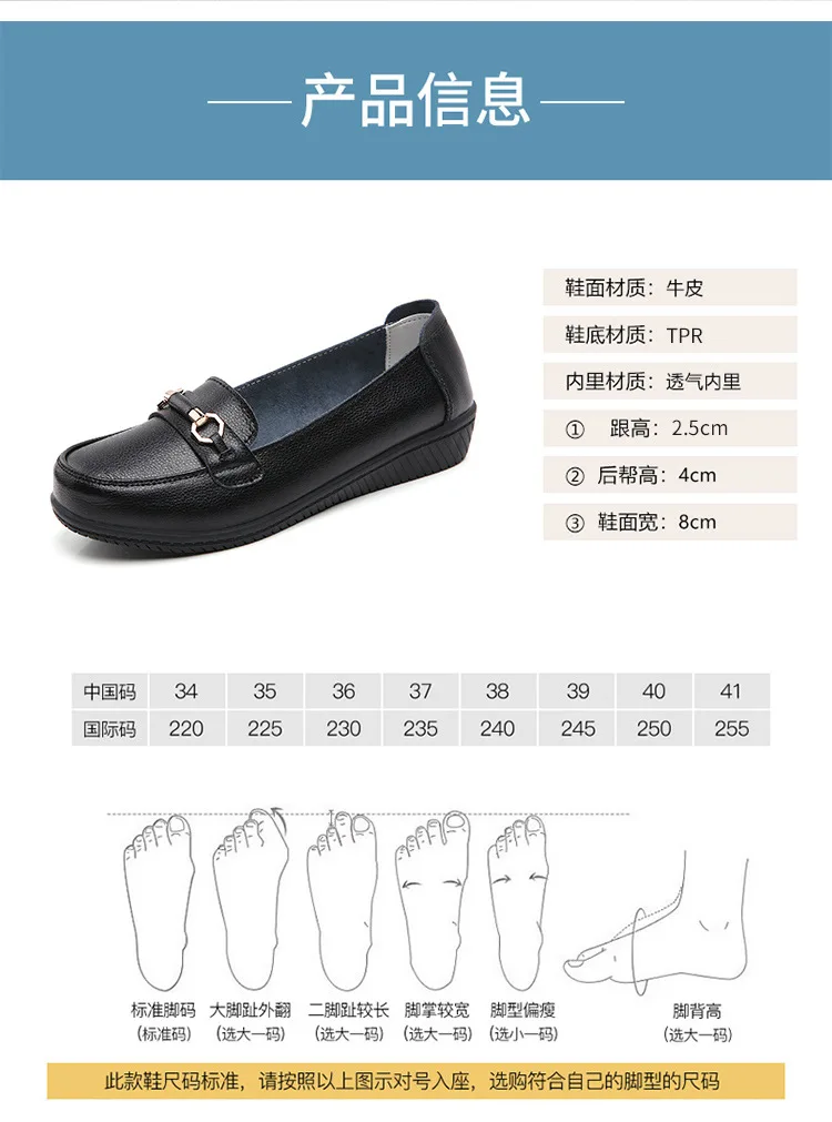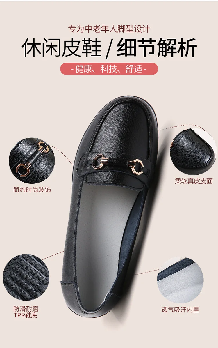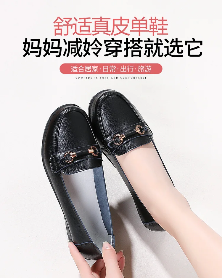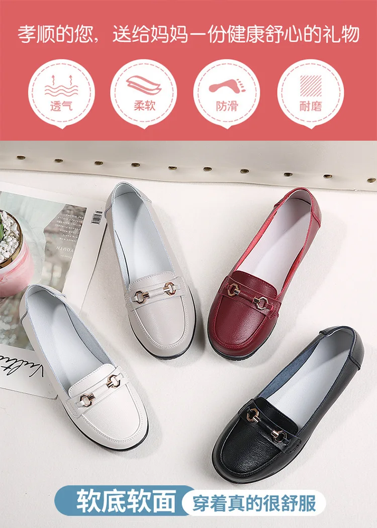 Women’s shoes Spring 2022 casual leather cowhide soft sole comfortable middle-aged and elderly mother shoes flat peas