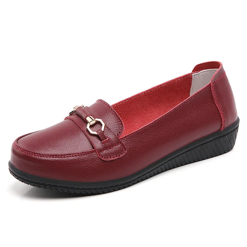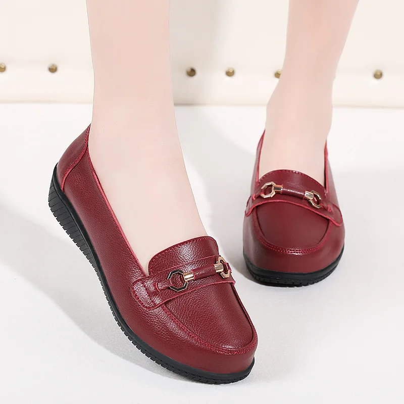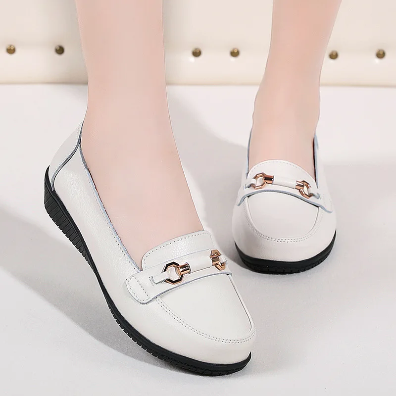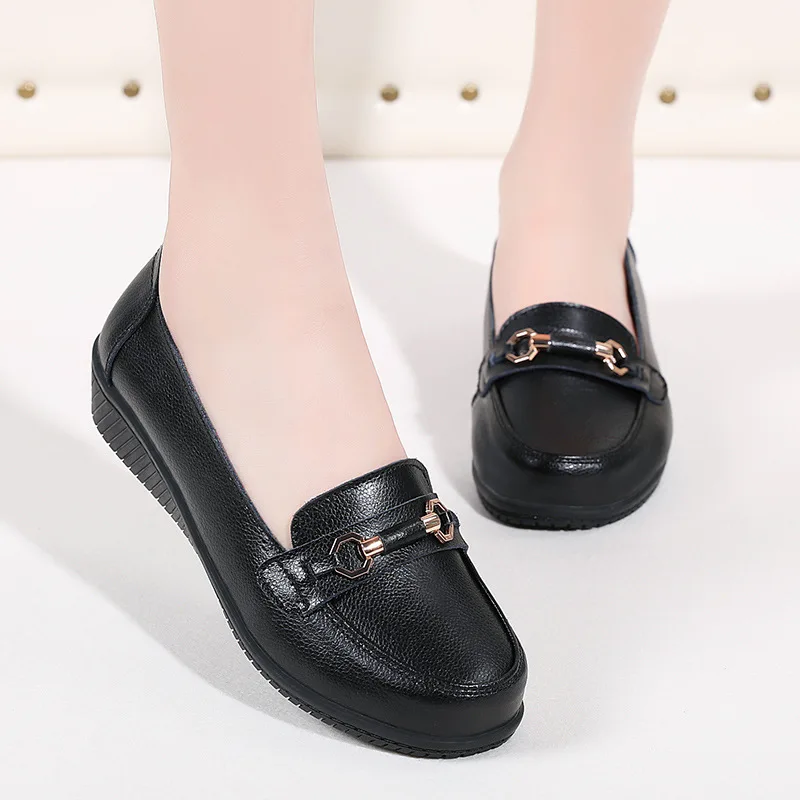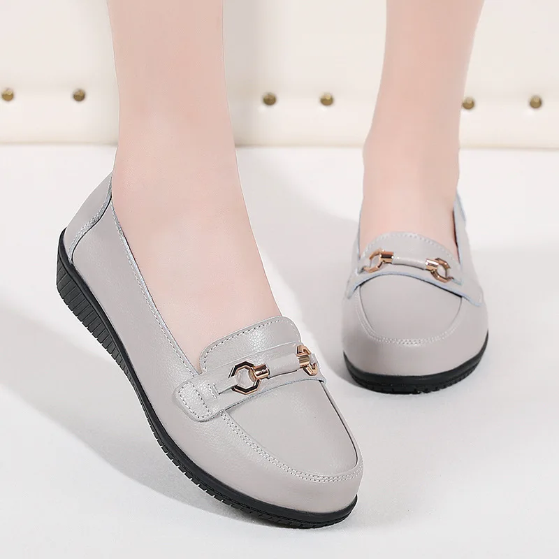 Women’s shoes Spring 2022 casual leather cowhide soft sole comfortable middle-aged and elderly mother shoes flat peas