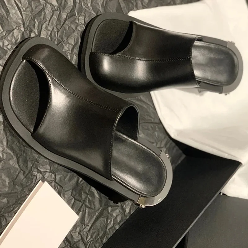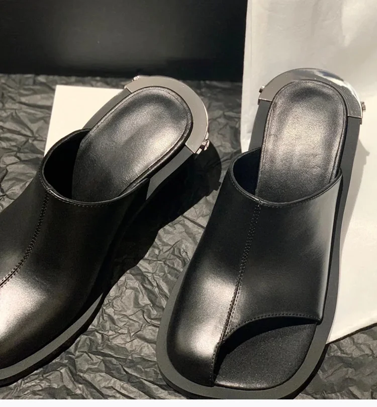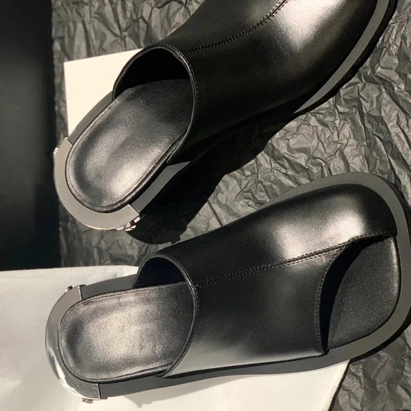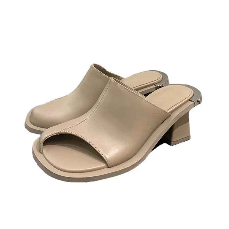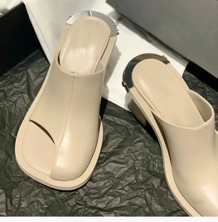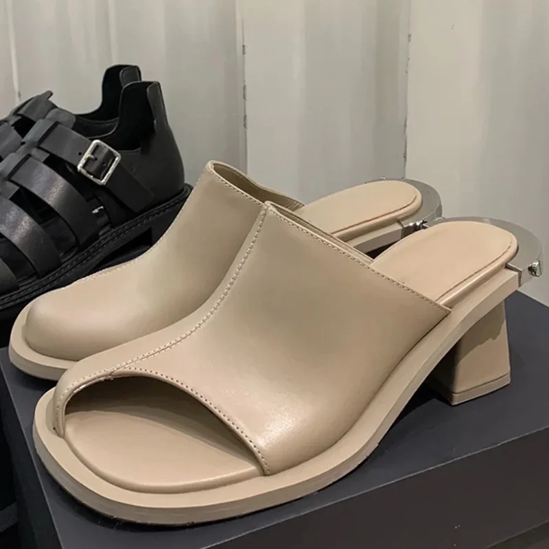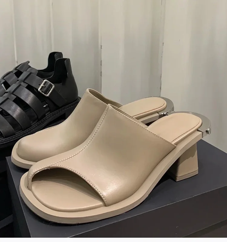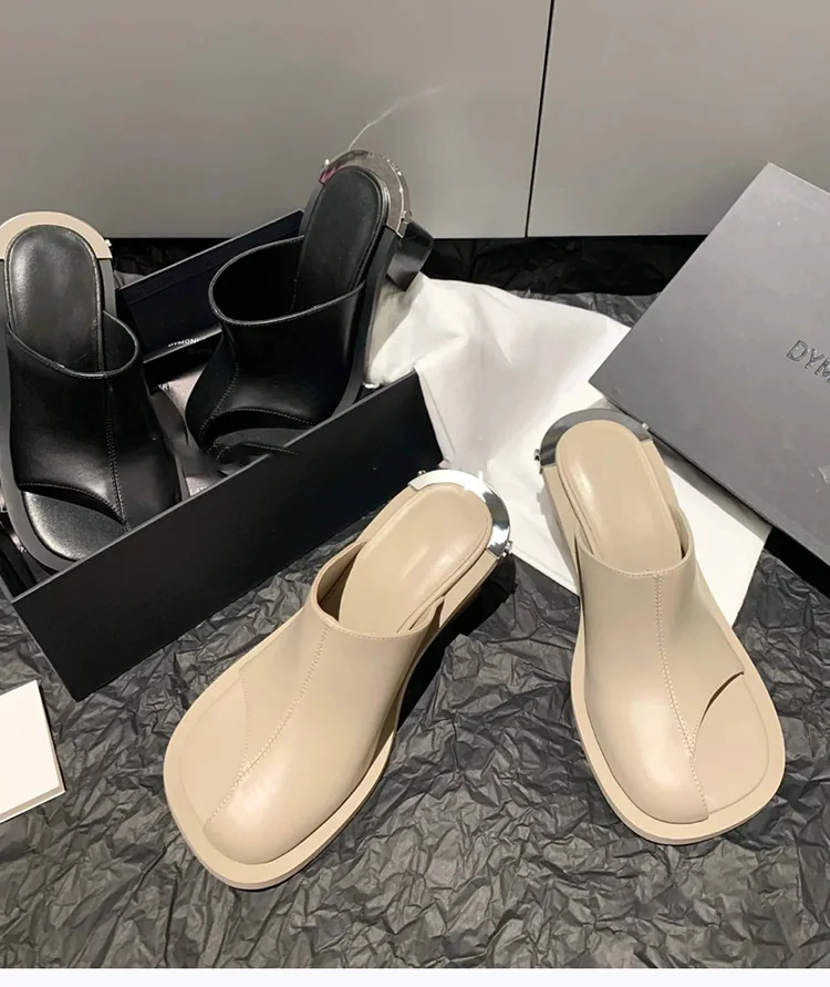 Women’s Slippers Chunky Heeled Baotou Simple Slippers Comfortable Office Mule Shoes Outwear Home Square Head Slippers Zapatos