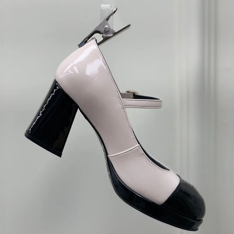 Womens Spring Autumn New Classic Mary Janes Office Shoes Platform High Block Chunky Heel Round Toe Genuine Leather Slip On